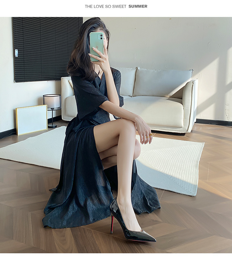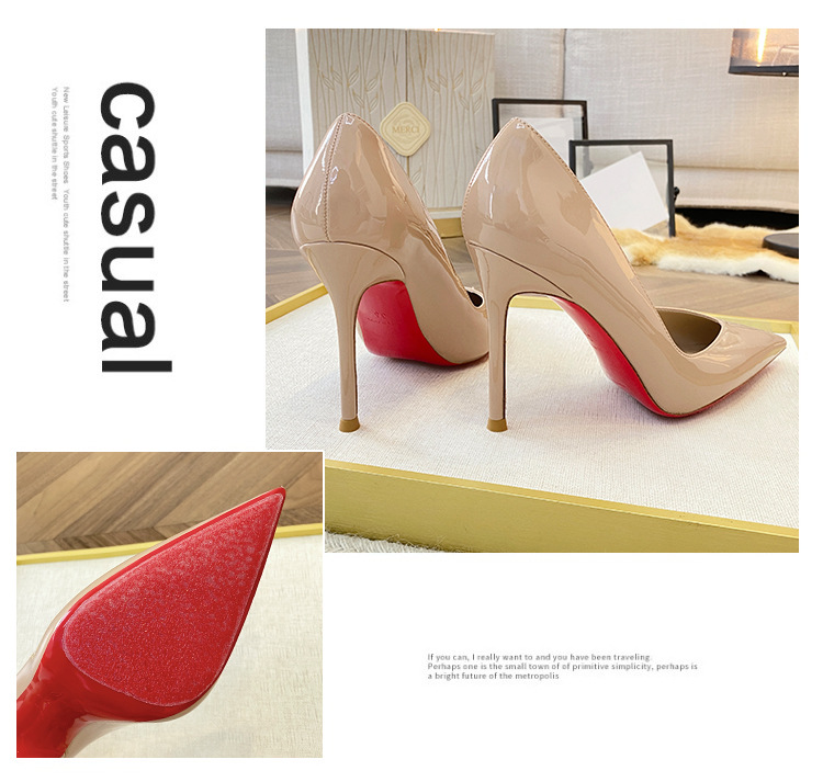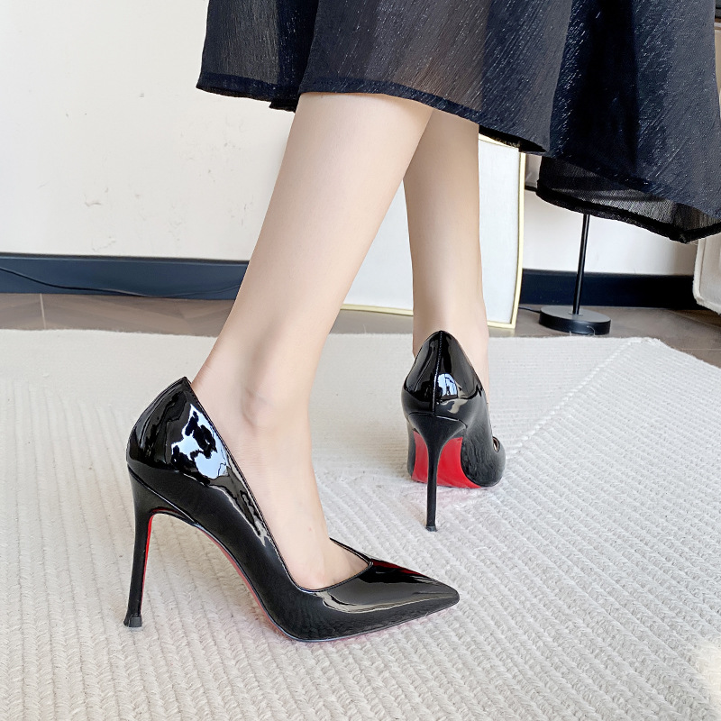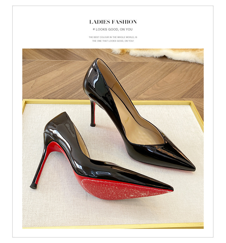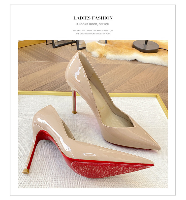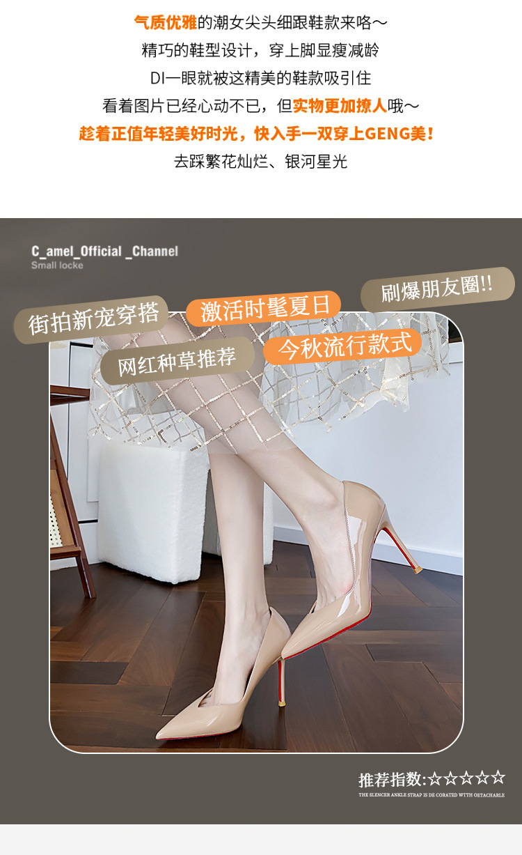 Черные туфли на высоком каблуке женский обнаженный цвет 2025 новый дикий заостренный легкий рот сексуальная сестра каблук V рот красивые одиночные туфли