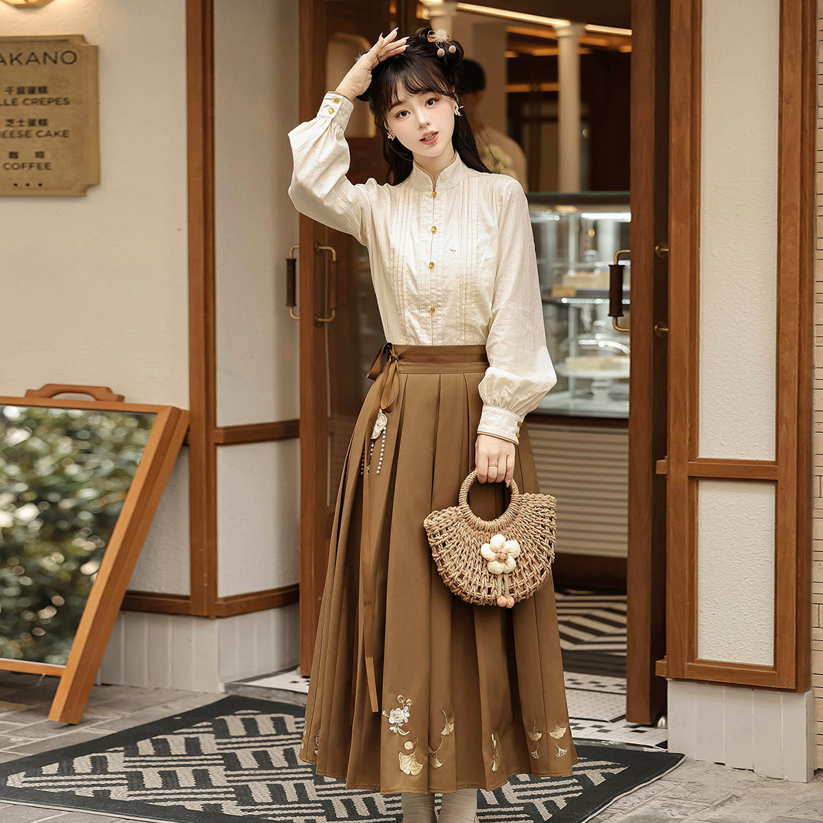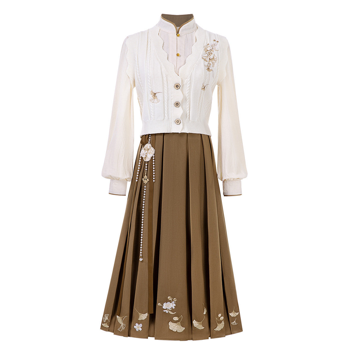 Оригинальные лиственные стихи улучшили женский национальный стиль Hanfu Новый китайский стиль