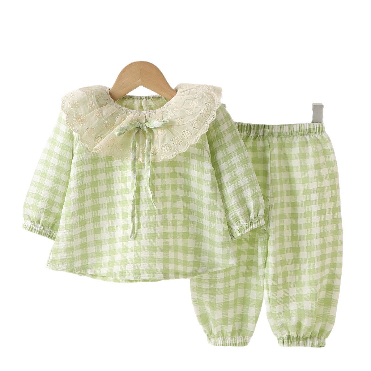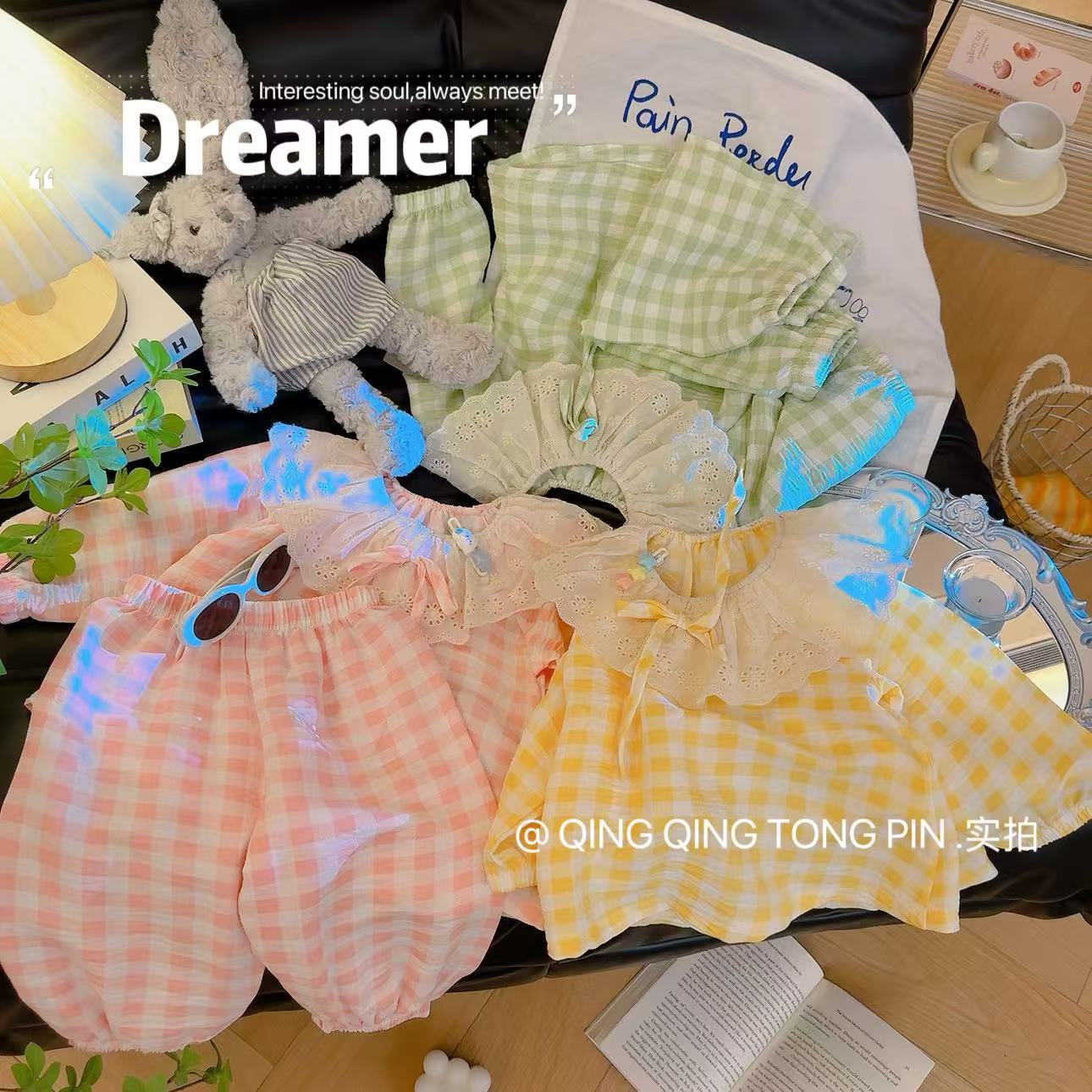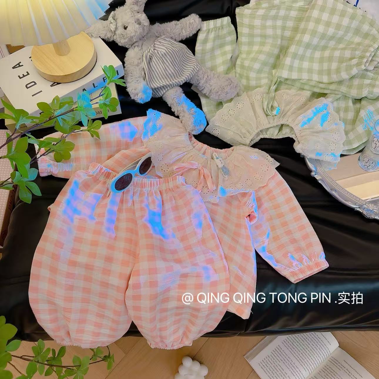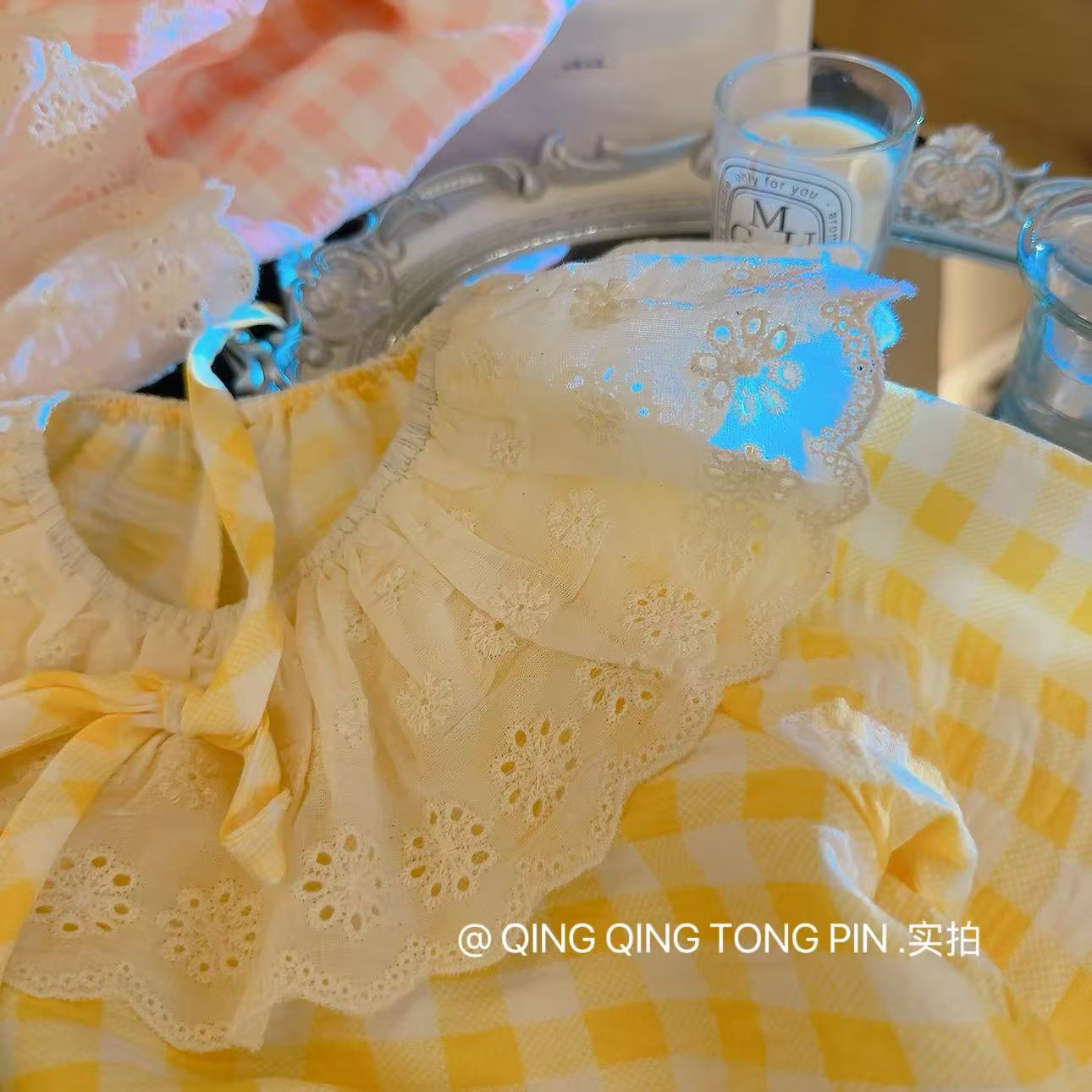Кружевной клетчатый костюм-розовый; Кружевной клетчатый костюм-зеленый; Кружевной клетчатый костюм-желтый