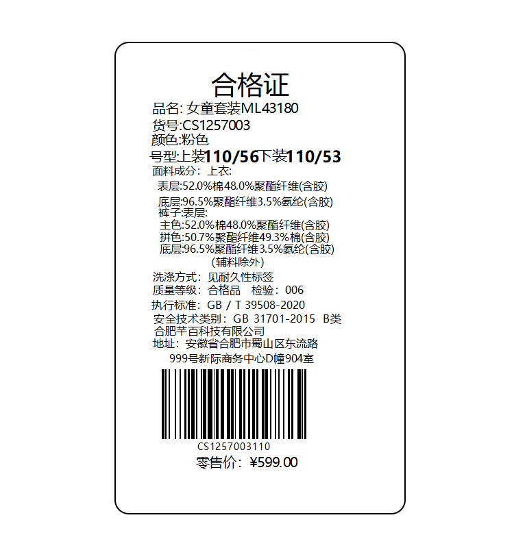 Содержание основного компонента ткани: