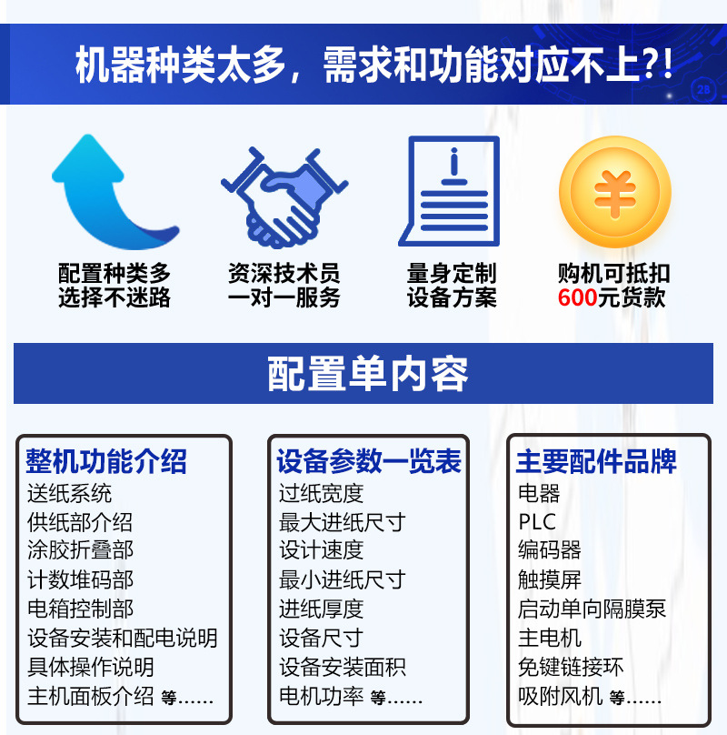 Форма конфигурации полуавтоматической машины для склеивания картона; Форма конфигурации машины для склеивания картона из двух частей; Форма конфигурации высокоскоростной машины для склеивания картона; Полностью автоматическая форма конфигурации провода соединения липкой коробки.