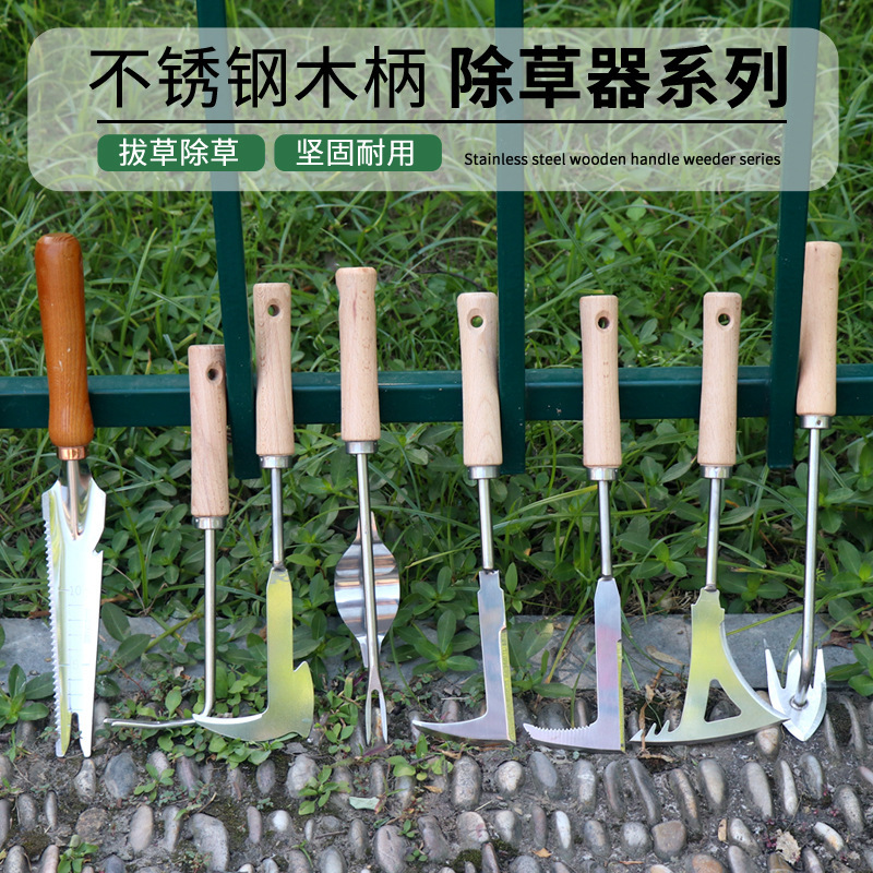 Съемник сорняков из нержавеющей стали; Крючок для травы из нержавеющей стали; V-образный съемник сорняков из нержавеющей стали.; Газонокосилка из нержавеющей стали типа А; Модель B для съедания сорняков из нержавеющей стали; Тип топора для травоеда из нержавеющей стали; нож для сбора урожая из нержавеющей стали; Подъемник для корней с деревянной ручкой из нержавеющей стали; Пластиковая ручка типа A, едок сорняков