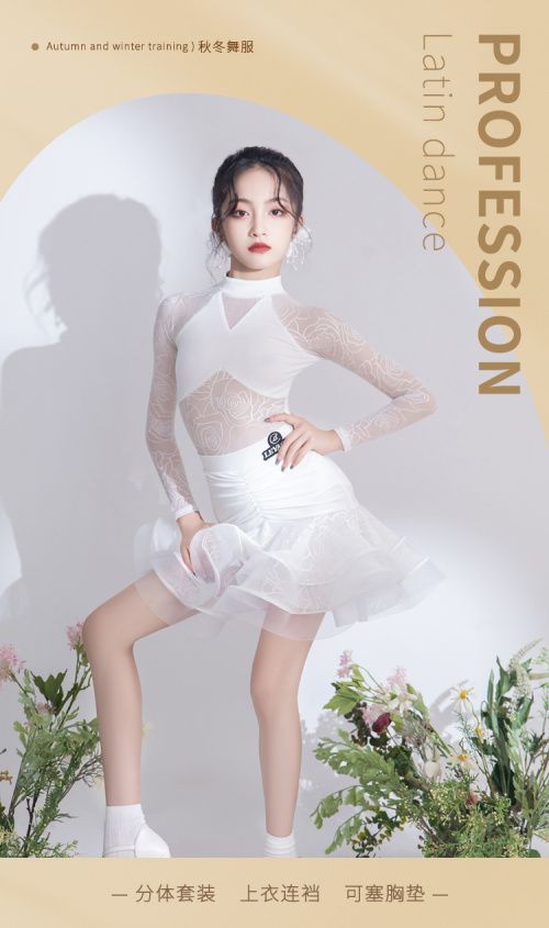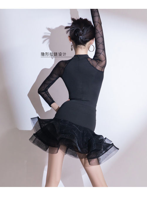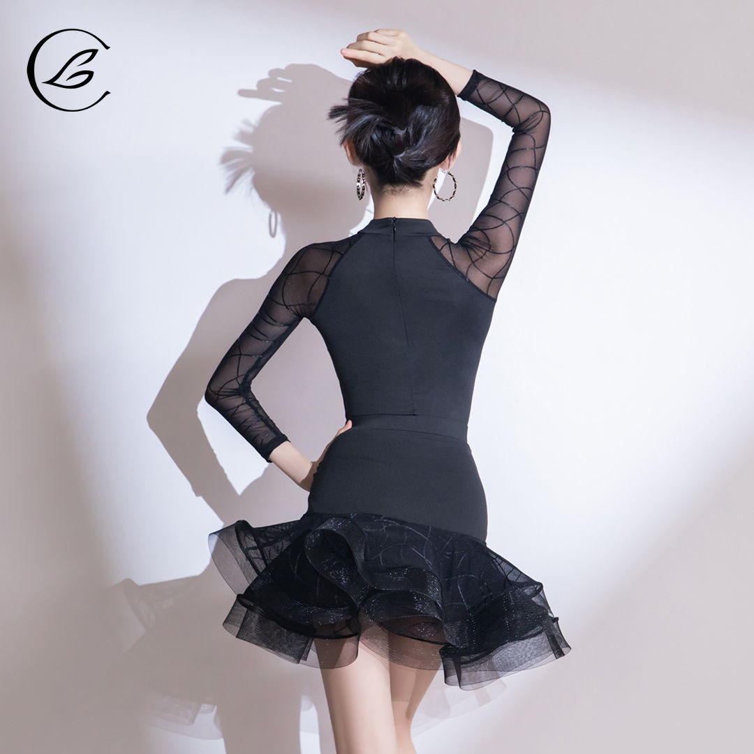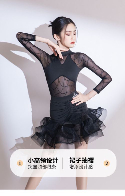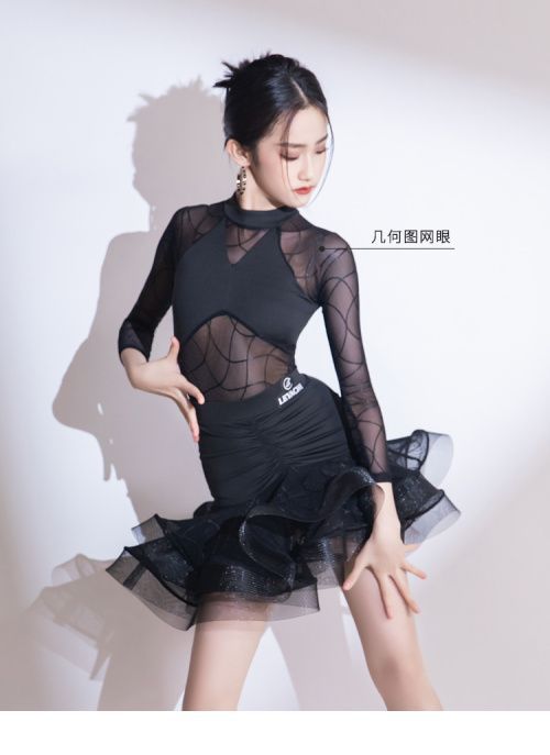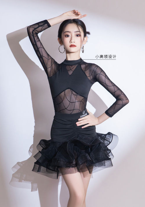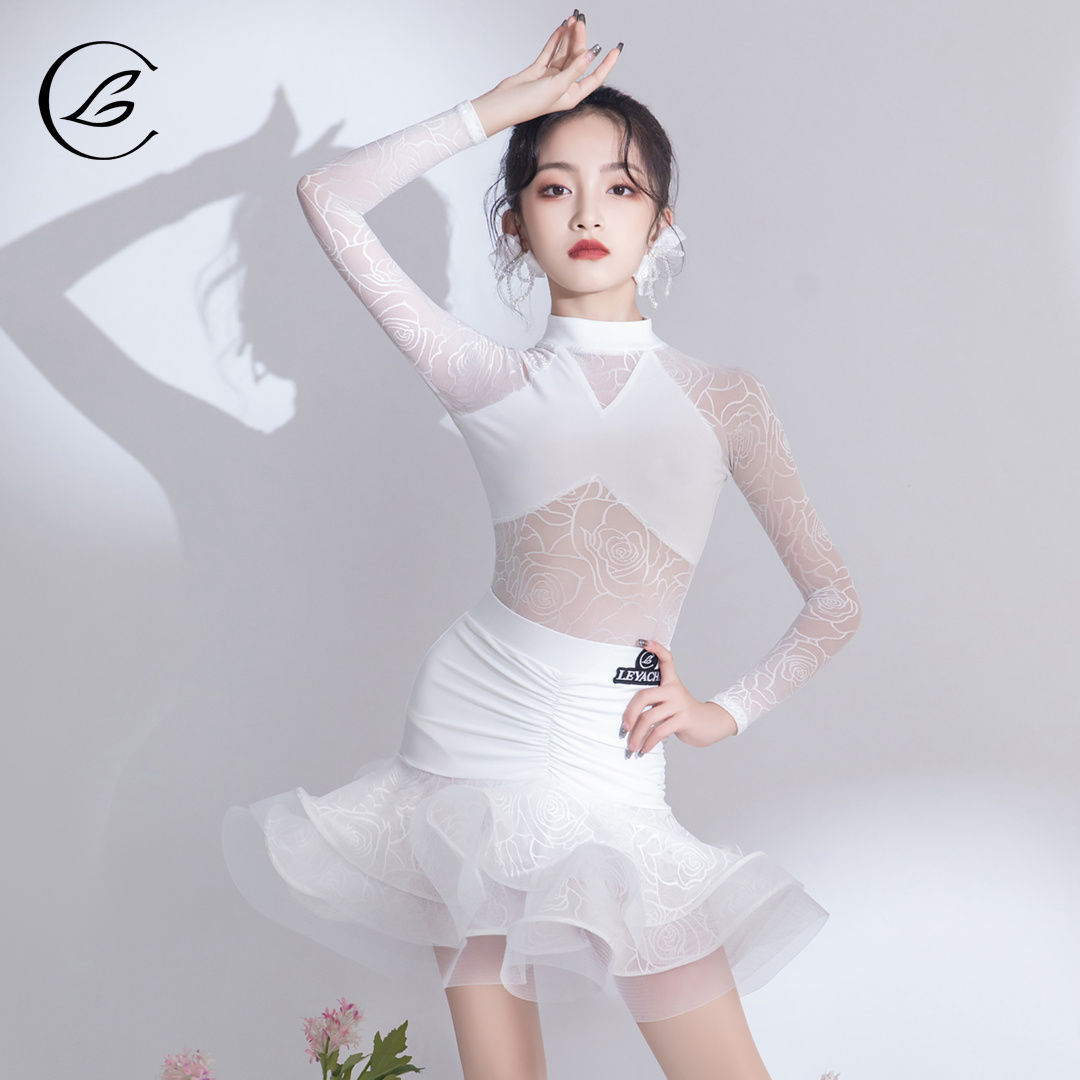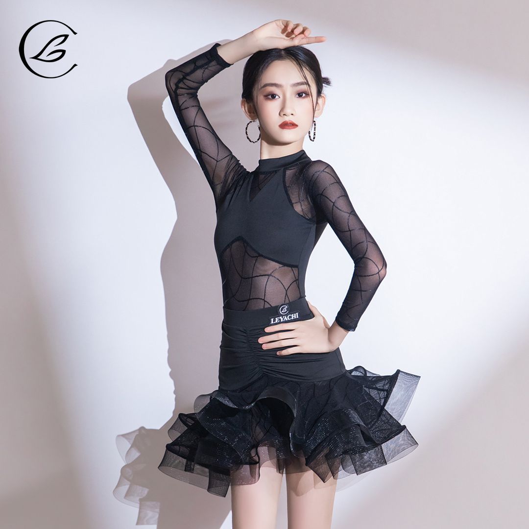 Новый костюм для латиноамериканских танцев Leyachi 2025 (осень/зима) для девочек, с сетчатыми вставками, для тренировок