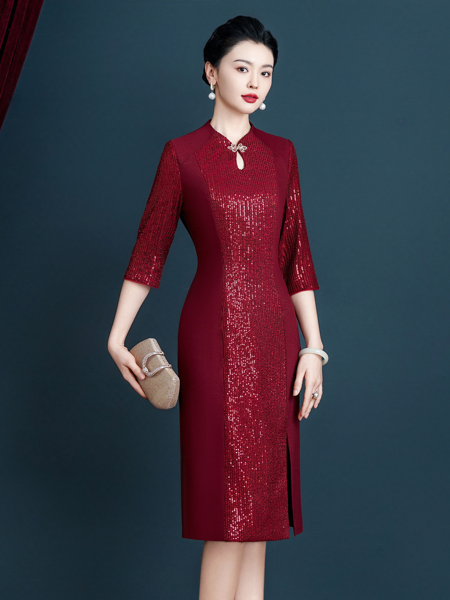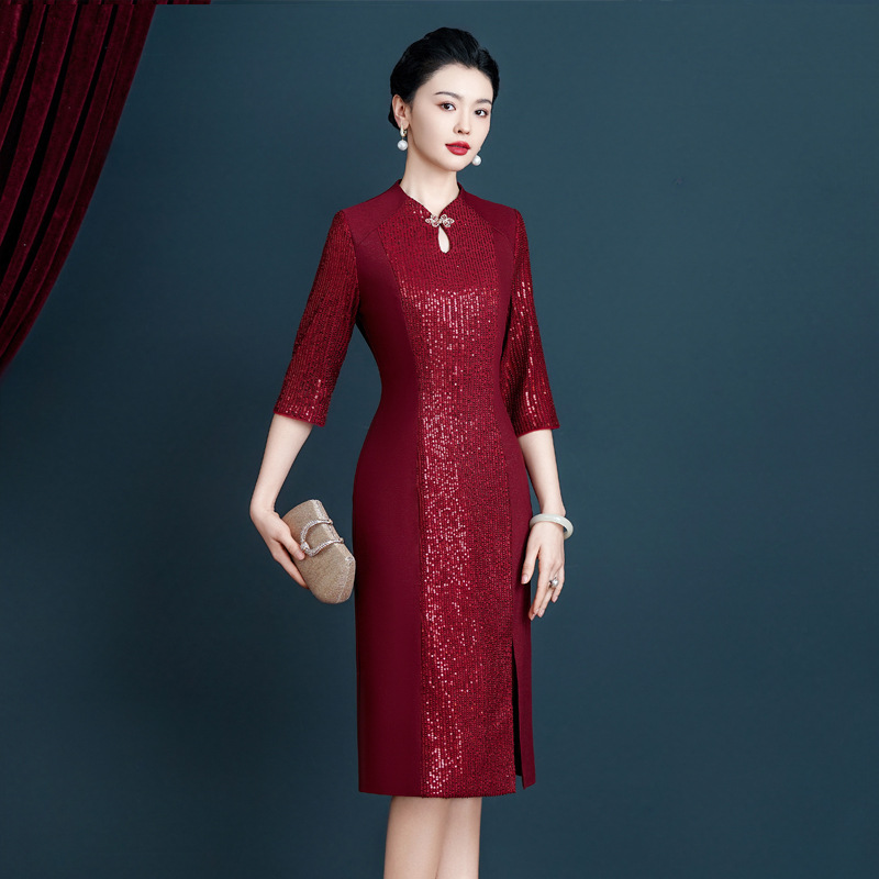 Весеннее платье новой мамы 2025 элегантное и достойное платье с блестками