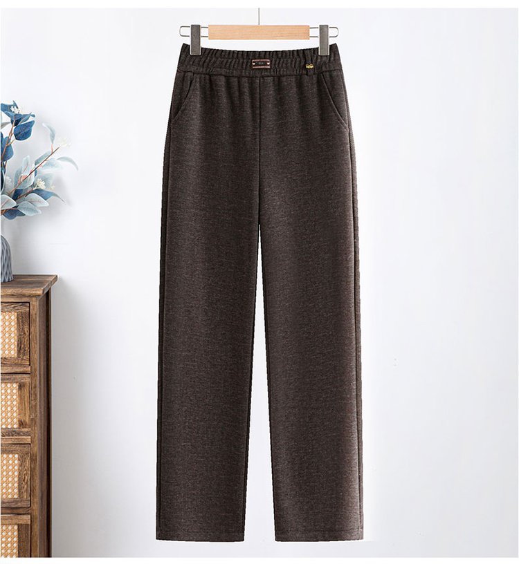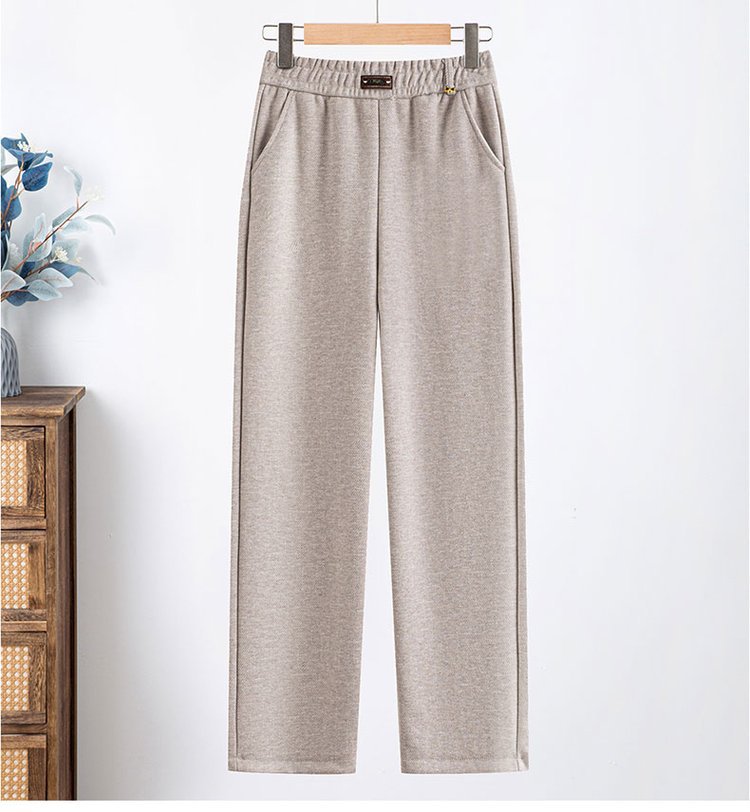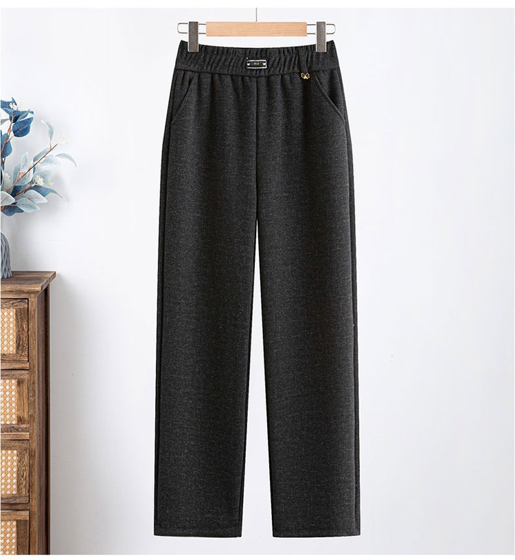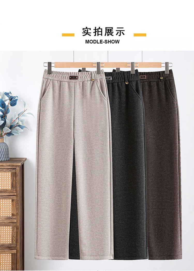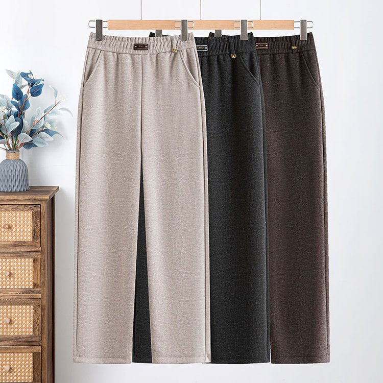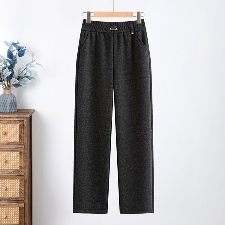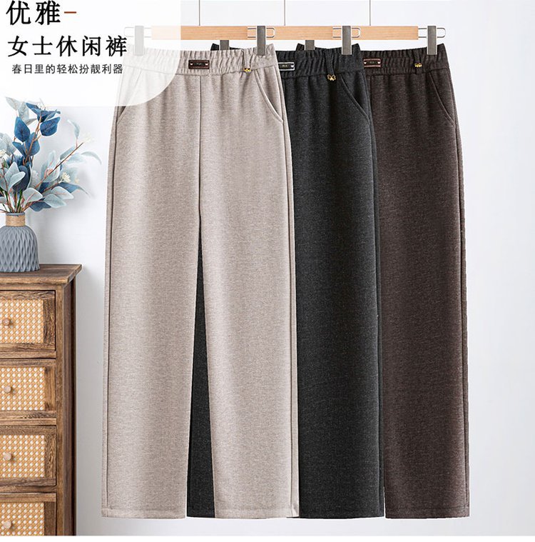 Средние и пожилые мамы весной и осенью новые шерстяные прямые брюки женские 2025 весна эластическая высокая талия свободные повседневные длинные брюки