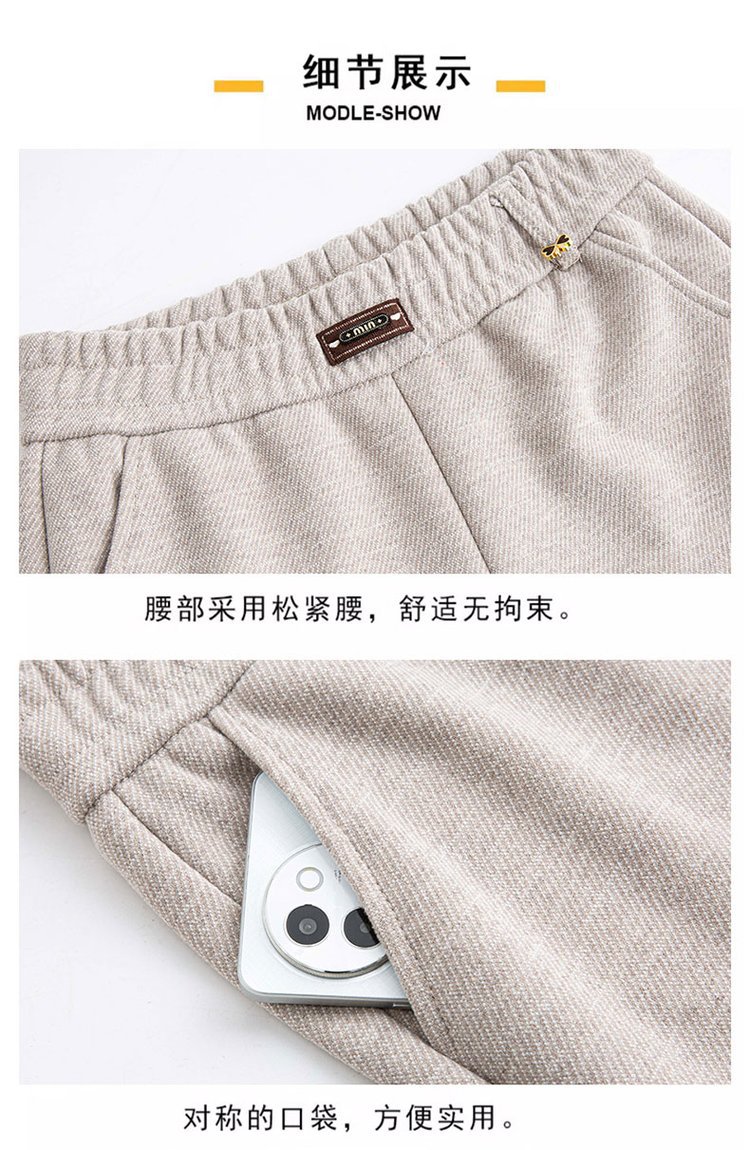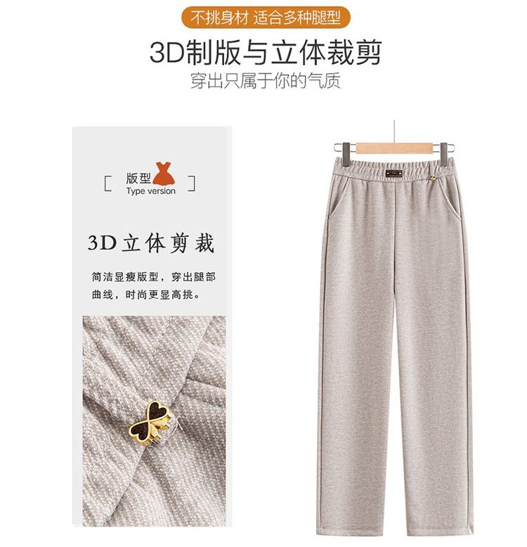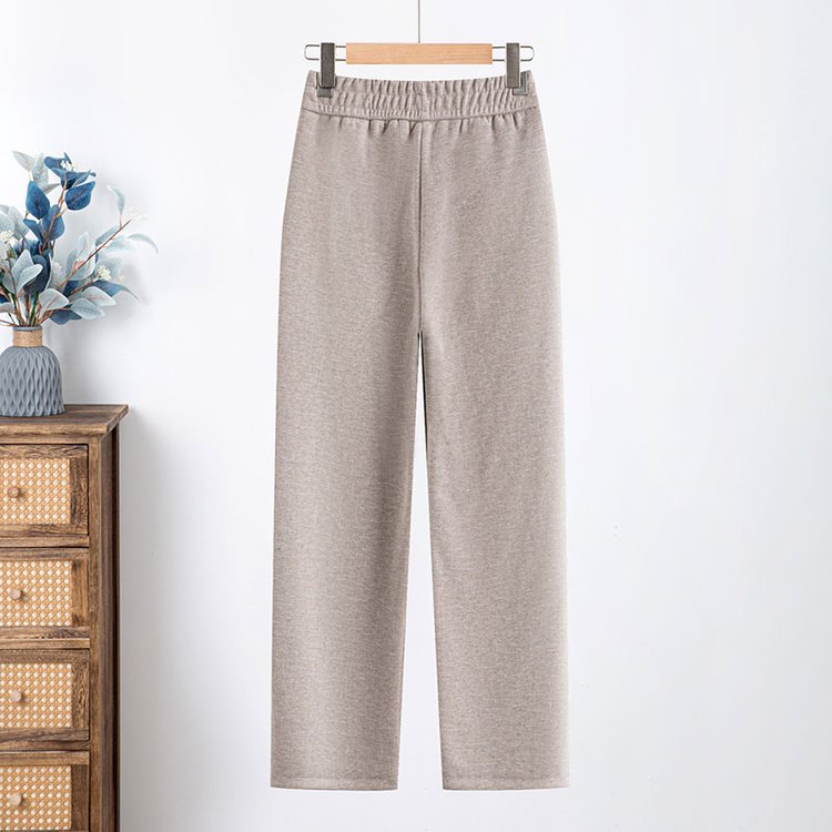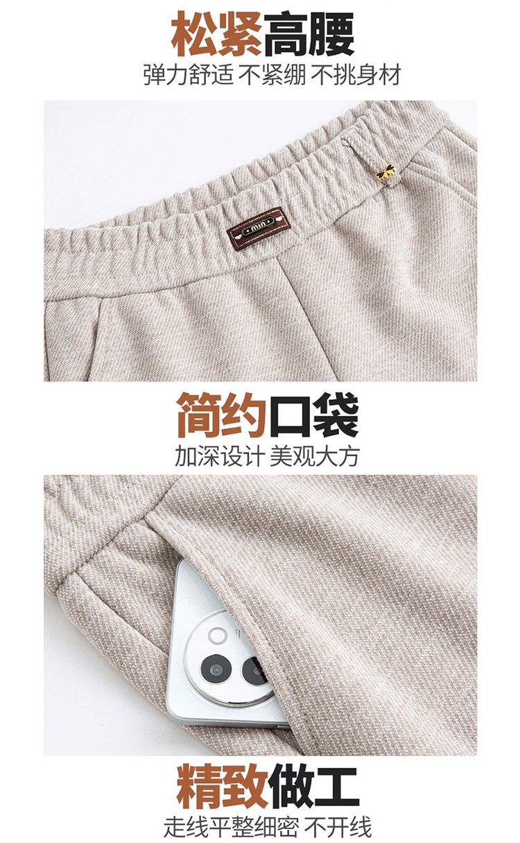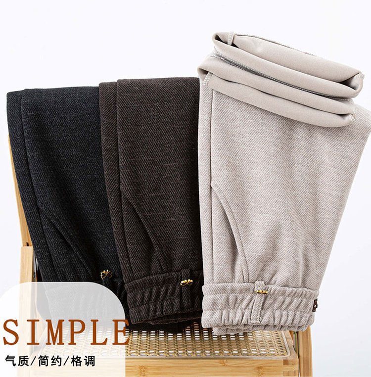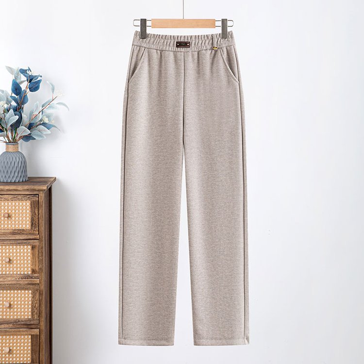 Средние и пожилые мамы весной и осенью новые шерстяные прямые брюки женские 2025 весна эластическая высокая талия свободные повседневные длинные брюки