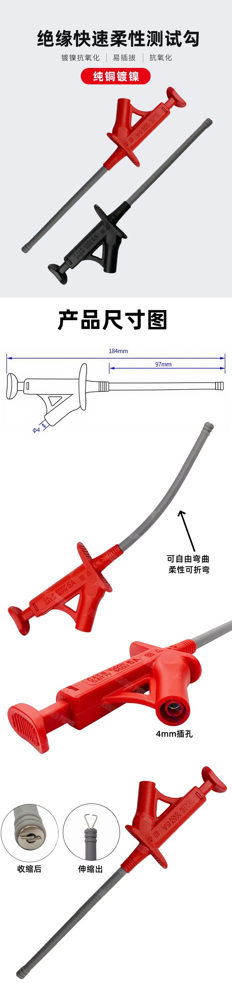 Телескопический гибкий тестовый крючок ручка зонд крюк можно вставить 4 мм банановый штекер PA пластиковый корпус можно согнуть