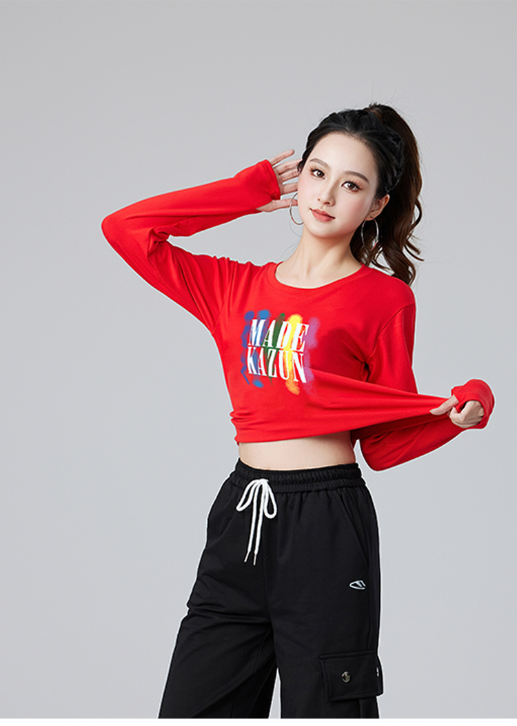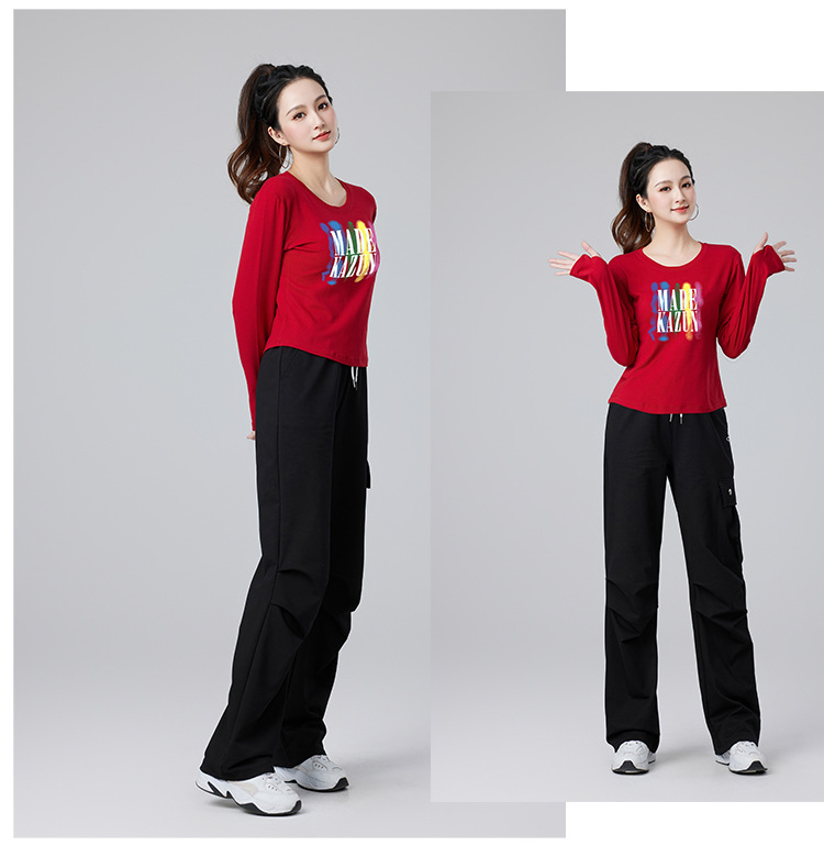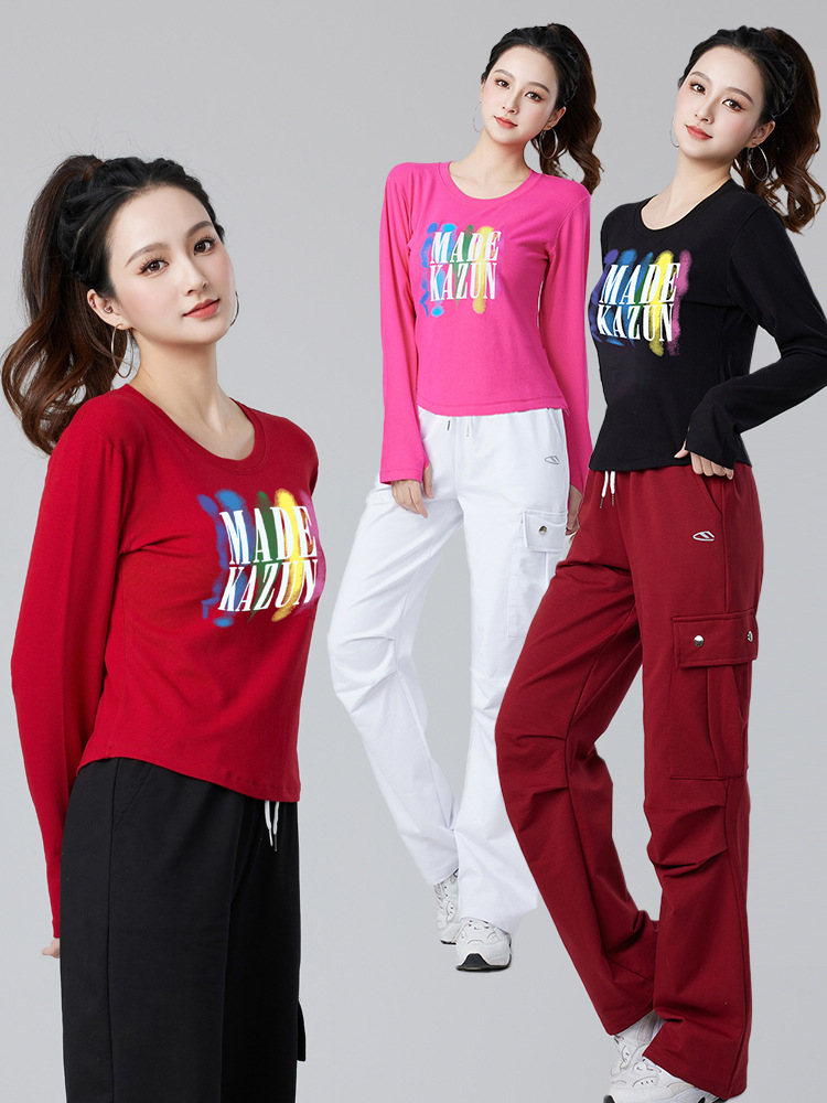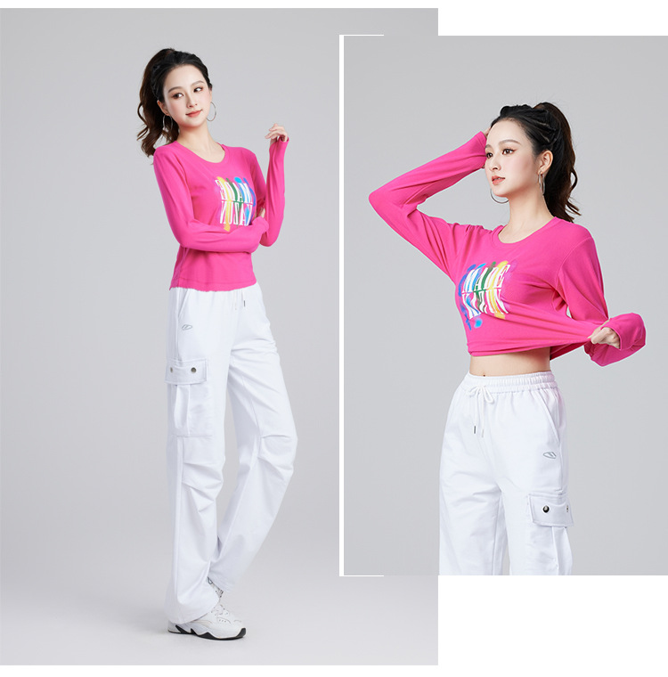 Новый костюм для танца в стиле американский ретро хлопчатобумажный призрачный танец топ с длинными рукавами брюки для фитнеса танцующая девушка