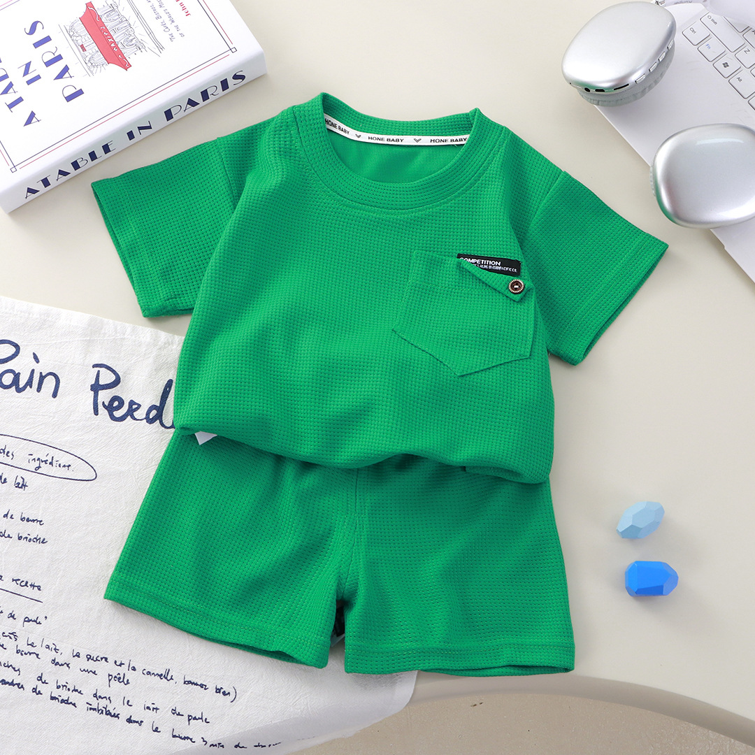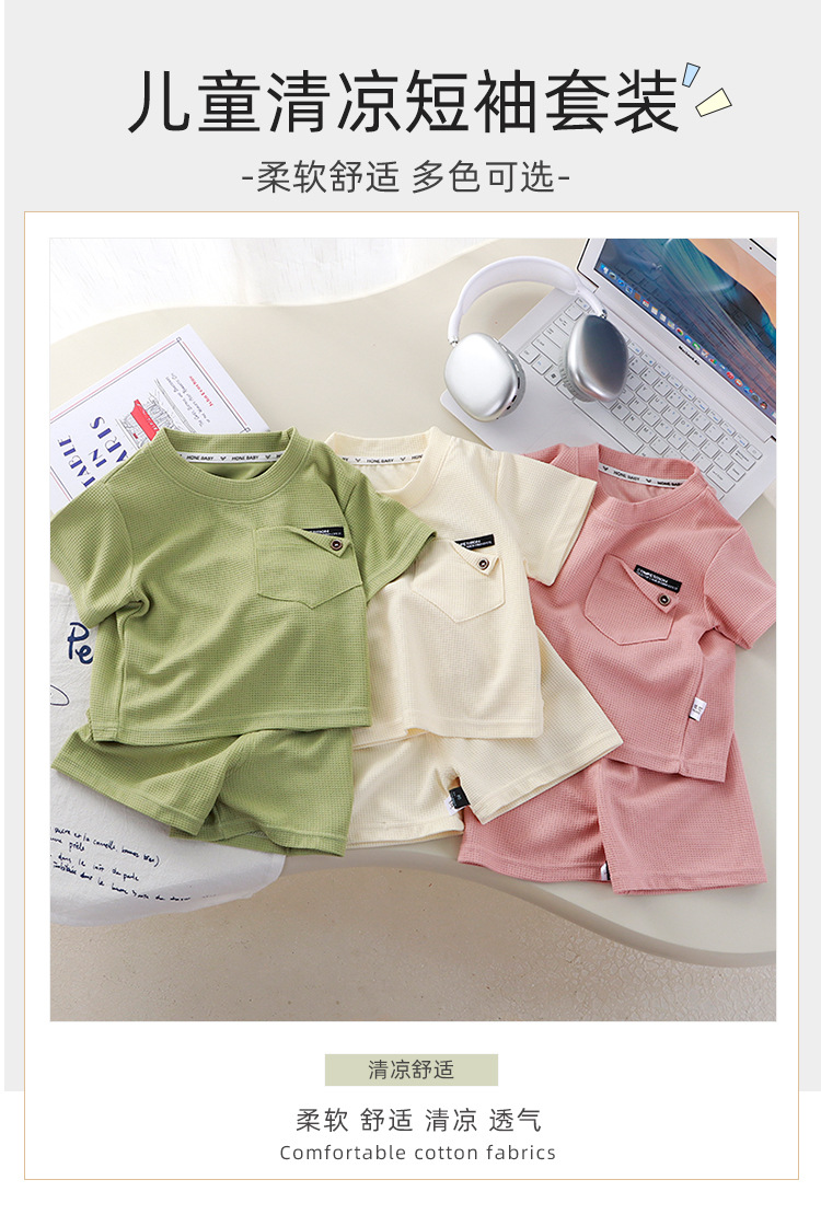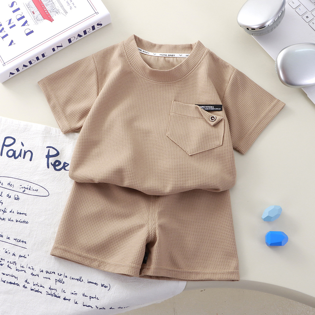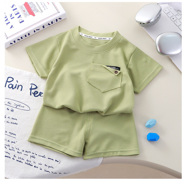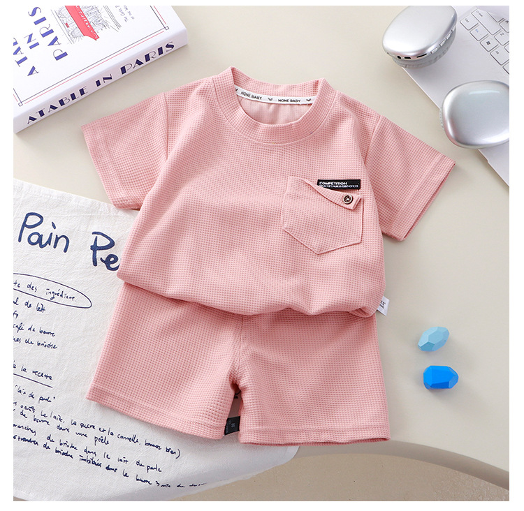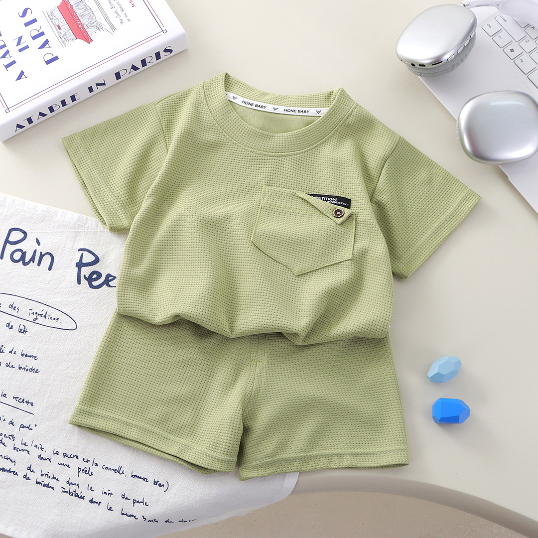 Новый детский вафли с короткими рукавами, летняя мужская и женская повседневная спортивная одежда свежий тонкий набор из двух частей