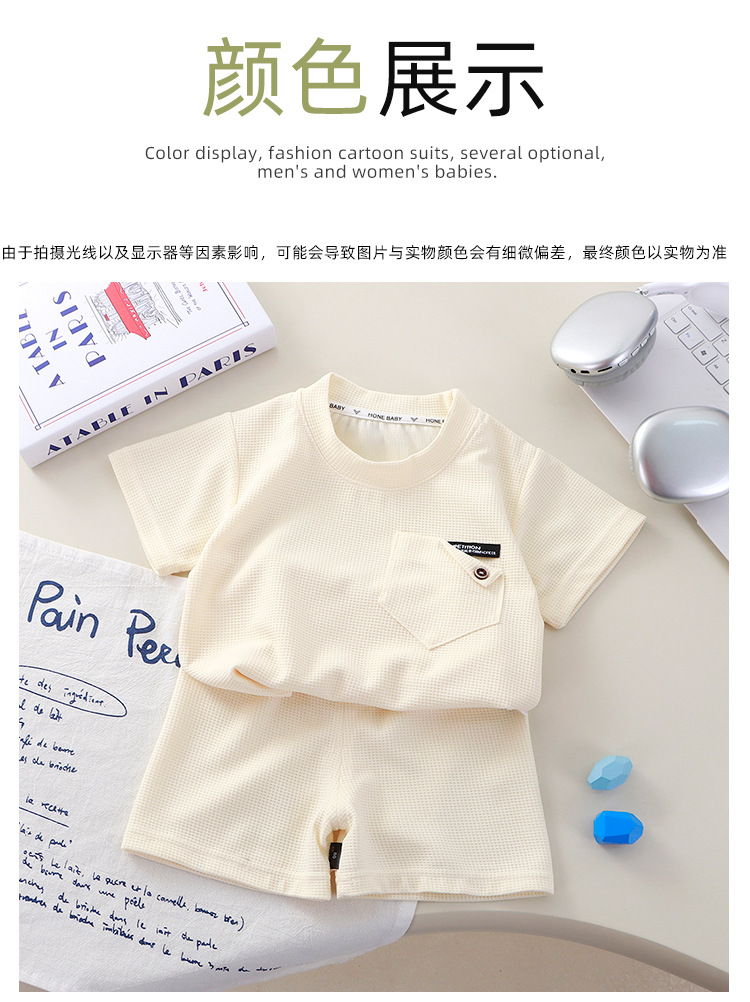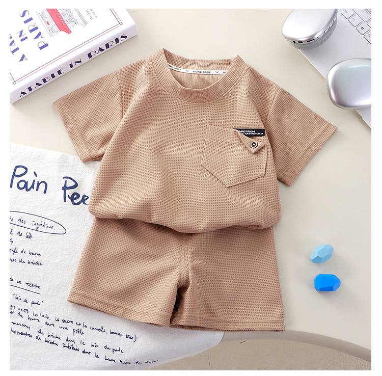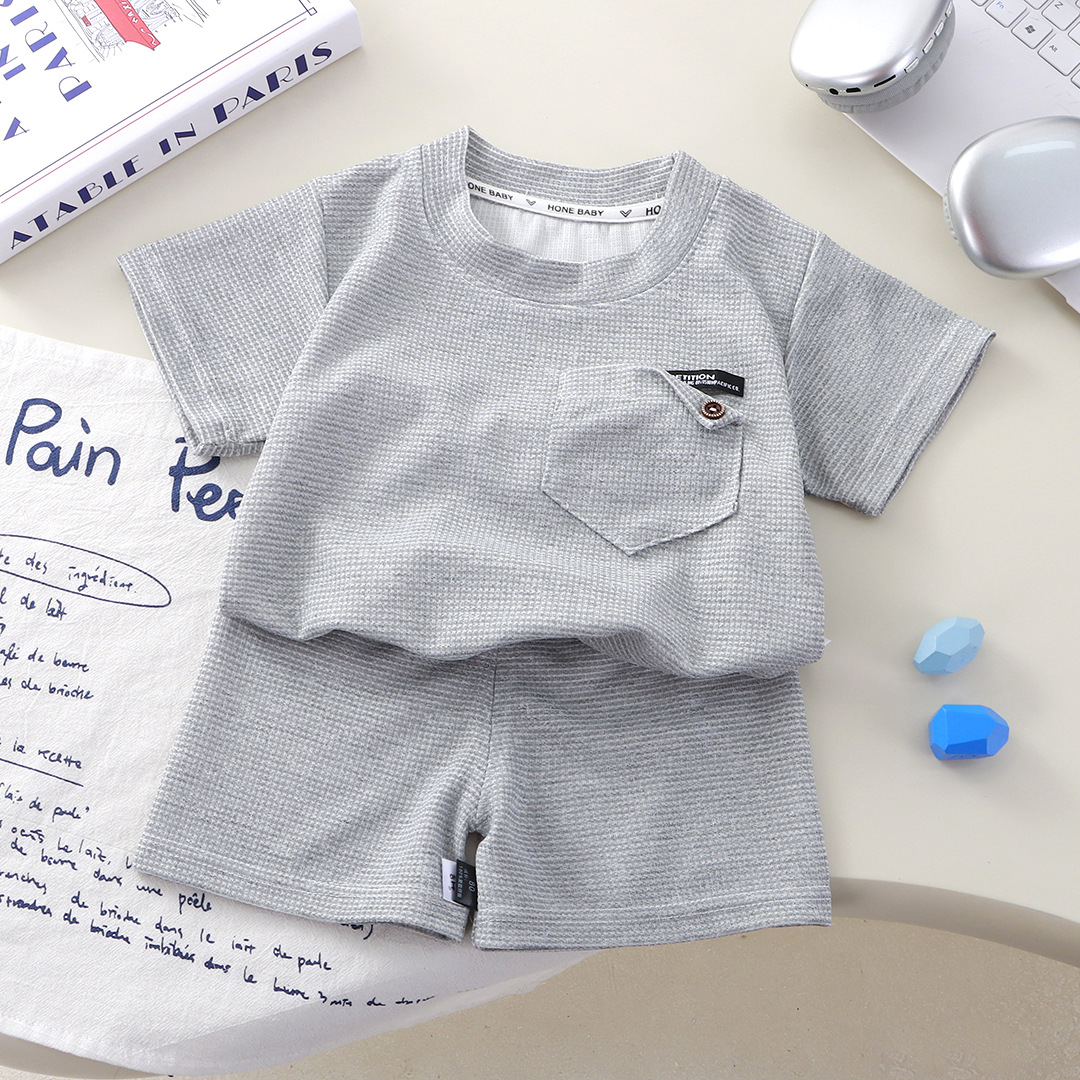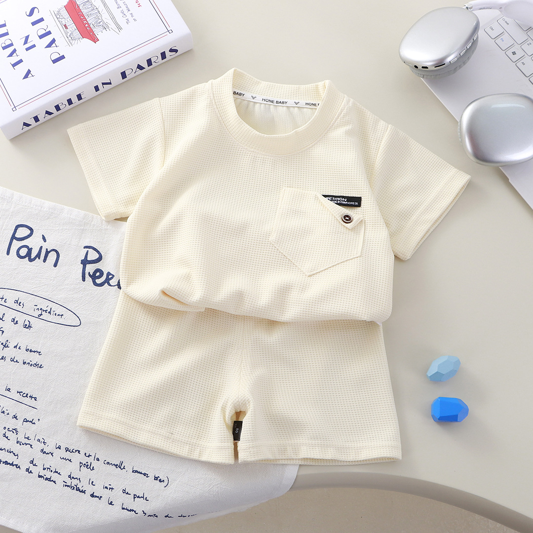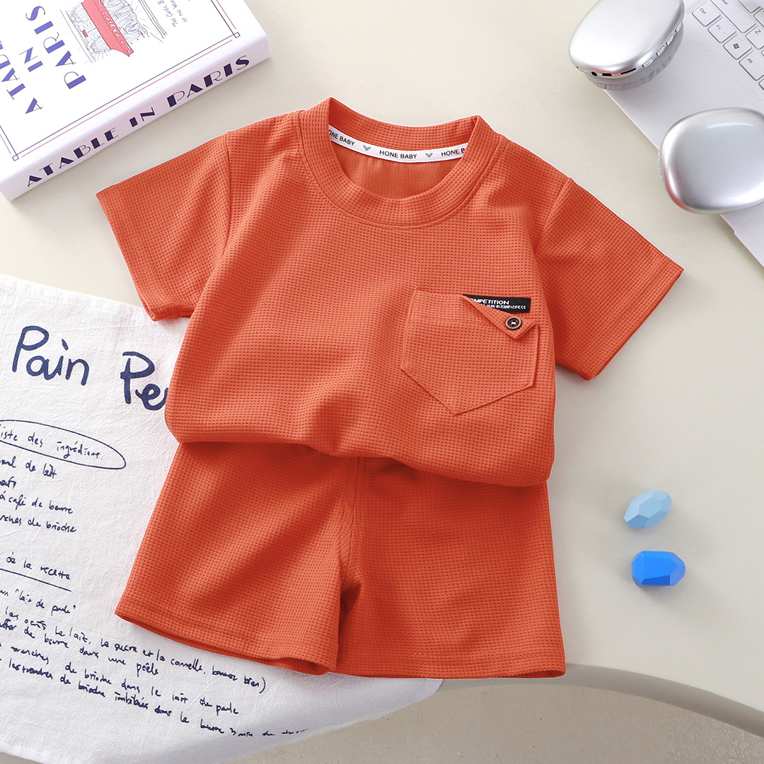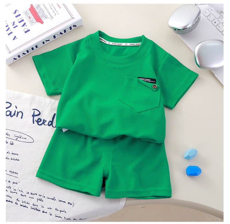Новый детский вафли с короткими рукавами, летняя мужская и женская повседневная спортивная одежда свежий тонкий набор из двух частей