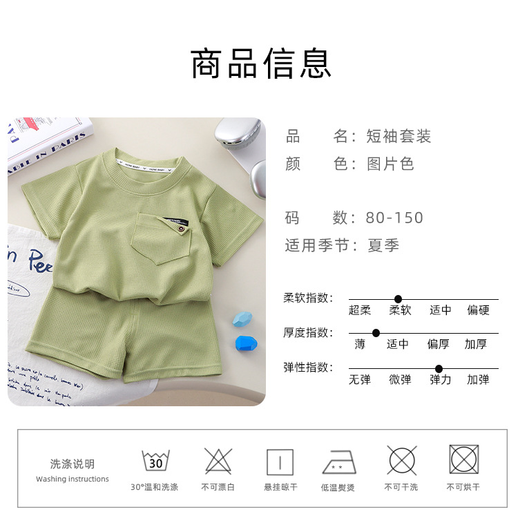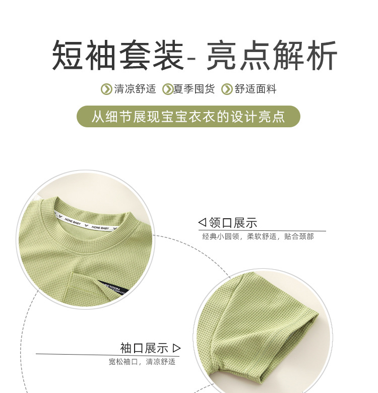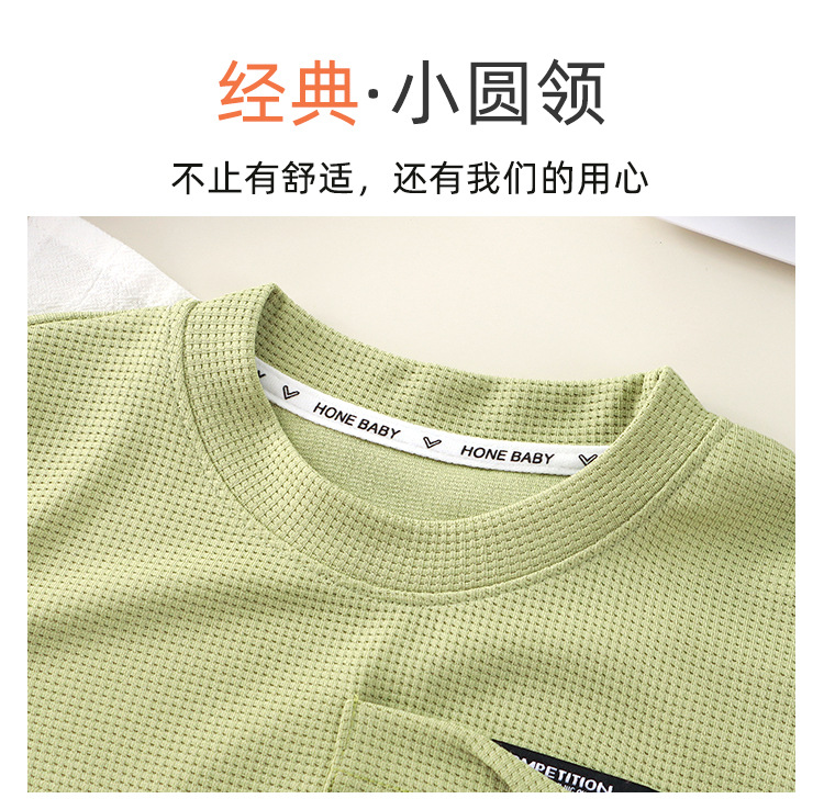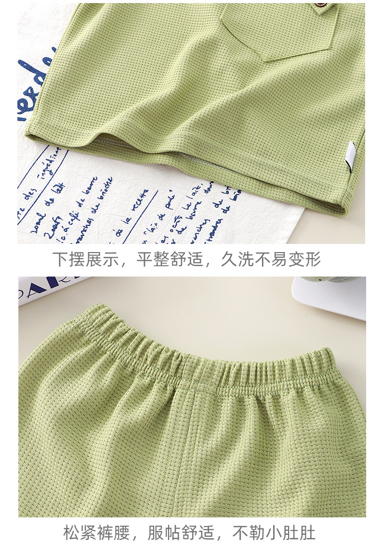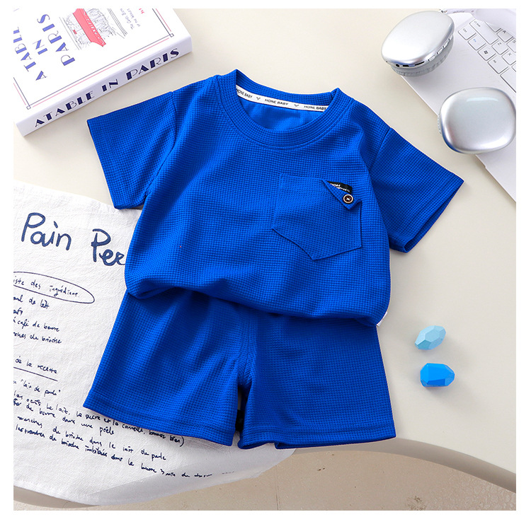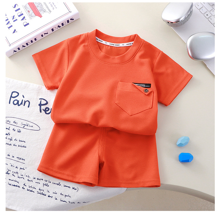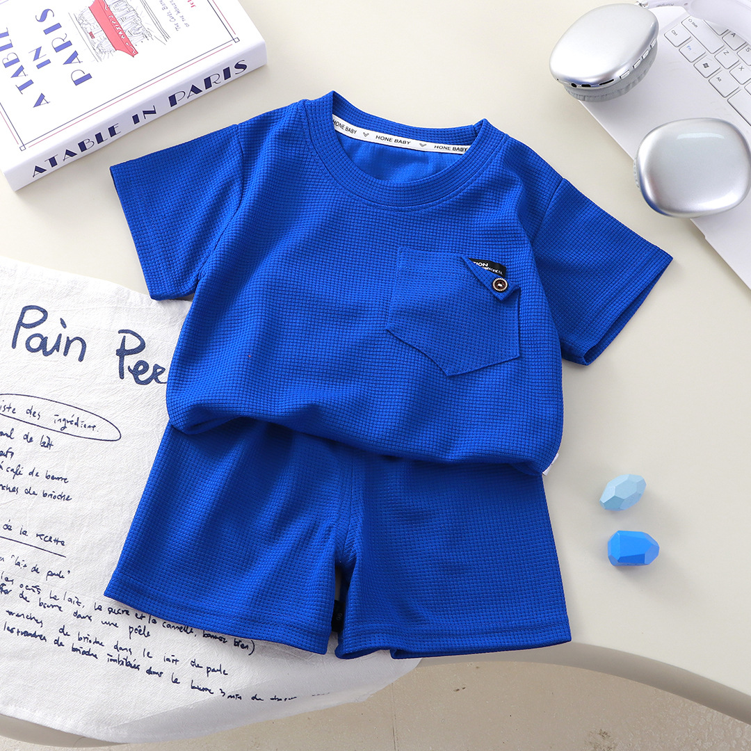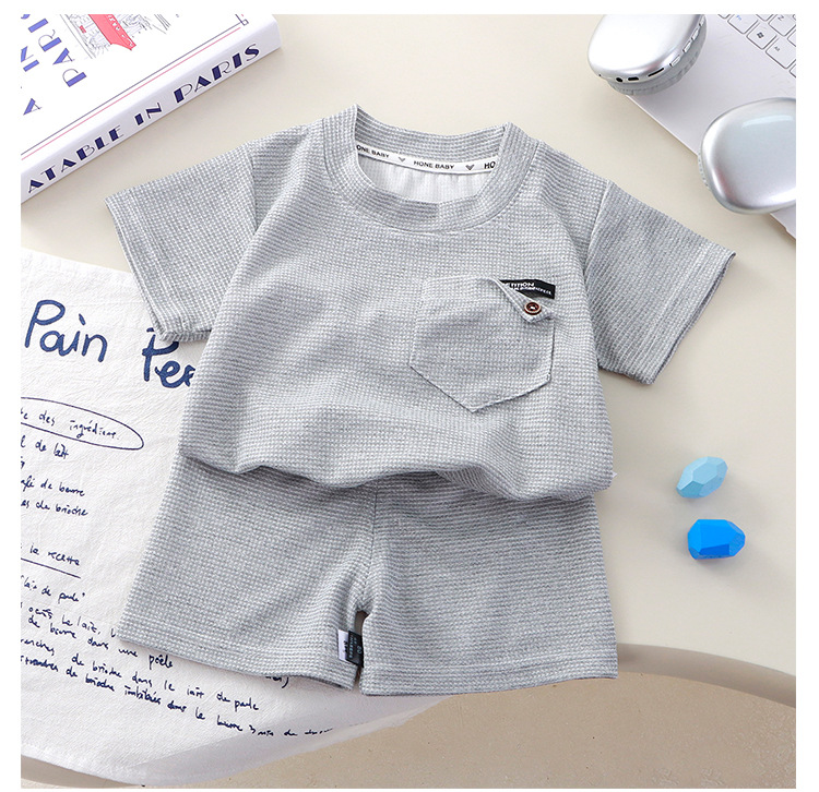 Новый детский вафли с короткими рукавами, летняя мужская и женская повседневная спортивная одежда свежий тонкий набор из двух частей