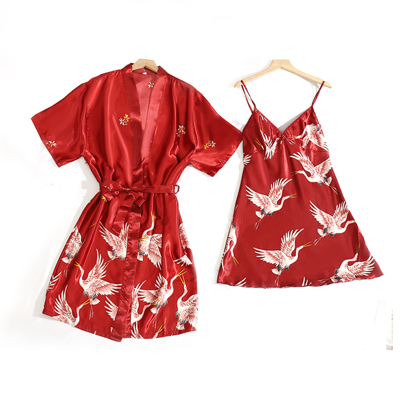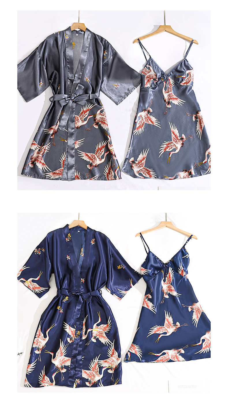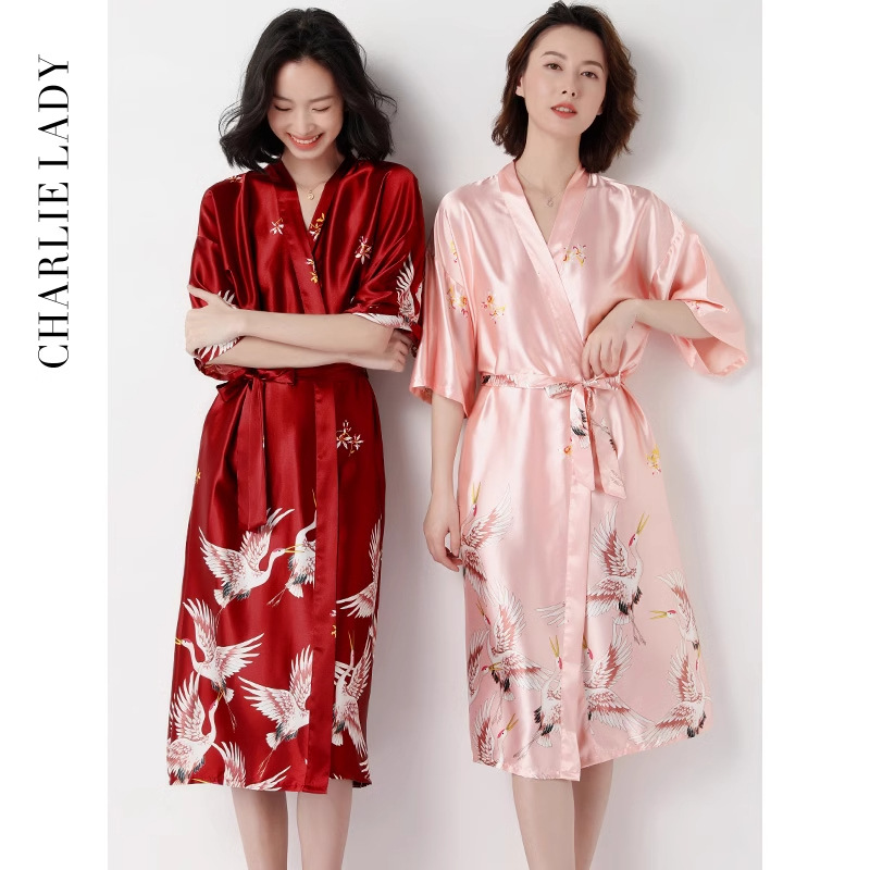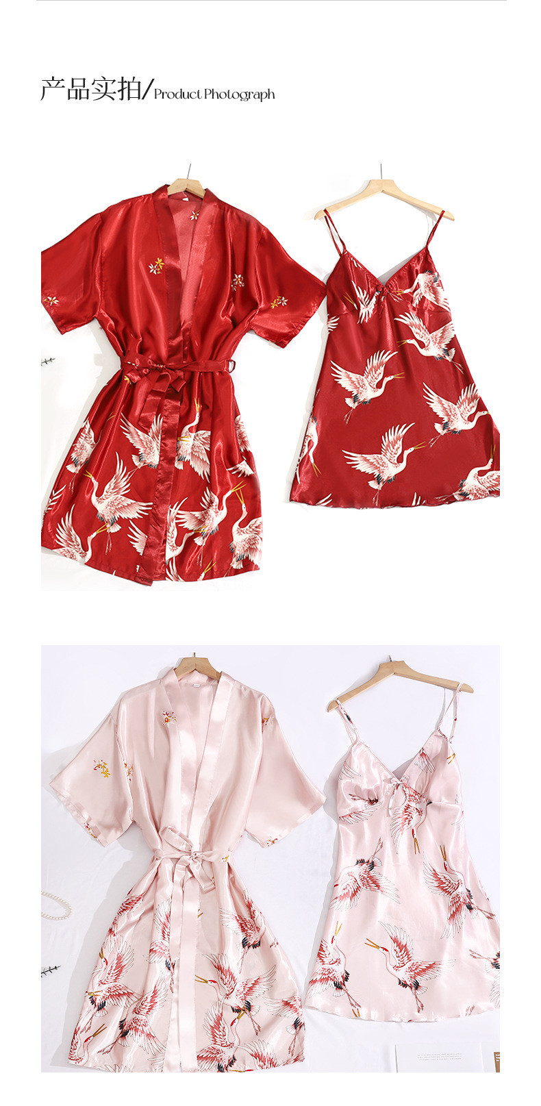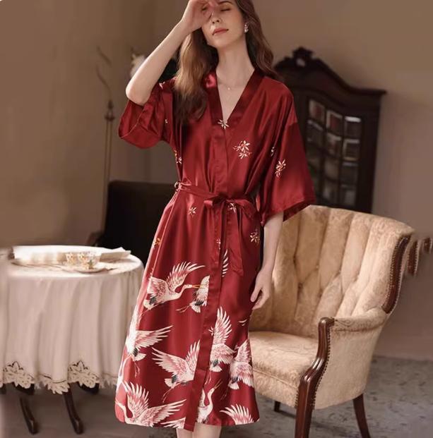 Ночная одежда Весенняя и летняя ледяная шелковая ночная юбка среднего рукава плюс размер халат симуляции шелк свадебная невеста утренняя одежда оптовая продажа