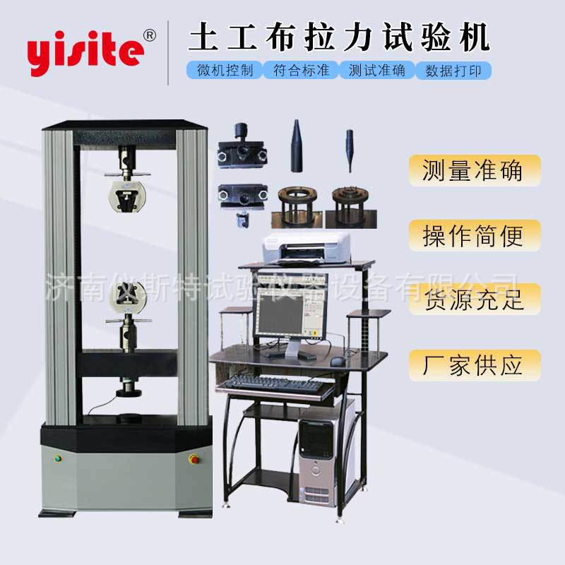 产品简介:该设备主要用于土工布的梯形撕裂、宽条窄条拉伸试验、顶破强力和刺破强力的测试。系统采用微机闭环控制,具有宽广准确的加载速度和测力范围,对载荷、位移的测量和控制有较高的精度和灵敏度。试验机主机的设计具有外形美观、操作方便、性能稳定可靠的特点,无污染、噪音低、效率高。