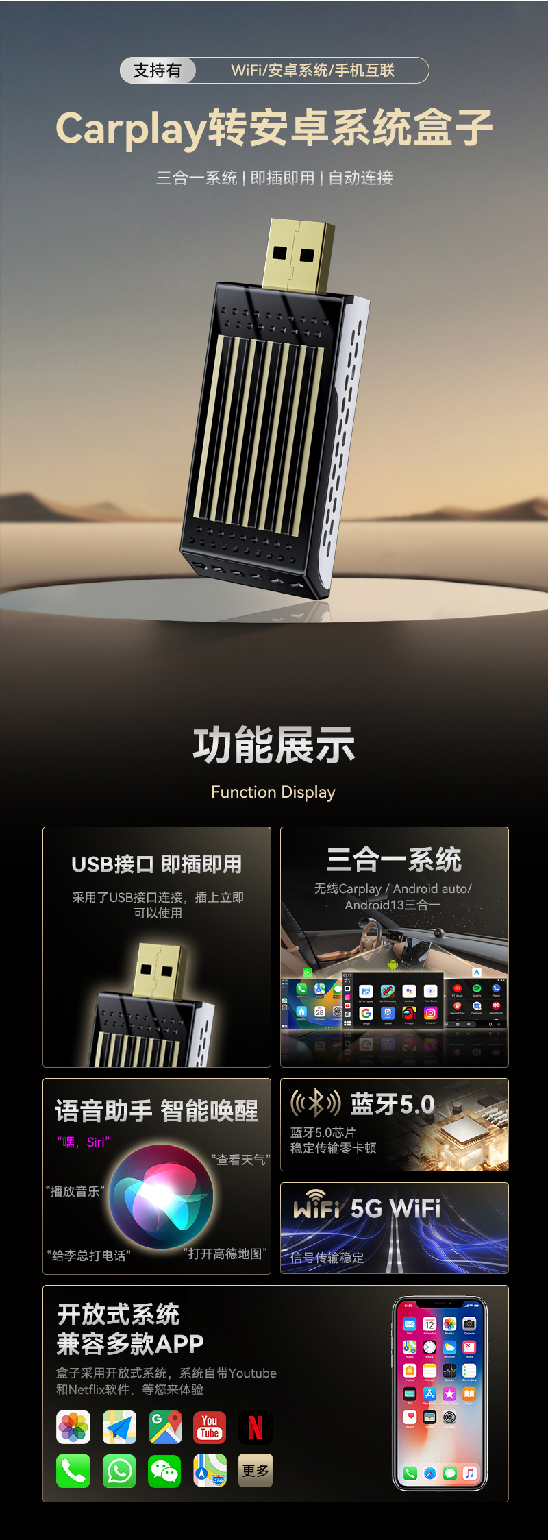 Новый конвертер carplay ai box для автомобиля смарт-коробка для андроид машина для подключения carplay коробка