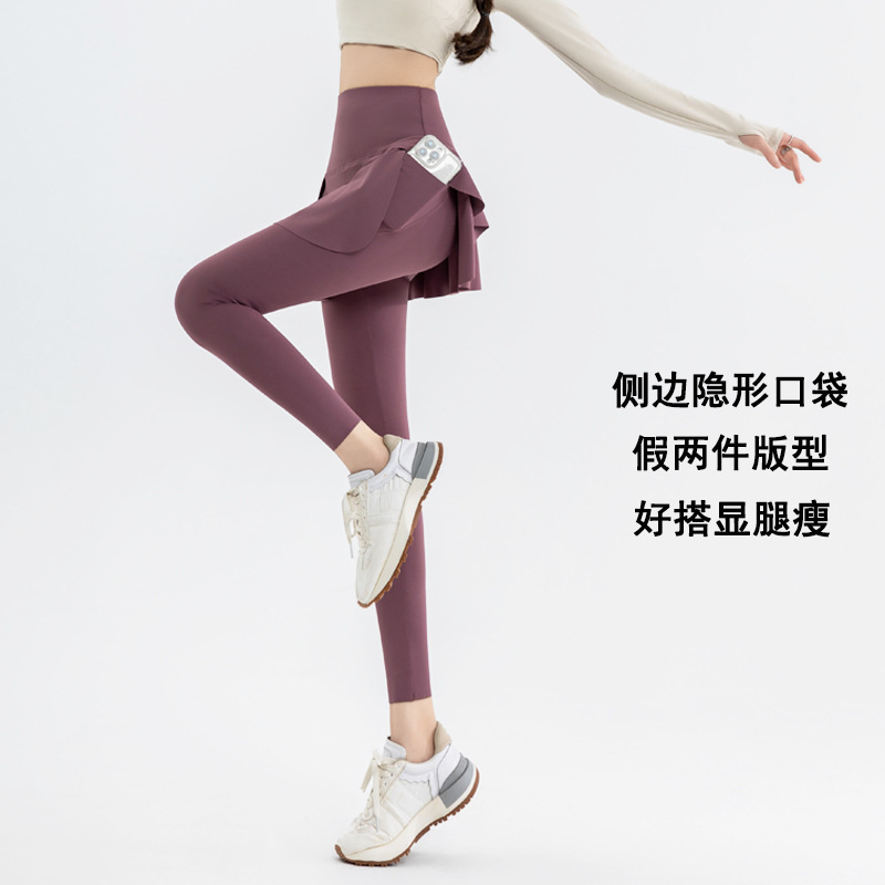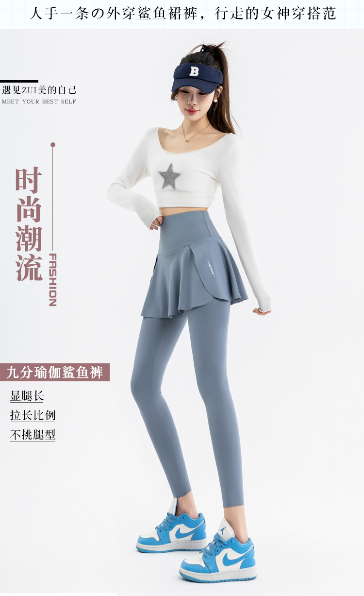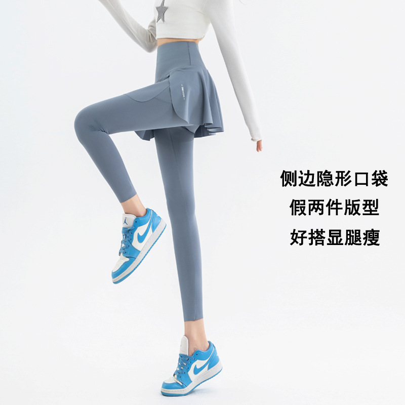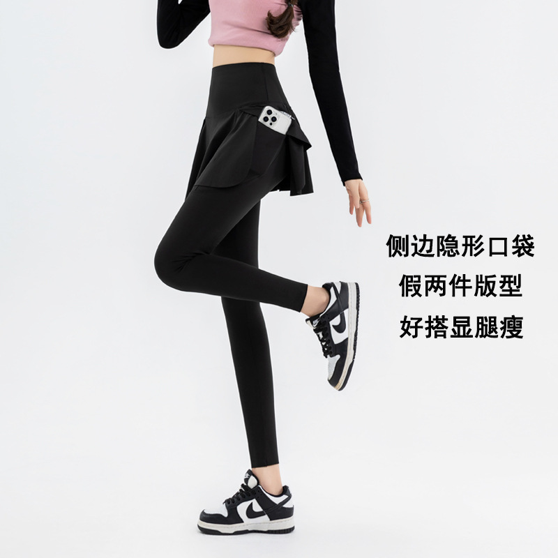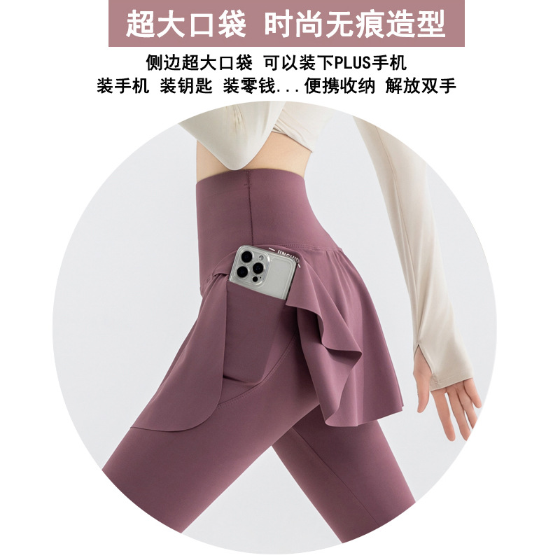 Новые весенние искусственные двухсекционные брюки-кюлоты для йоги с высокой талией и боковым клапаном, брюки с карманами, эластичные брюки с акулой, тонкие леггинсы с девятью точками, трансграничная поставка