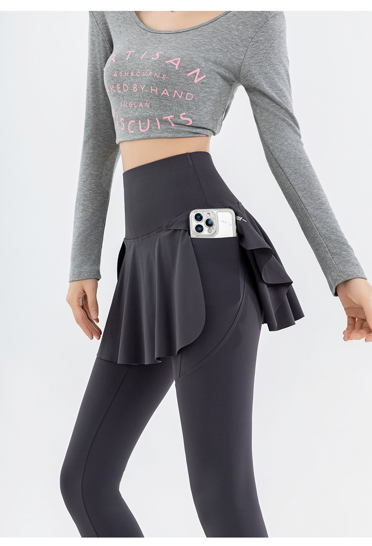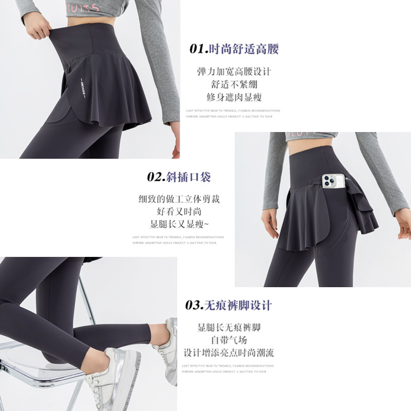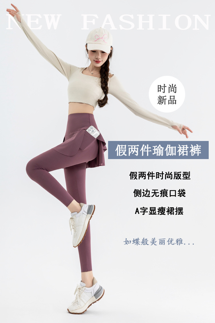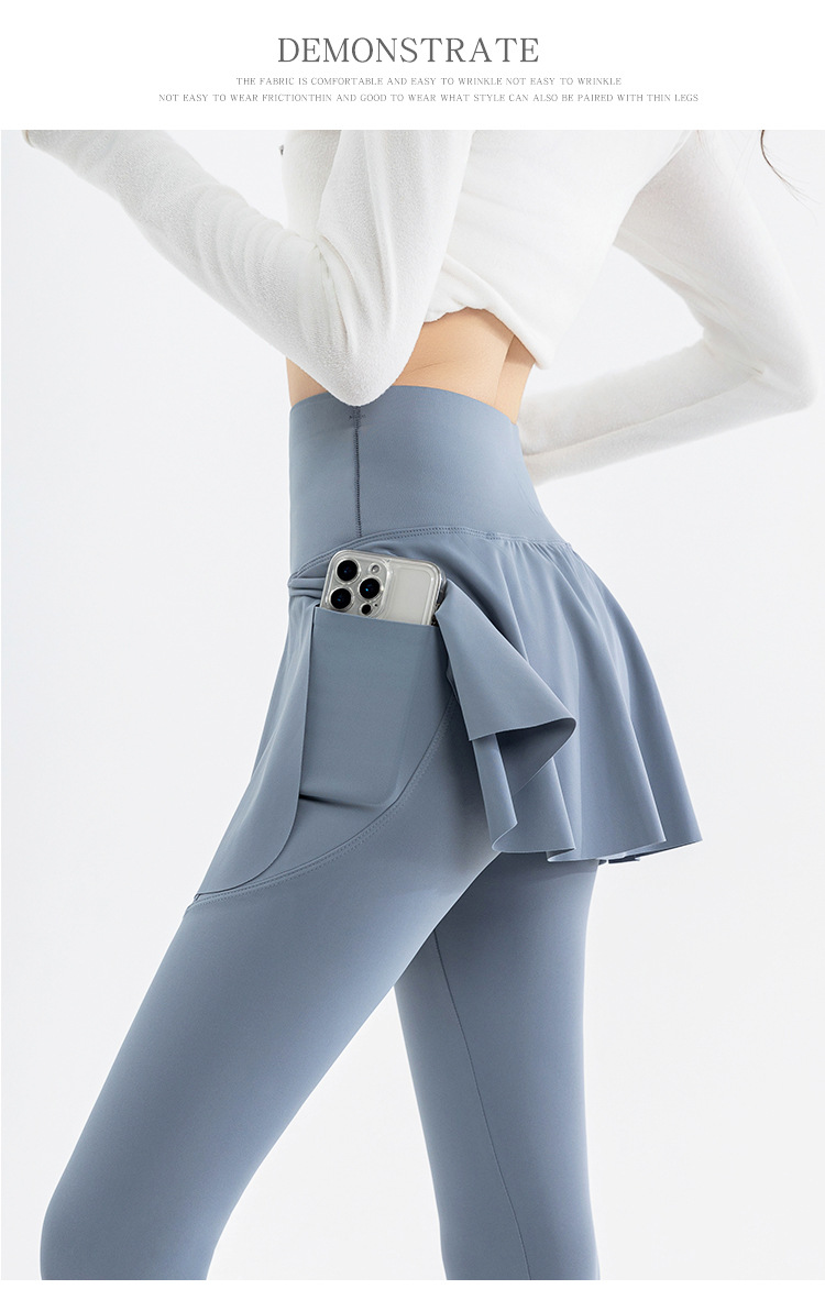 Новые весенние искусственные двухсекционные брюки-кюлоты для йоги с высокой талией и боковым клапаном, брюки с карманами, эластичные брюки с акулой, тонкие леггинсы с девятью точками, трансграничная поставка