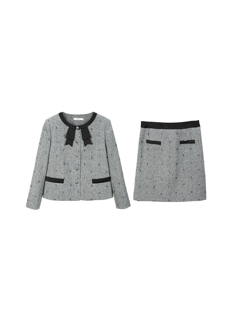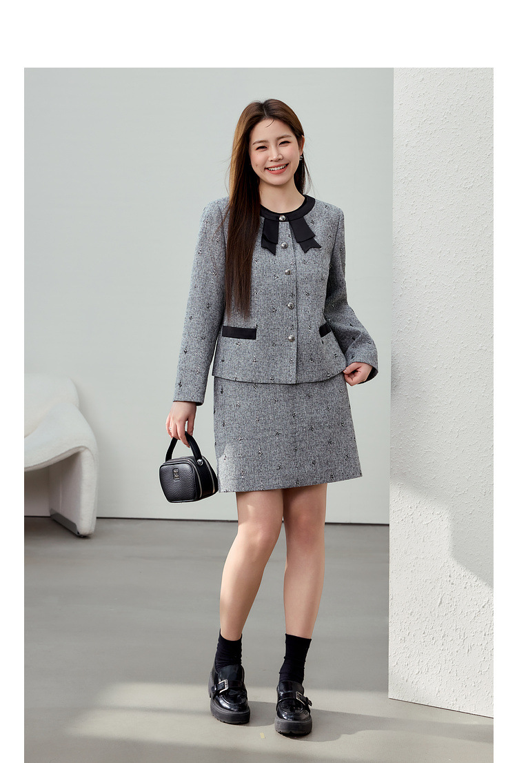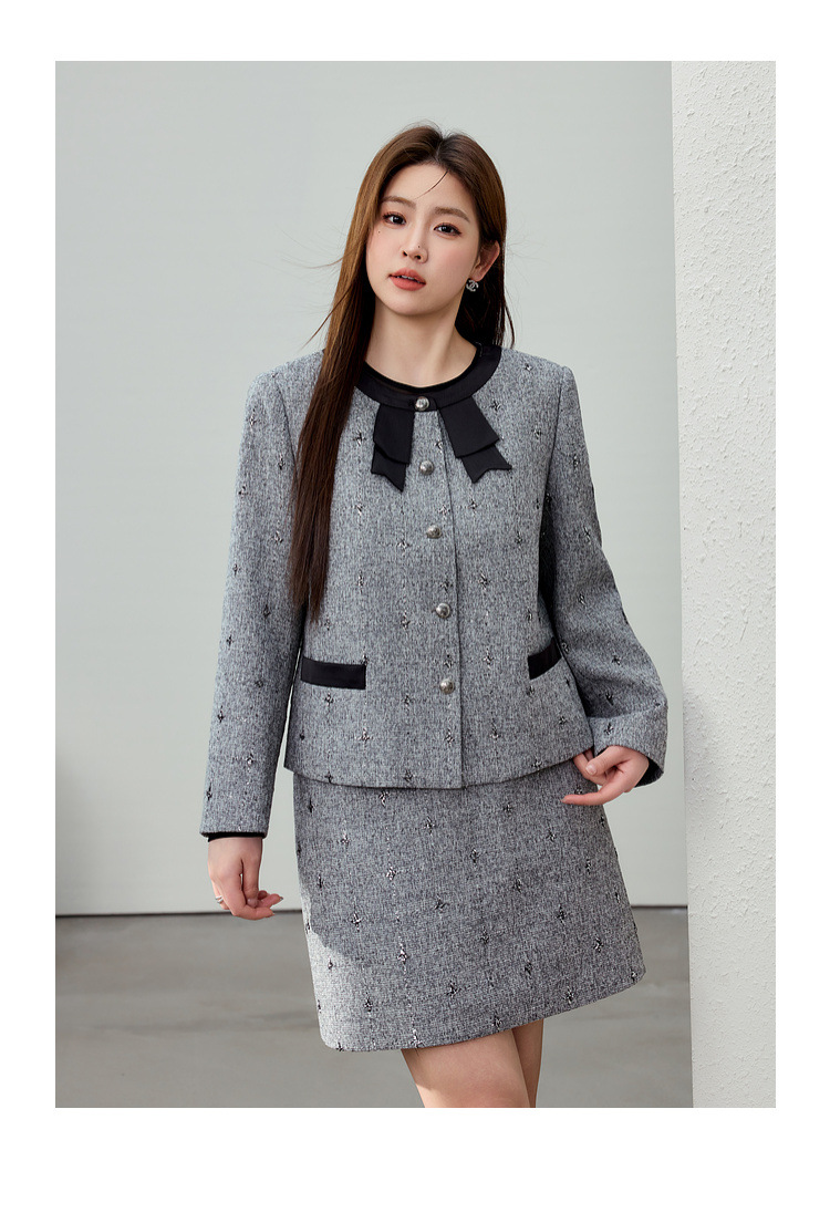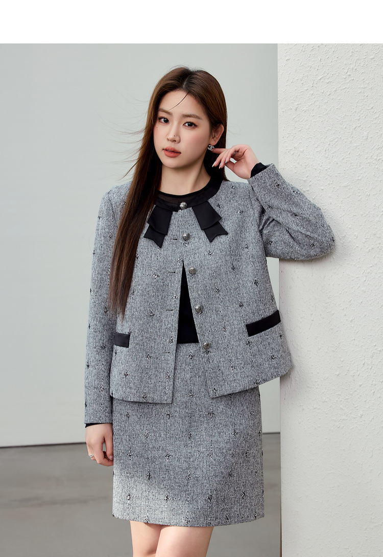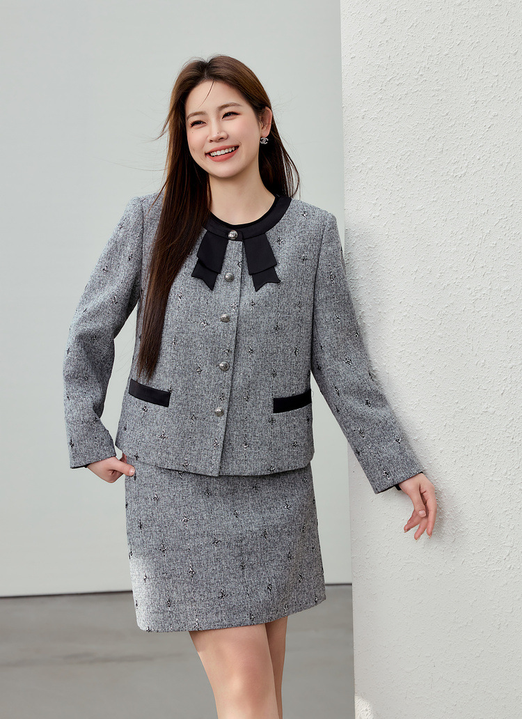 Серый [Пальто QK0111]; Серый [юбка QK01 условия