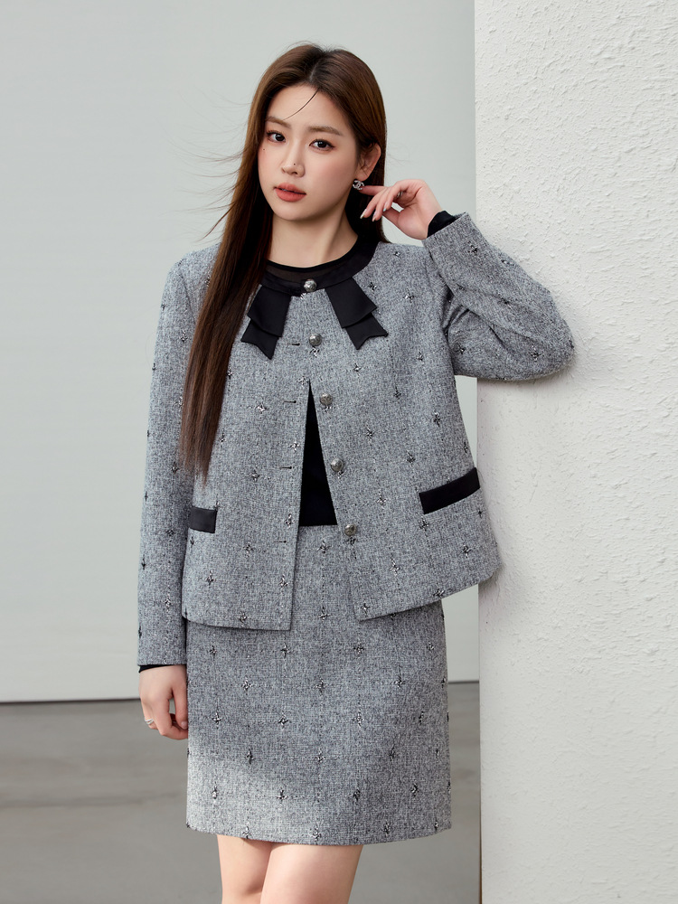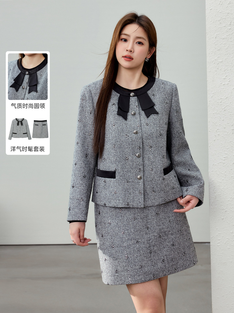 [Легкий роскошный стиль элегантный интеллектуальный и иностранный костюм из двух частей] Funny Show большой размер женский толстый мм весенний новый
