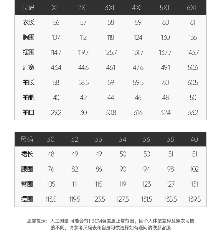 L; XL; 2XL; 3XL; 4XL; 5XL; 6XL
