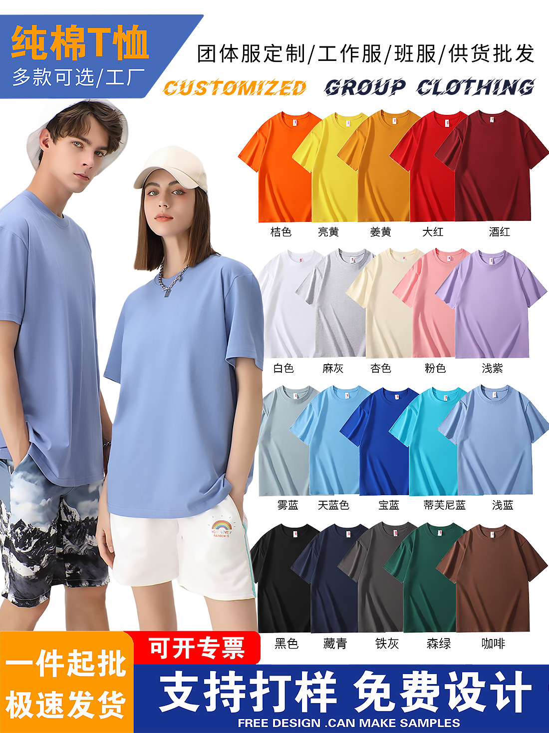Футболка из чистого хлопка с принтом логотипа на заказ, рекламная рубашка, быстросохнущая футболка с круглым вырезом и короткими рукавами с принтом, оптовая продажа, рабочая одежда, униформа для индивидуального класса