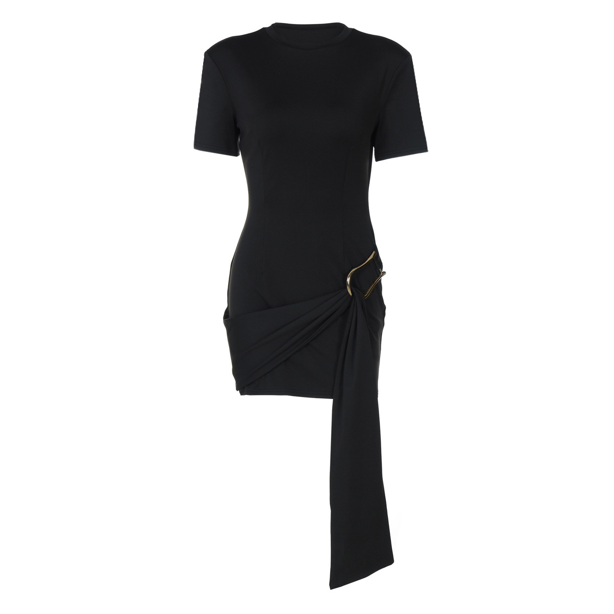 Женская одежда европейского и американского стиля 2025 весна новая мода темперамент металлическая пряжка декоративное платье с круглым вырезом с полукругом