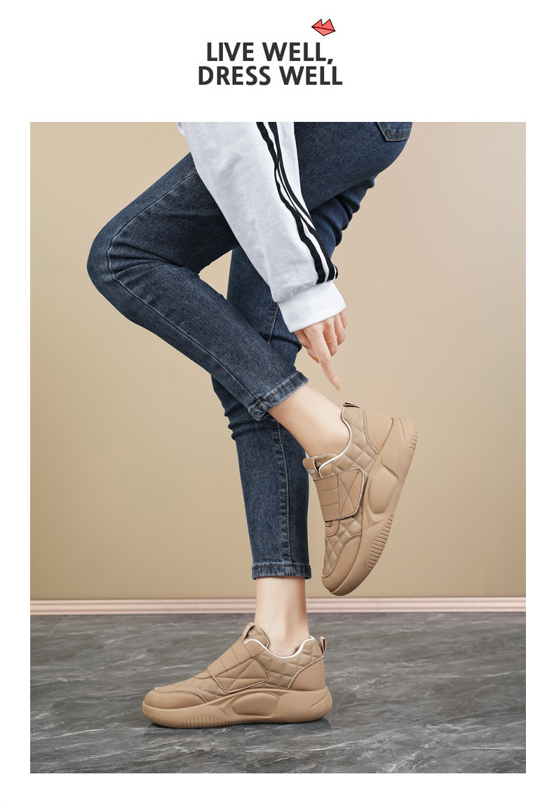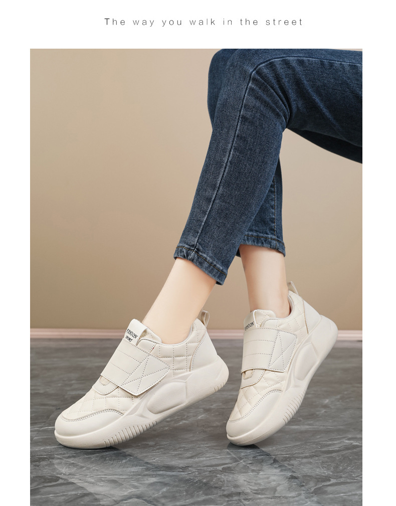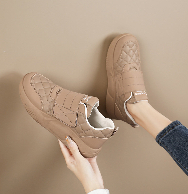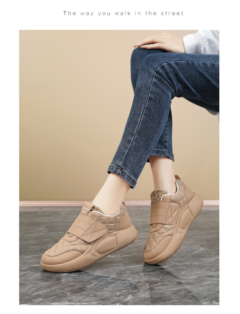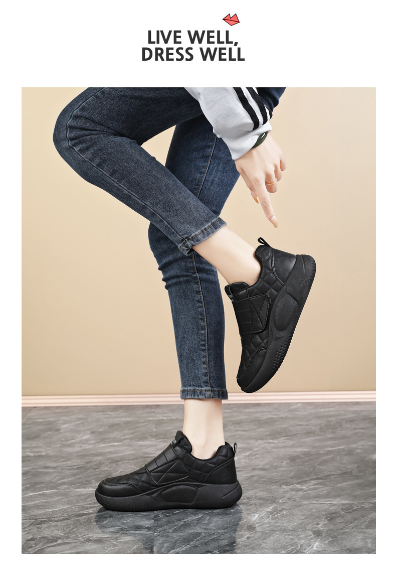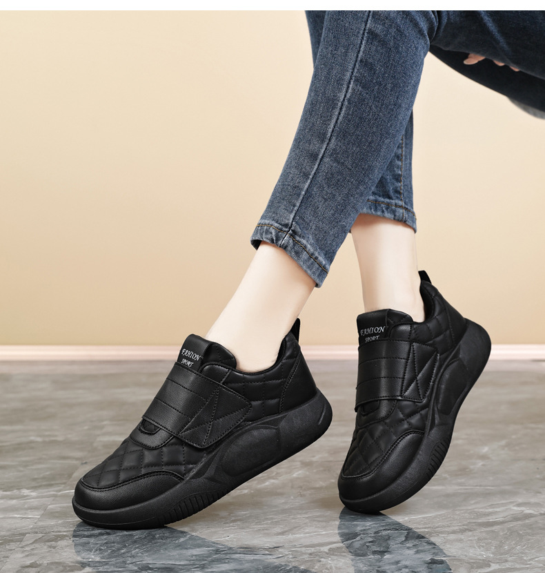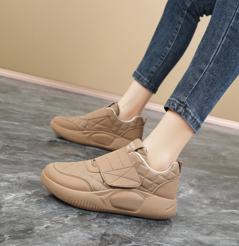 Женские кроссовки на липучках для беременных, новая модель осень-зима 2025, низкие, большие размеры 41-42, кожаная поверхность, нескользящие повседневные туфли для женщин