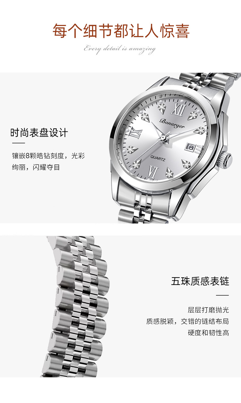【退换说明】商品在不影响二次销售、未拆除静电纸保护膜以及未使用过的情况下,我们支持7天内退换货服务。您发回来的产品请务必要保证未使用过,产品无划痕、手表以及原包装完整。退回时不要在原包装盒手表上面贴胶纸或者写字,因个人原因造成的产品损坏一律不予退换,运费客户自行承担!