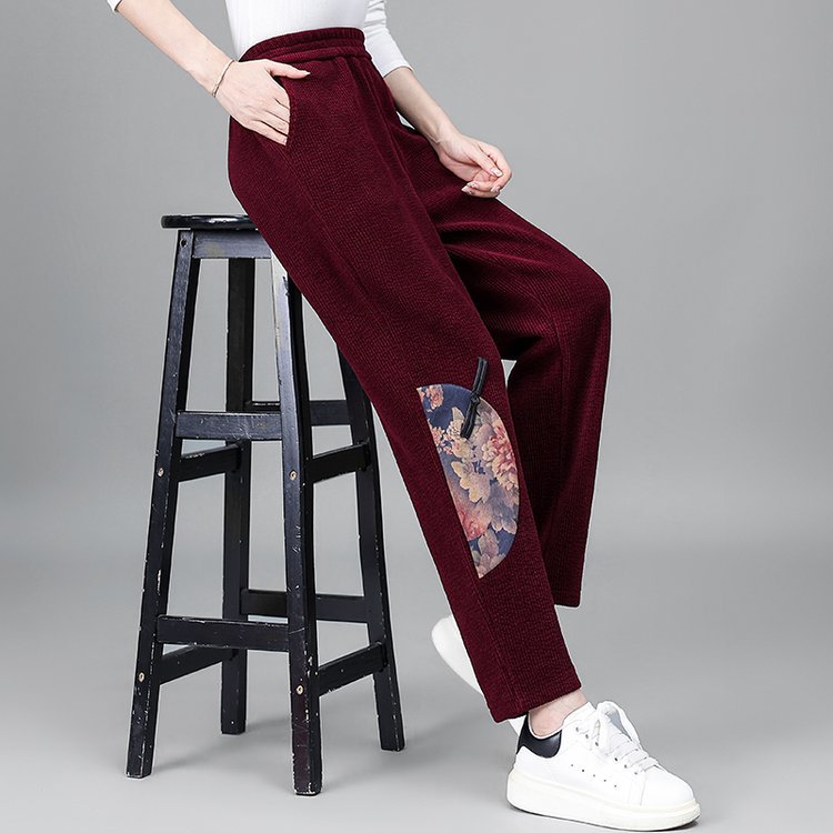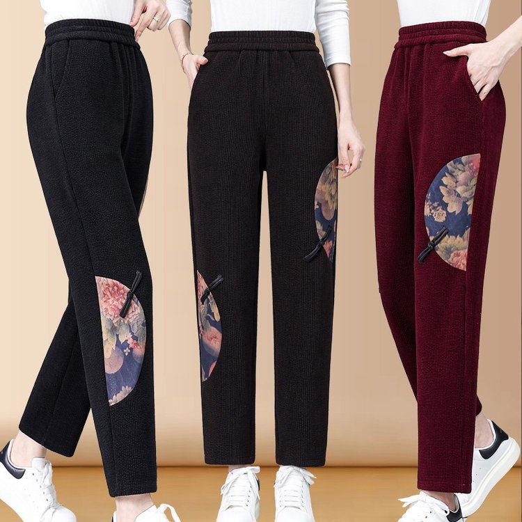 Люди среднего и пожилого возраста весенние и осенние брюки мамы теплые хлопковые брюки