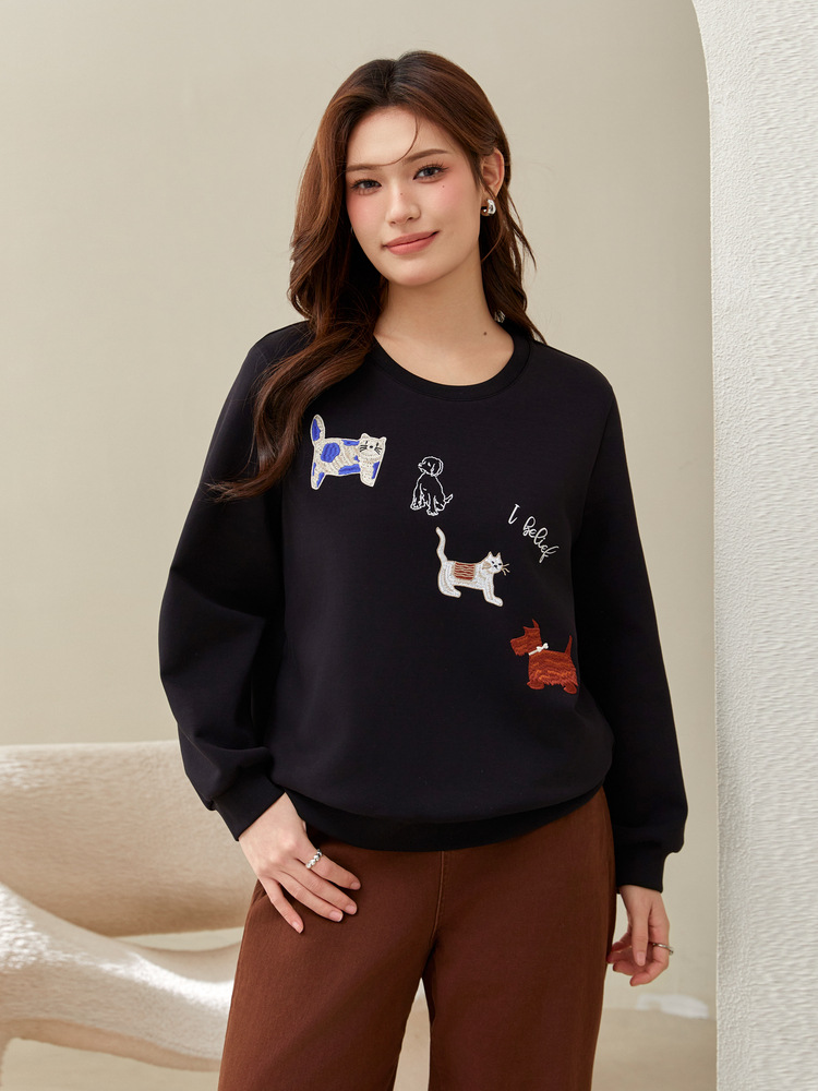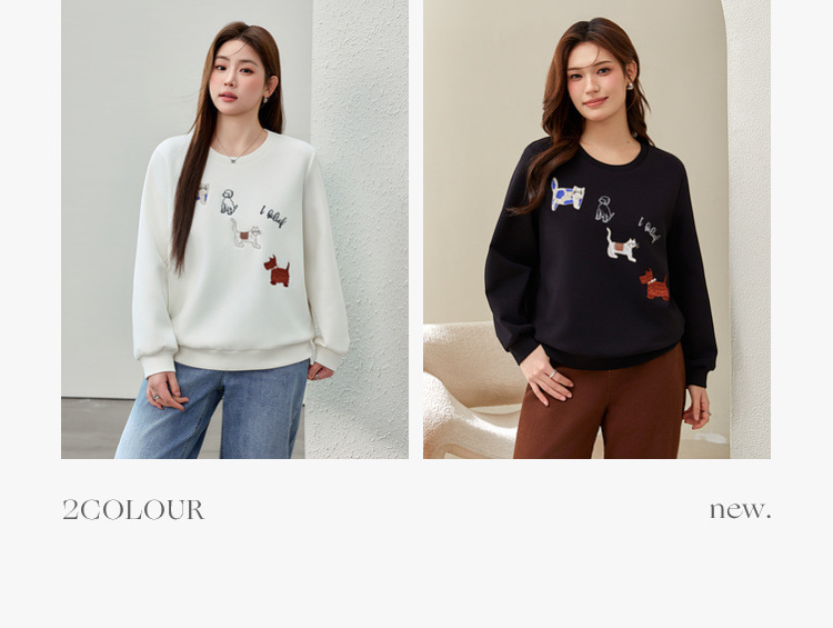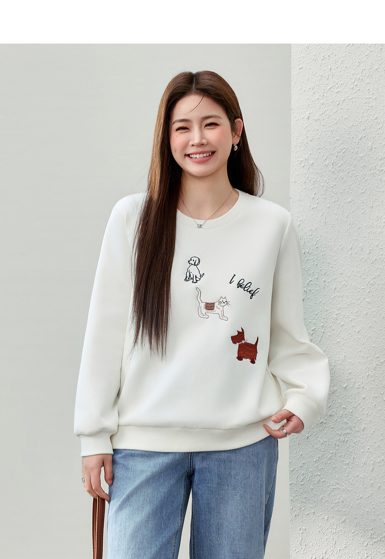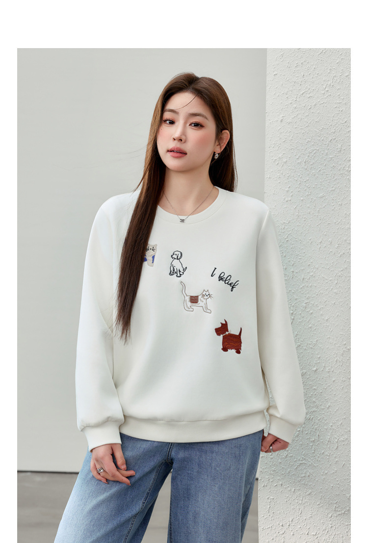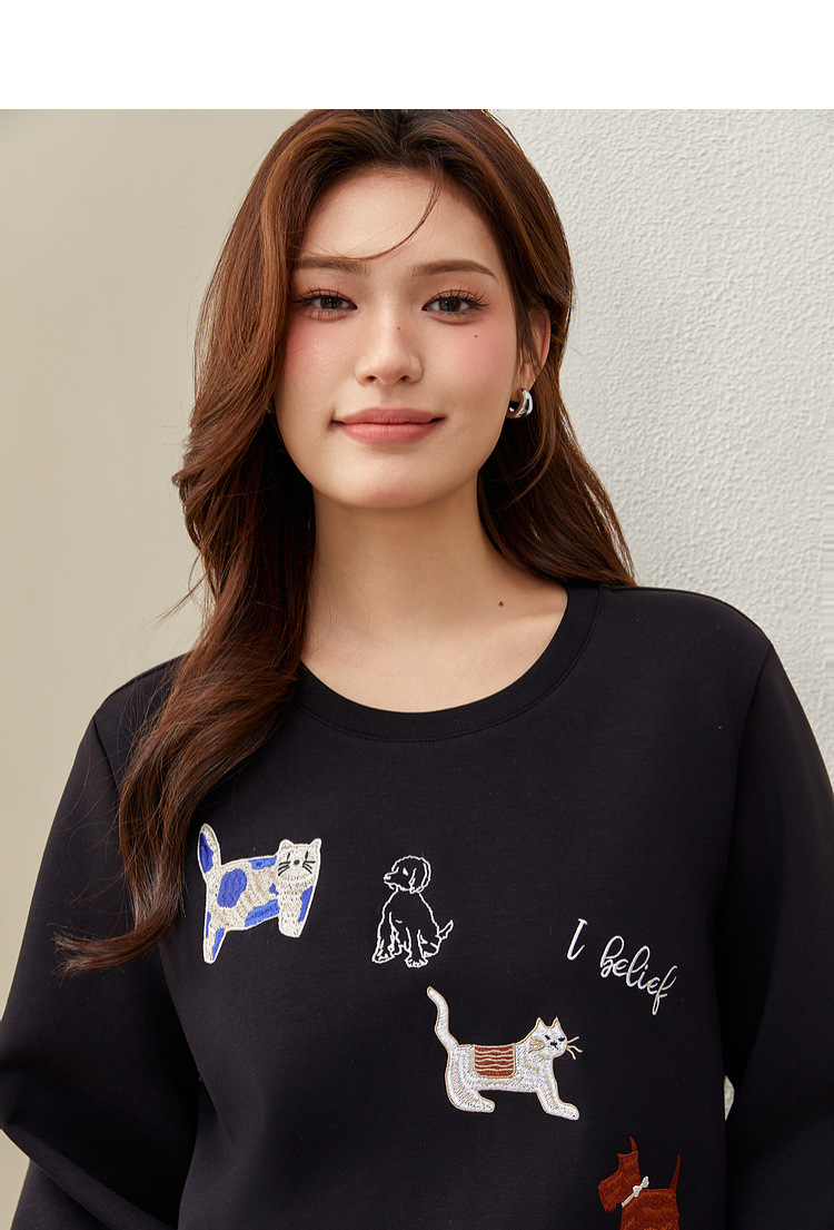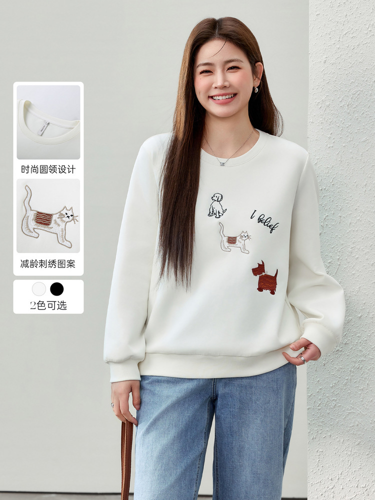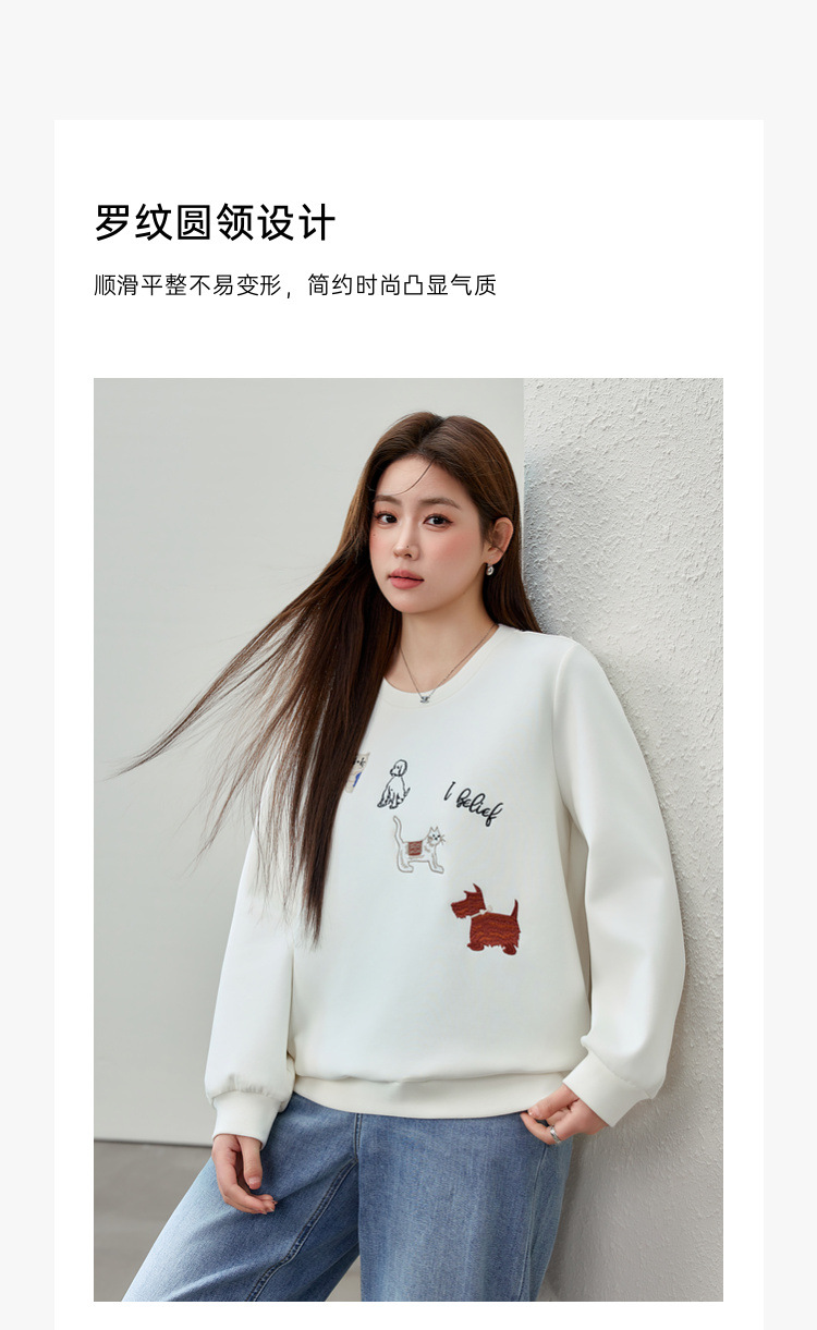 [Американский ретро с уменьшением возраста с круглым вырезом, дикий свитер] Funny Show большой размер женский толстый mm2025 весенний новый