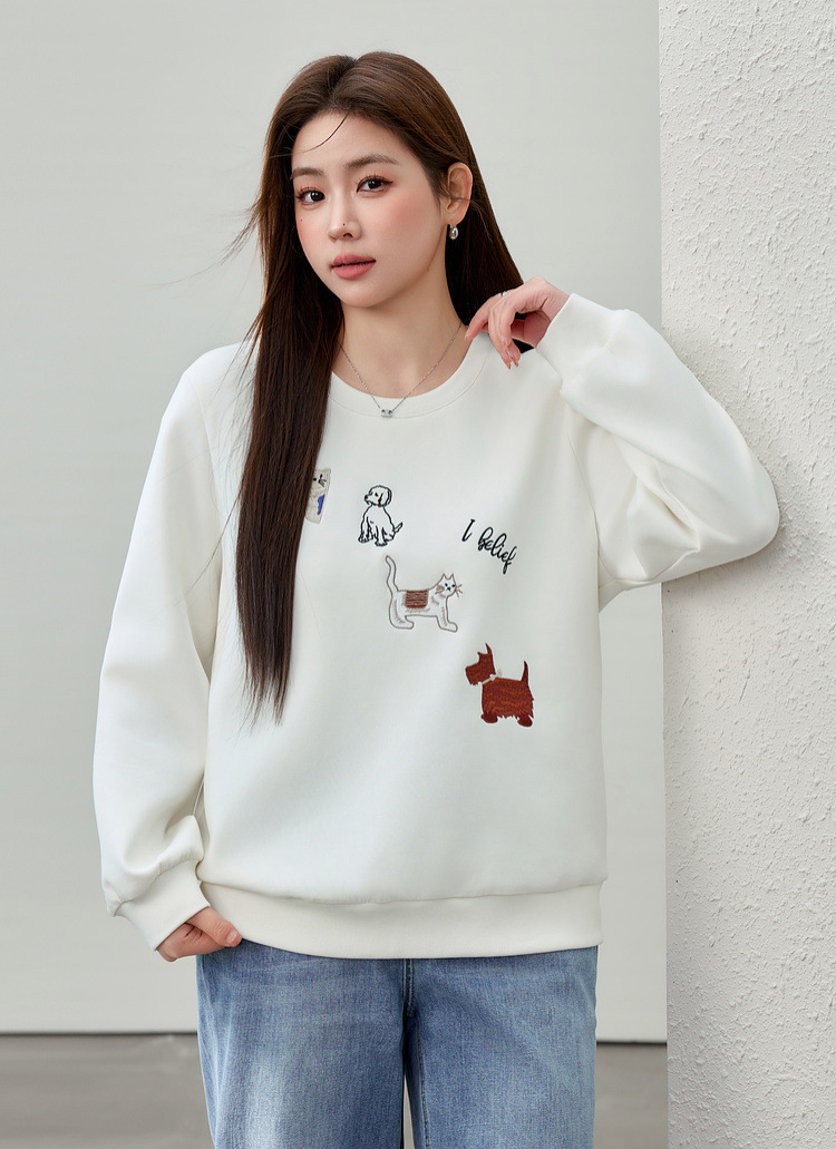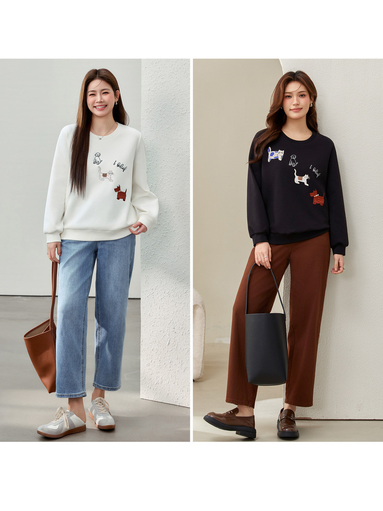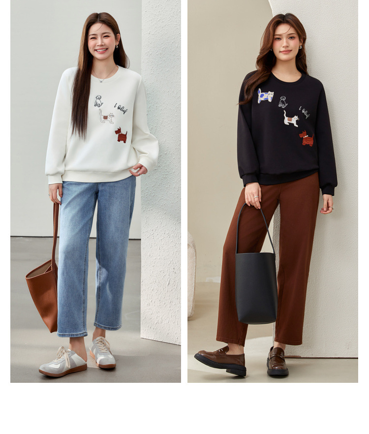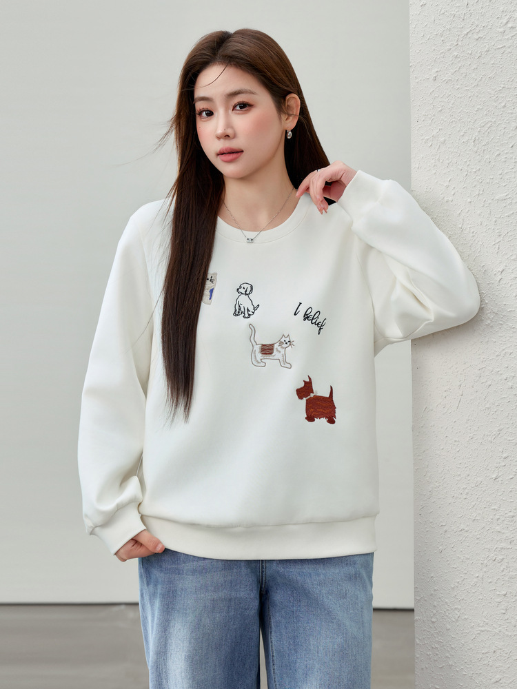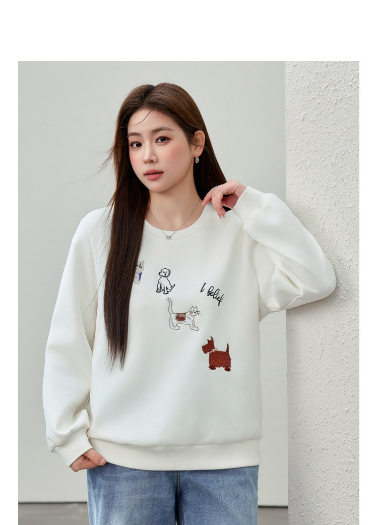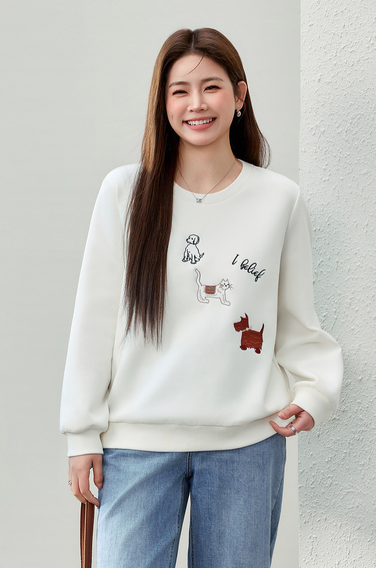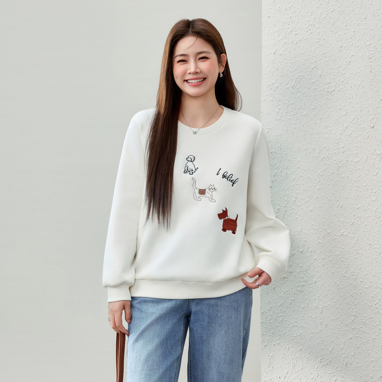 [Американский ретро с уменьшением возраста с круглым вырезом, дикий свитер] Funny Show большой размер женский толстый mm2025 весенний новый