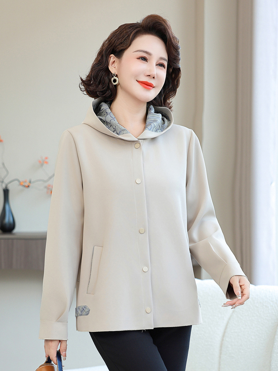 Весенняя куртка для мамы, свободный топ для женщин среднего возраста, для людей среднего и пожилого возраста 40 и 50 лет, весенне-осенняя куртка с капюшоном.