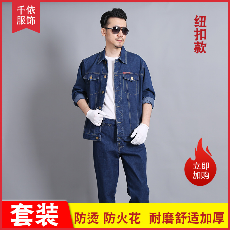 Толстый джинсовый комбинезон комплект мужской одежды по страхованию труда Заводская одежда сварочное оборудование инженерное оборудование