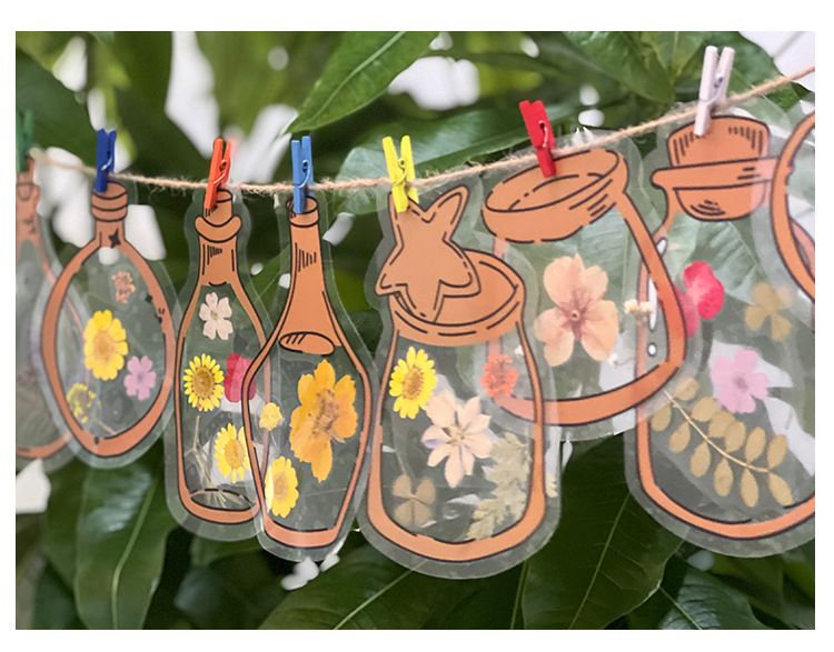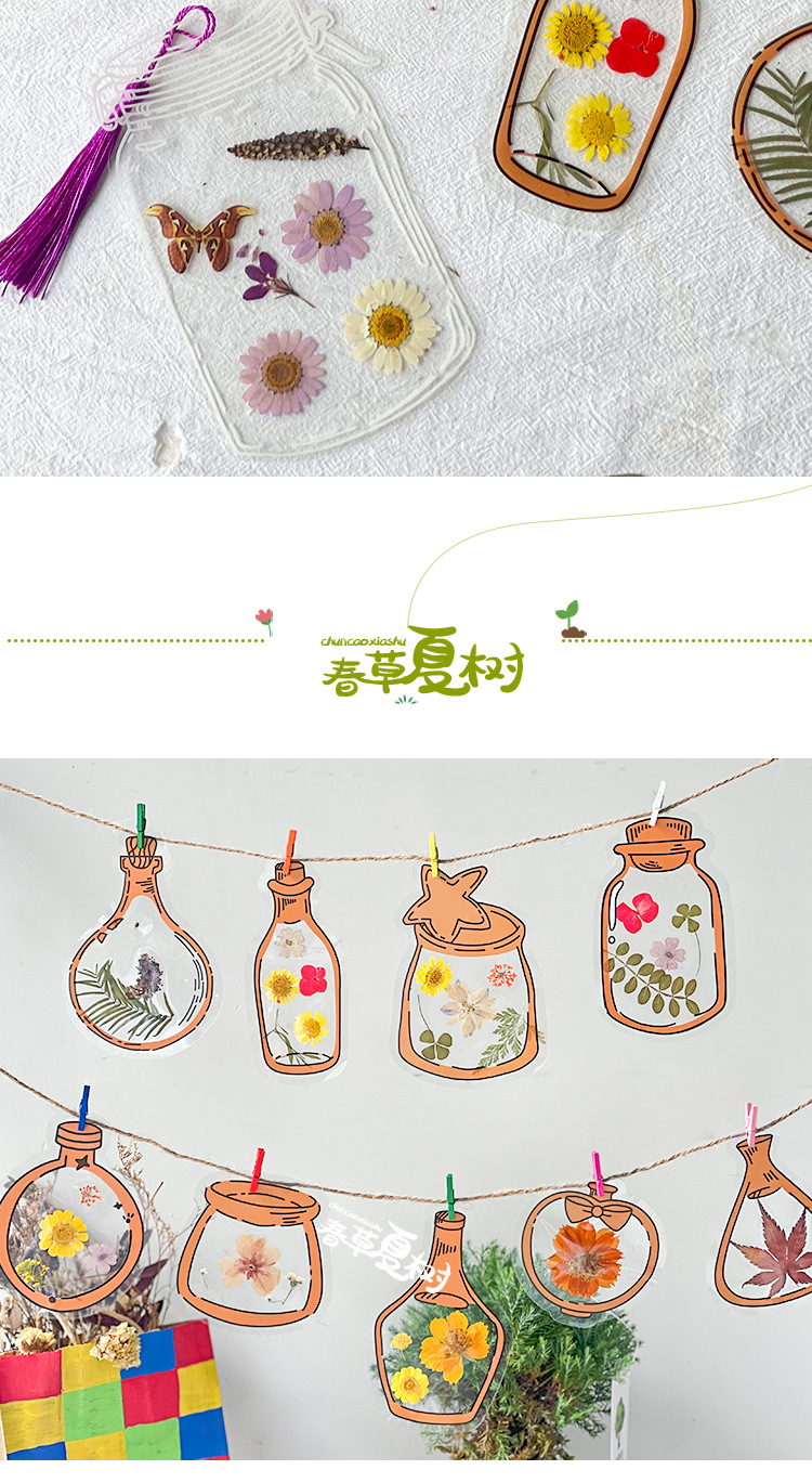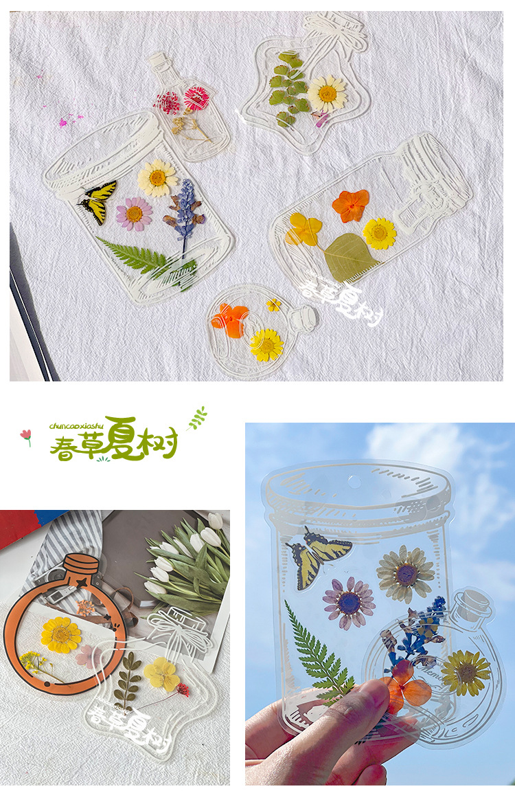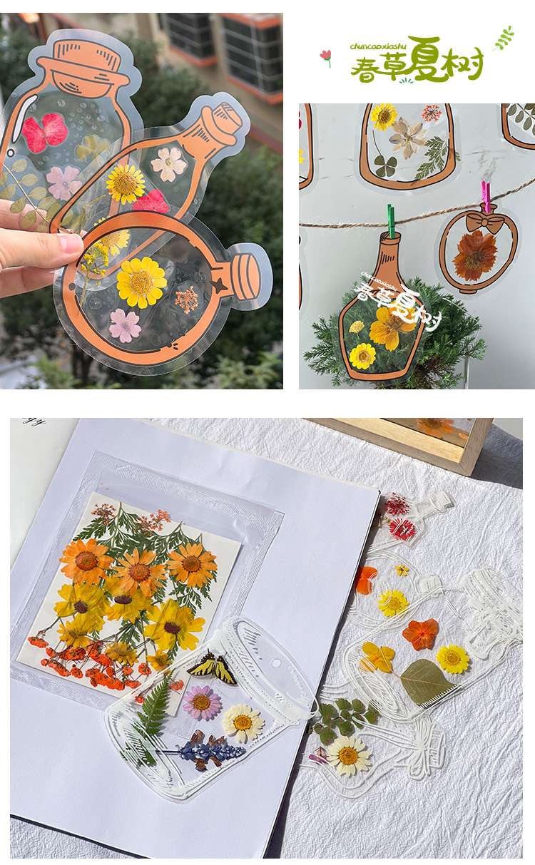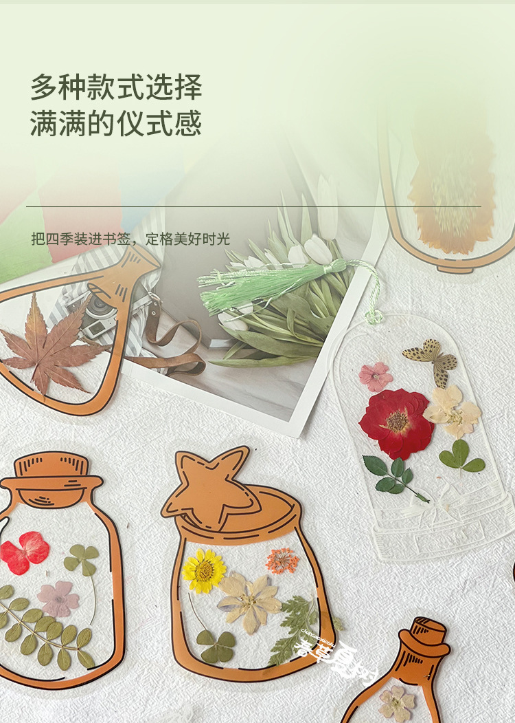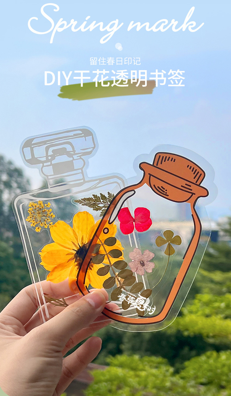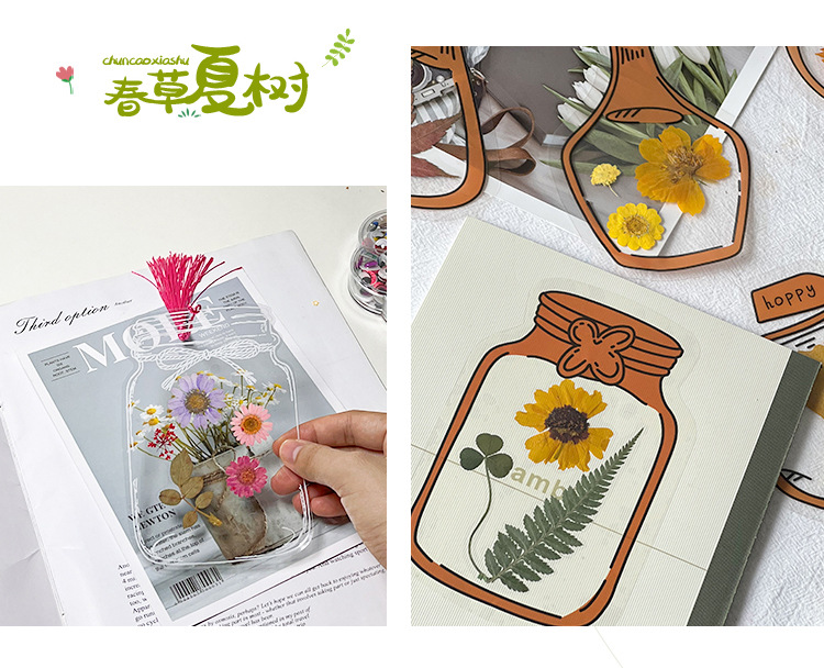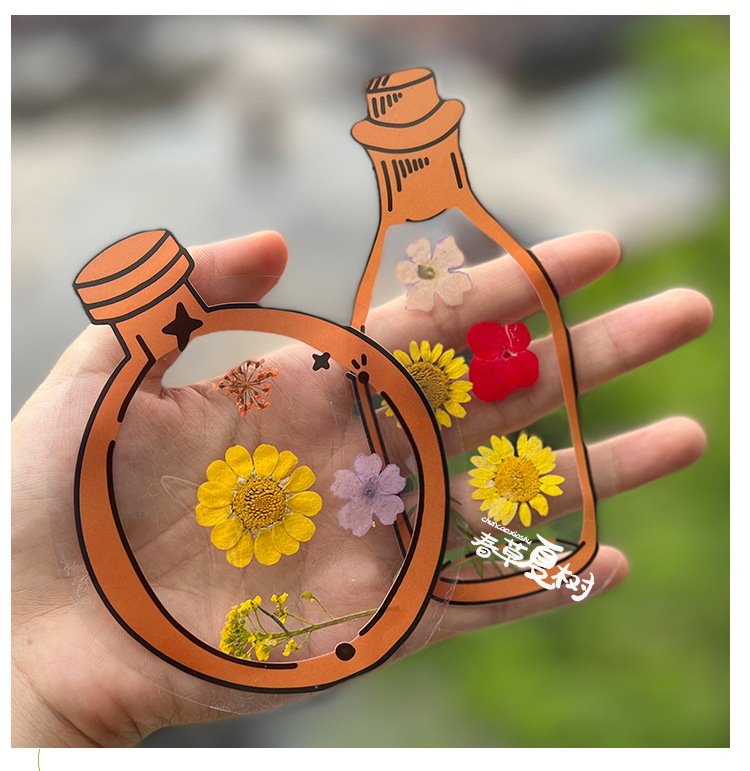 Весенние сухие цветы закладки в бутылке для детей ручной работы diy материал прозрачные домашние тисненые растения листья экземпляры