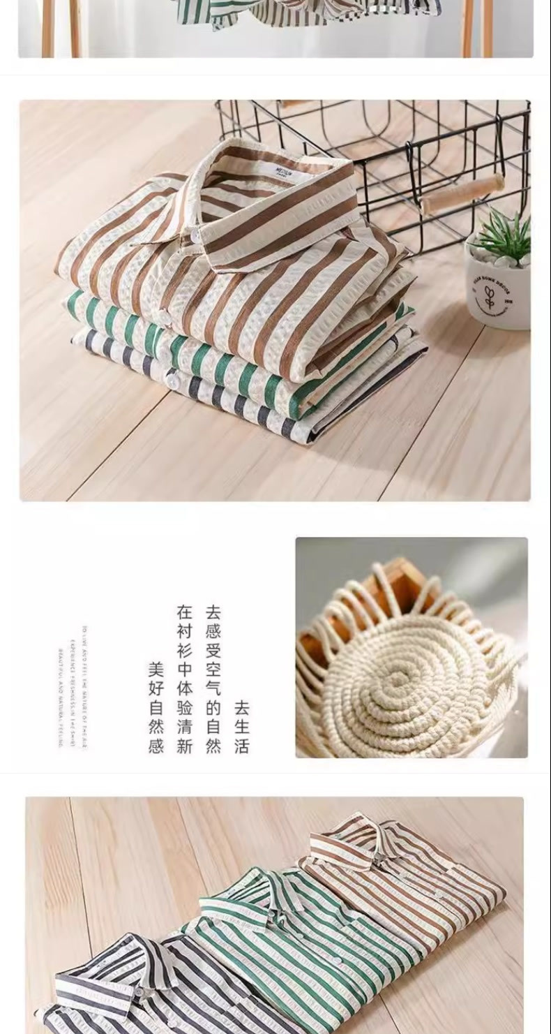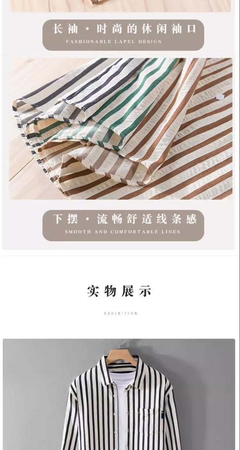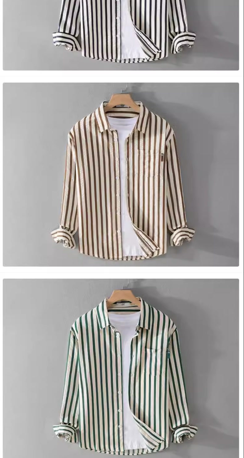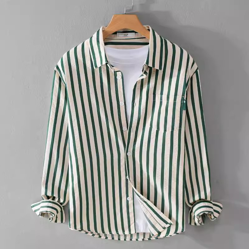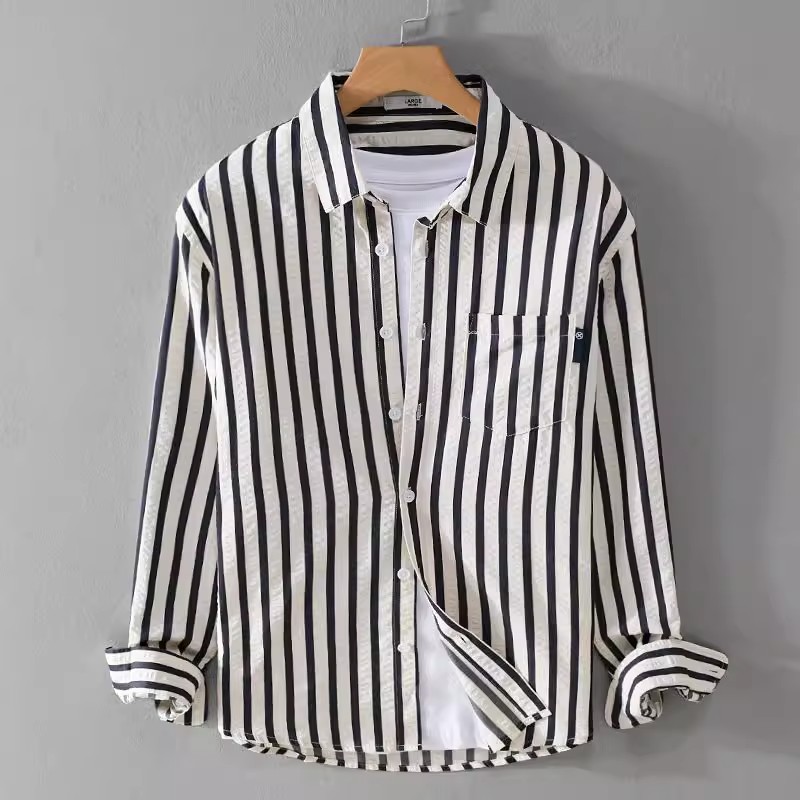 Торговый центр закрыл рубашку с длинными рукавами в полоску из ледяного шелка