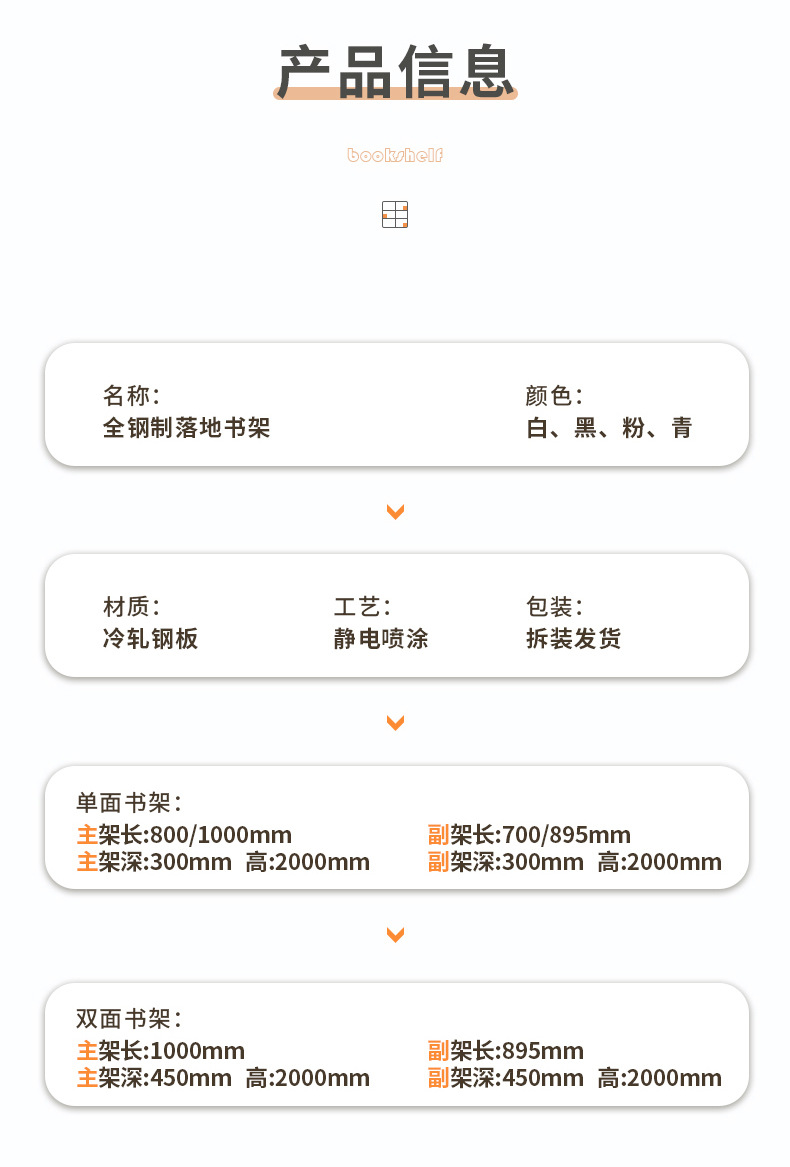 Односторонняя основная рама книжной полки (800*300*2000мм); Односторонний подрамник книжной полки (700*300*2000мм)); Односторонняя основная рама книжной полки (1000*300*2000мм); Односторонний подрамник книжной полки (895*300*2000мм); Двусторонняя основная рама книжной полки (1000*450*2000мм)); Двусторонняя подрамная книжная полка (895*450*2000мм); Белая однорядная основная рама (1550x320x280 мм); Белая двухрядная основная рама (1550х320х280мм); Белая трехрядная основная рама (1550х320х280мм); Белая четырехрядная основная рама (1550х320х280мм)