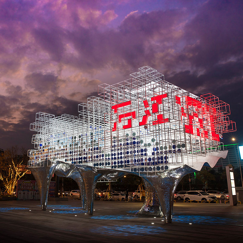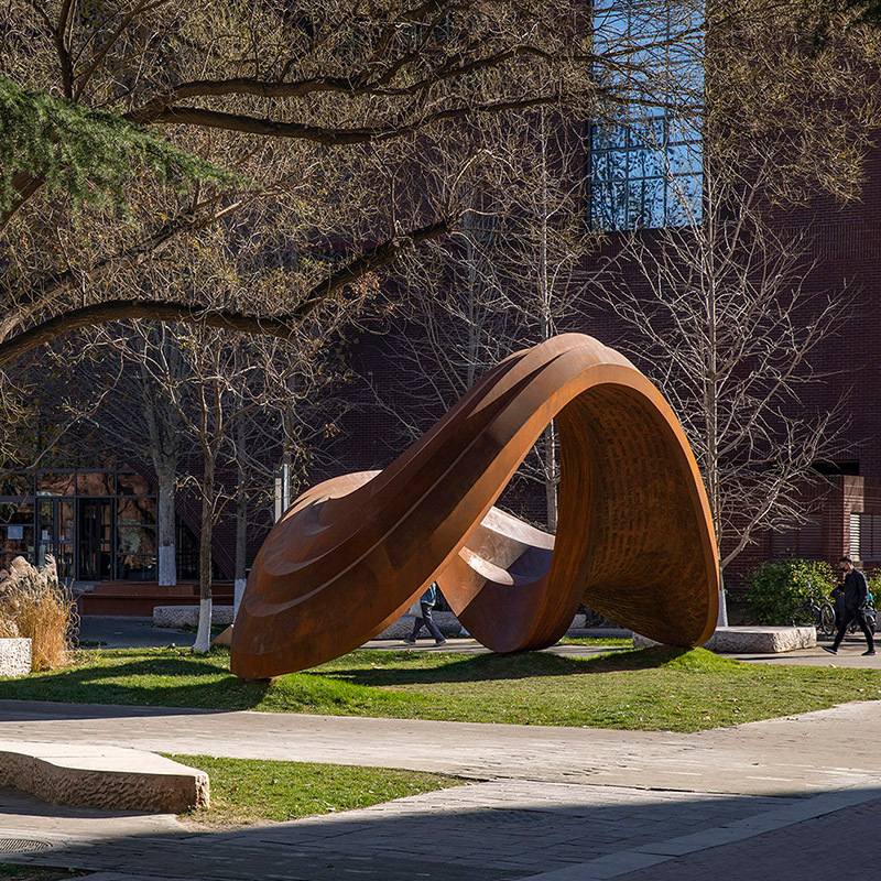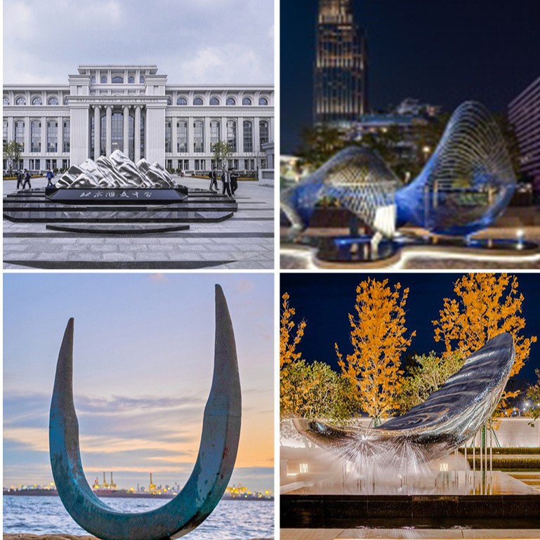 Нержавеющая сталь скульптура ландшафтного скульптура большой зеркальный полый водный пейзаж металлический наружный вид ландшафтного украшения