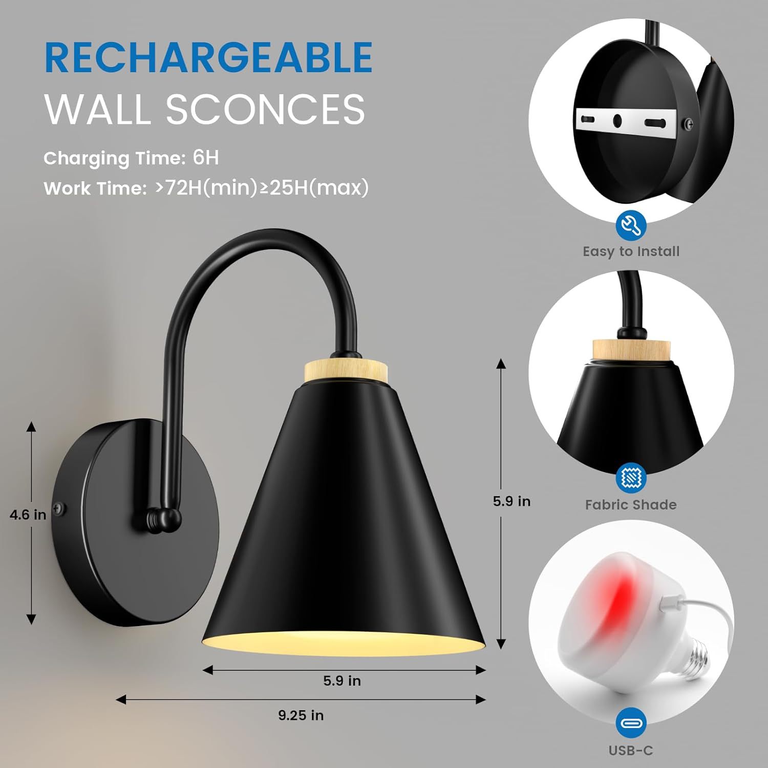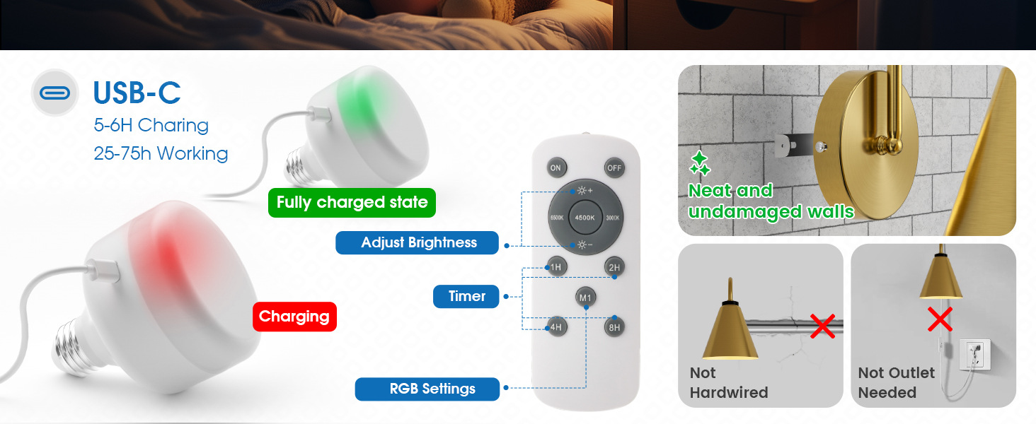 Amazon Горячая продажа аккумуляторная батарея Настенные светильники без проводки Настенные светильники с пультом дистанционного управления Внутренние настенные светильники