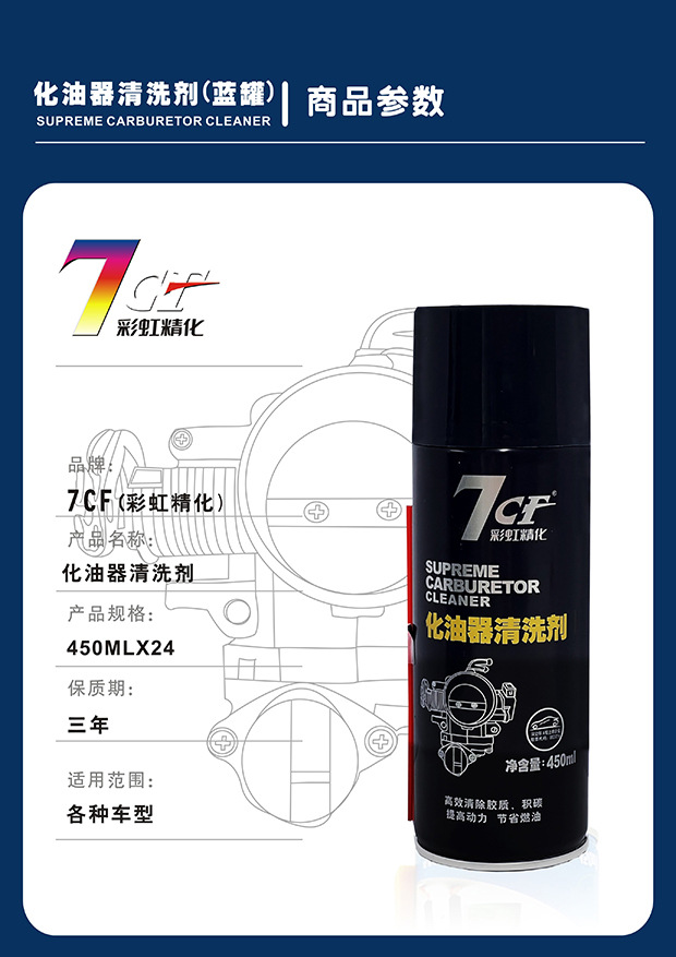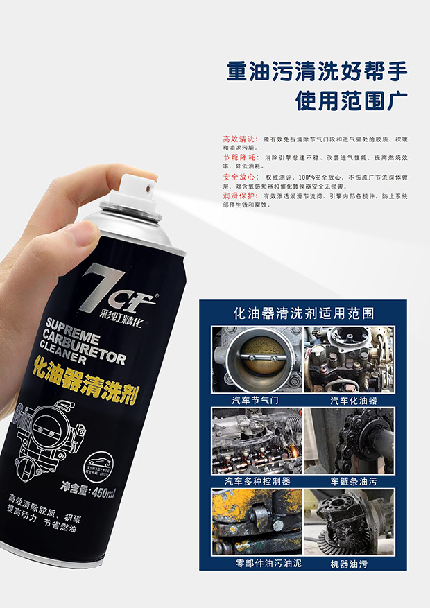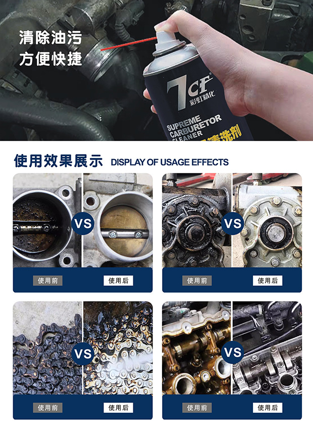 Очиститель карбюраторов 7CF, очиститель топливных форсунок и дроссельных узлов, обезжириватель для автомобилей, мощное средство для удаления масла