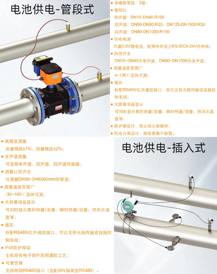 Ультразвуковой тепловой счетчик тепловой энергии Настенный трубопровод типа сплит-фланец дальней передачи воды Энергетометр