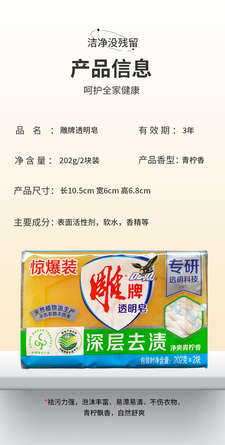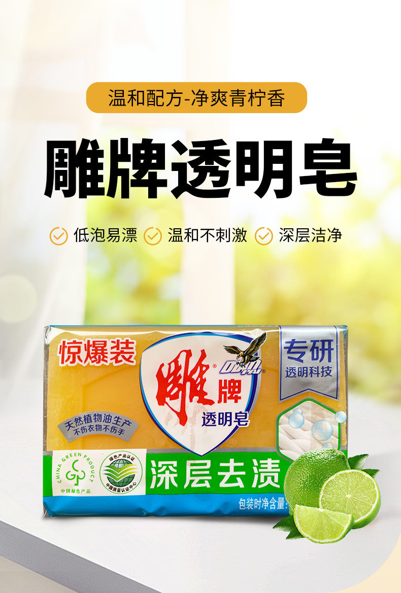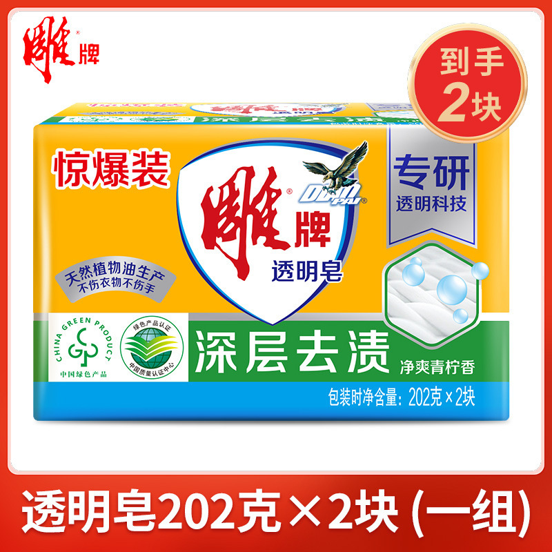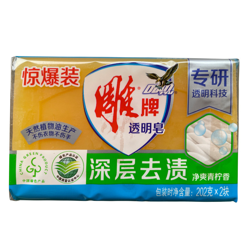 Прозрачное мыло Diaopai, 202 г, одиночный блок, двойной блок, семейная упаковка, бытовое мыло для стирки, прозрачный лимон, очищающее средство для глубокого удаления пятен, легко смывается.