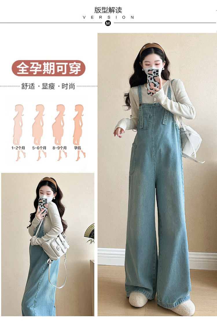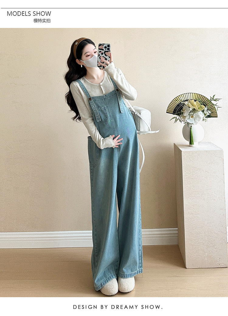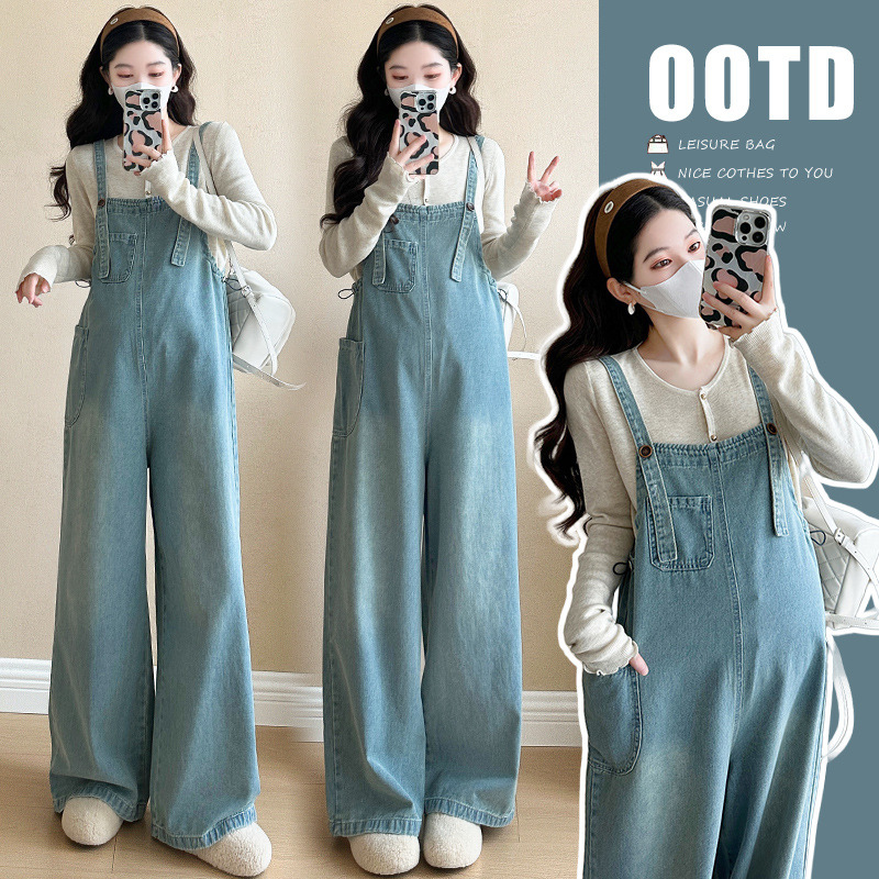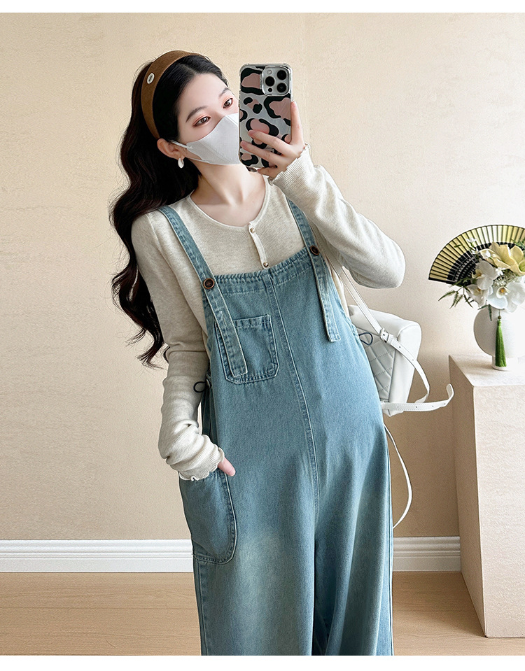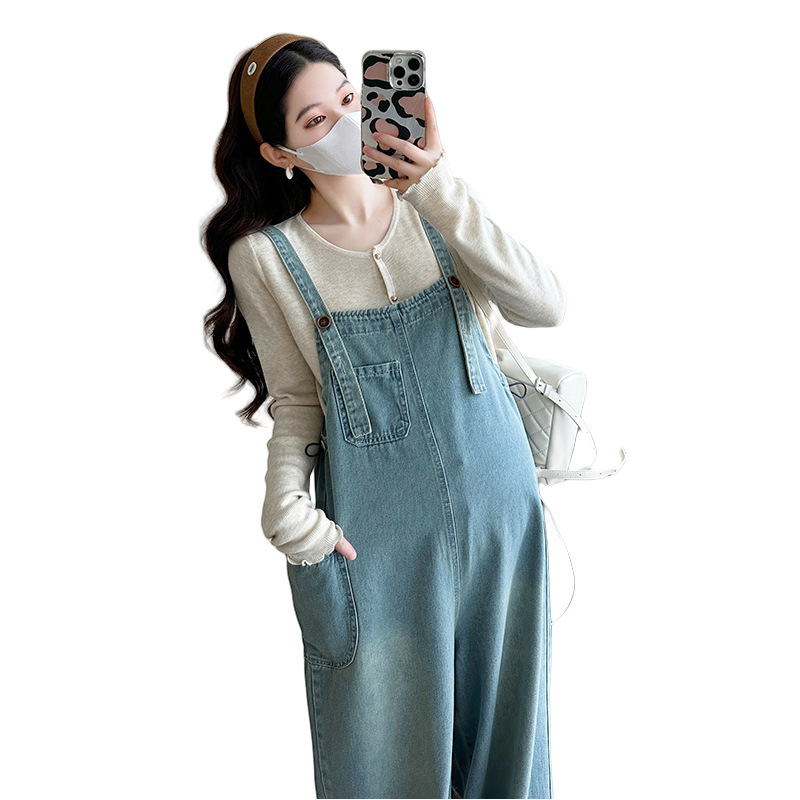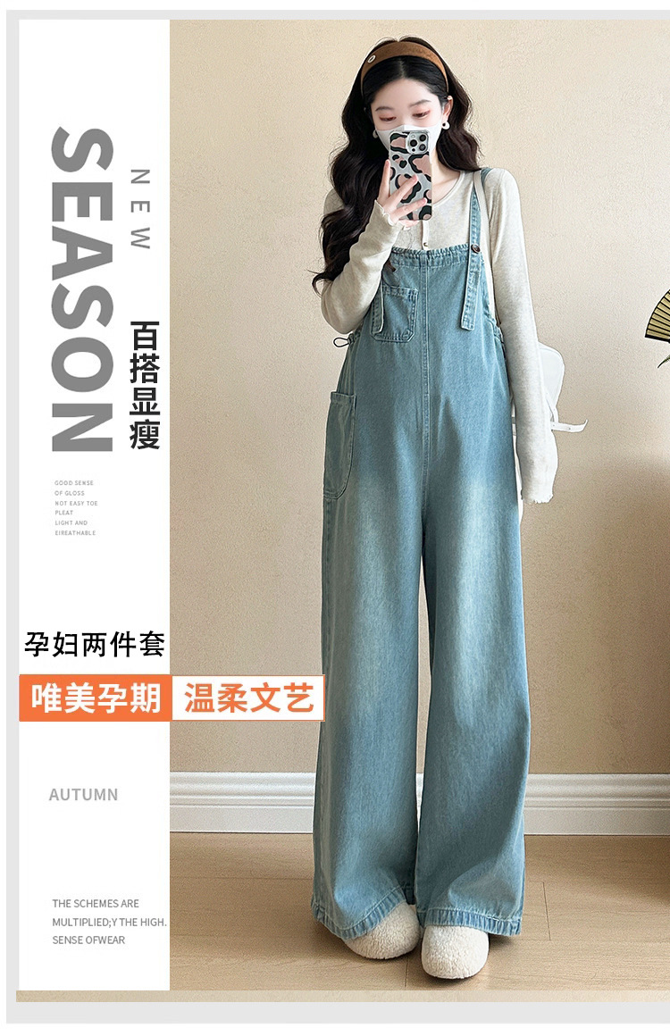 Весеннее платье для беременных 2025 простой набор из двух частей новый корейский топ с длинными рукавами для мытья воды джинсовые брюки для беременных