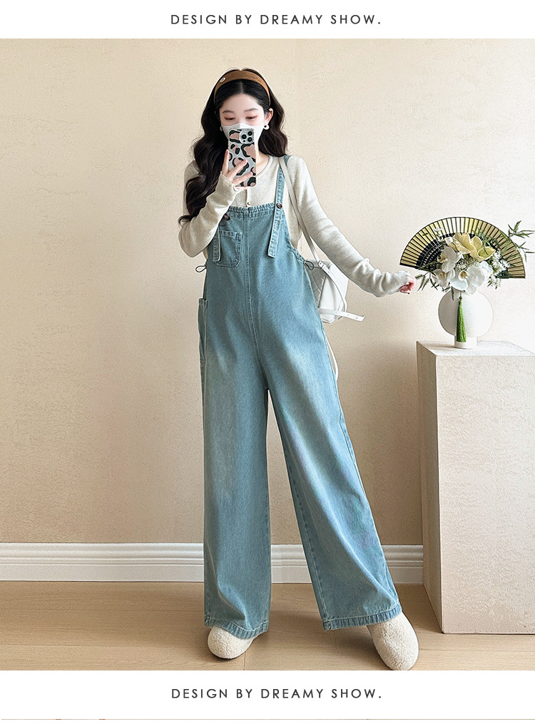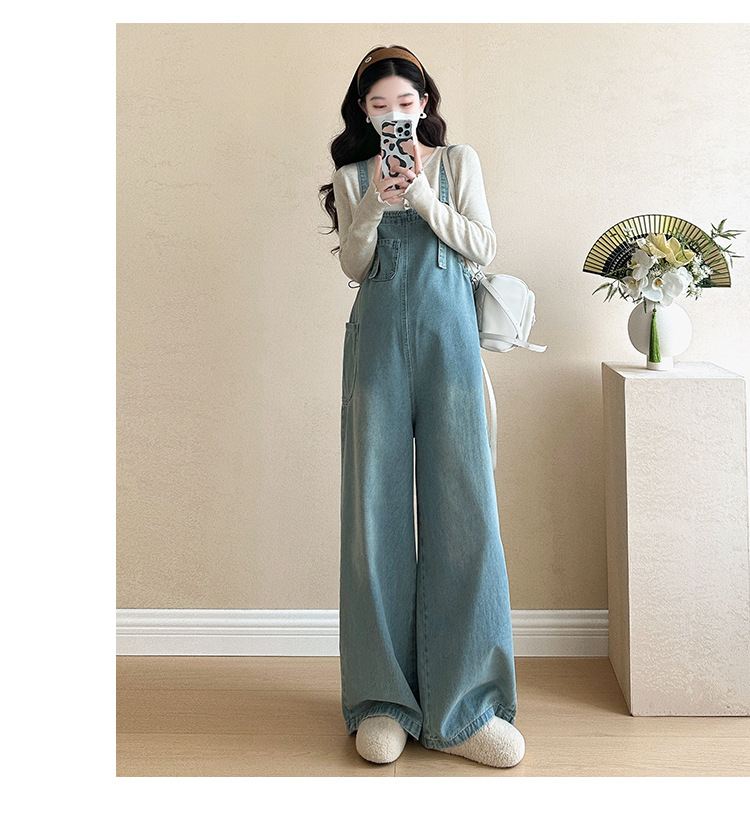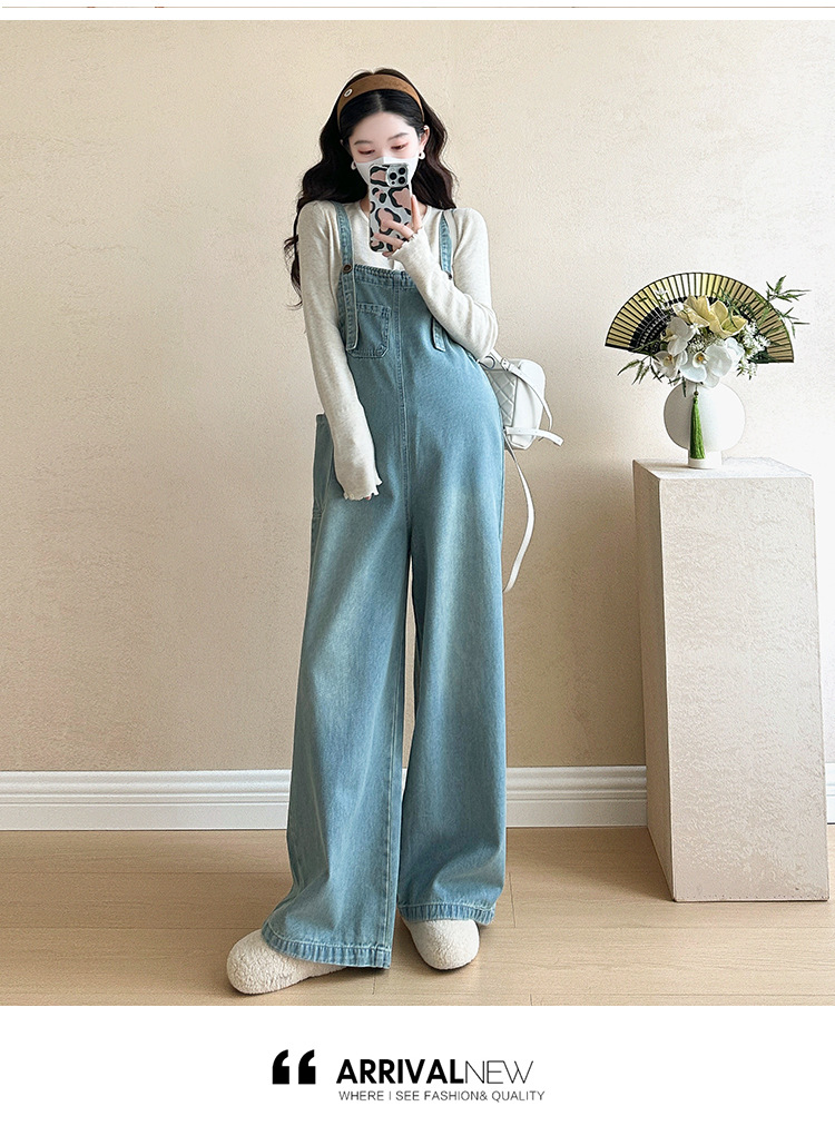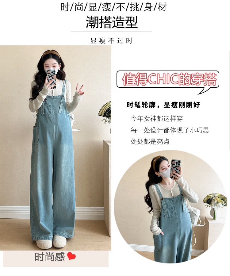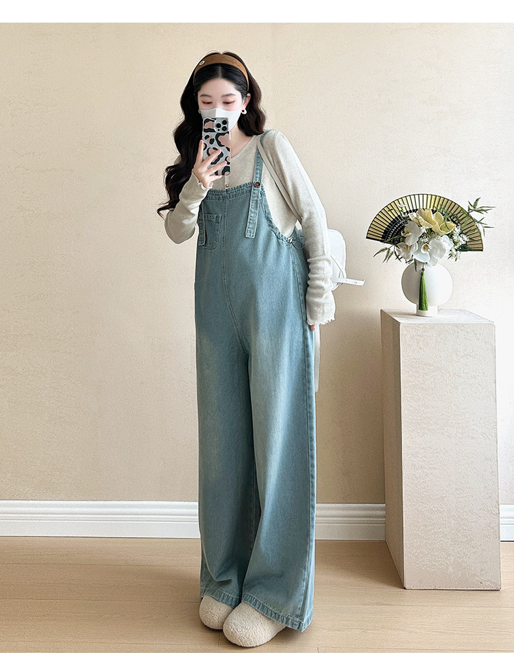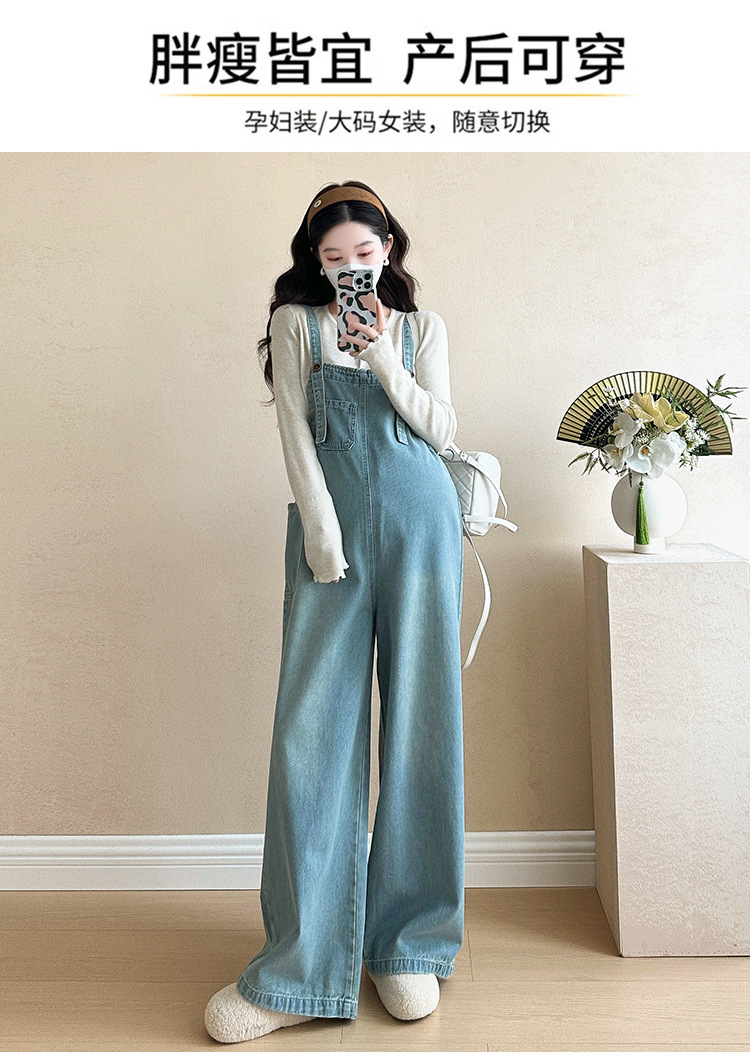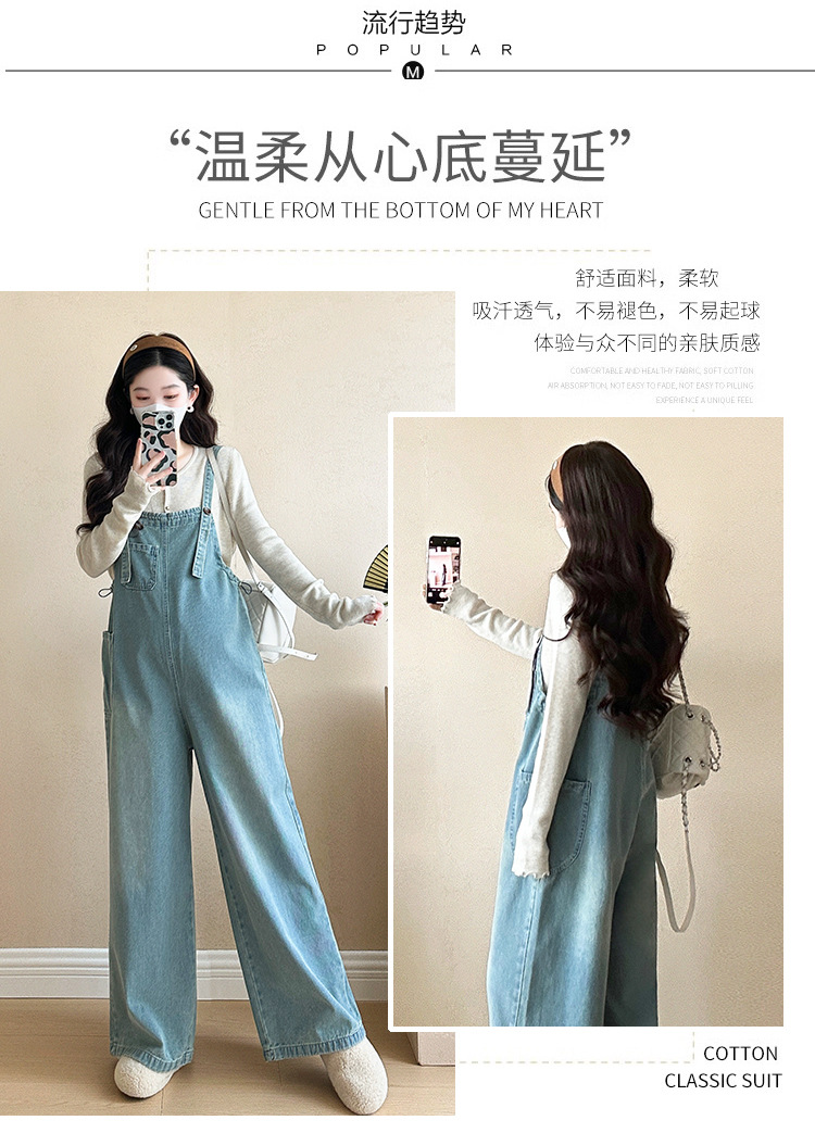 Весеннее платье для беременных 2025 простой набор из двух частей новый корейский топ с длинными рукавами для мытья воды джинсовые брюки для беременных