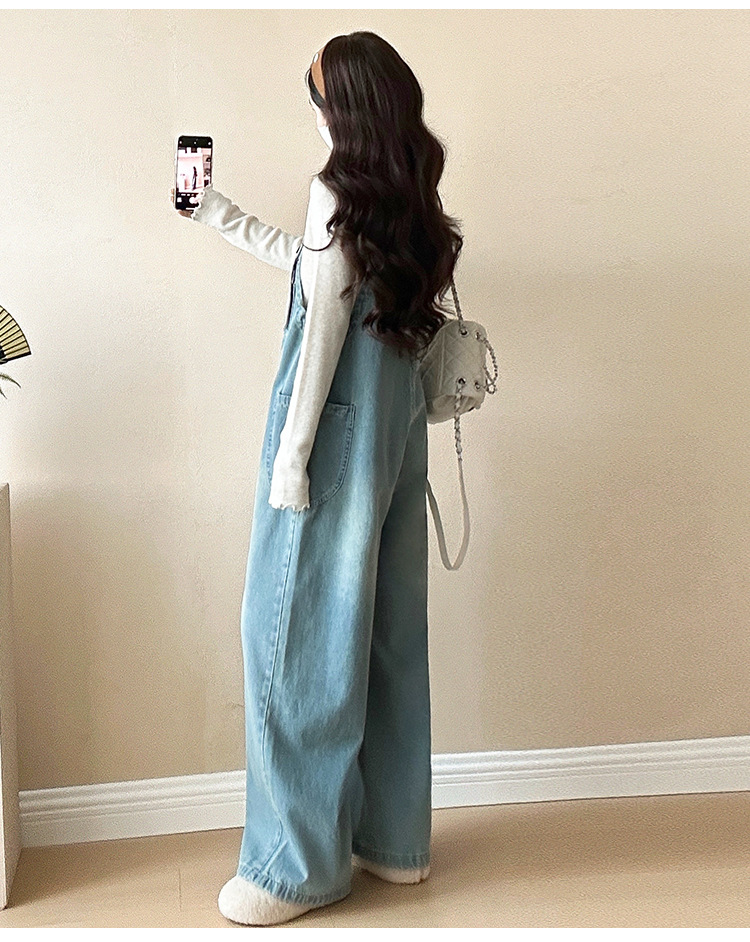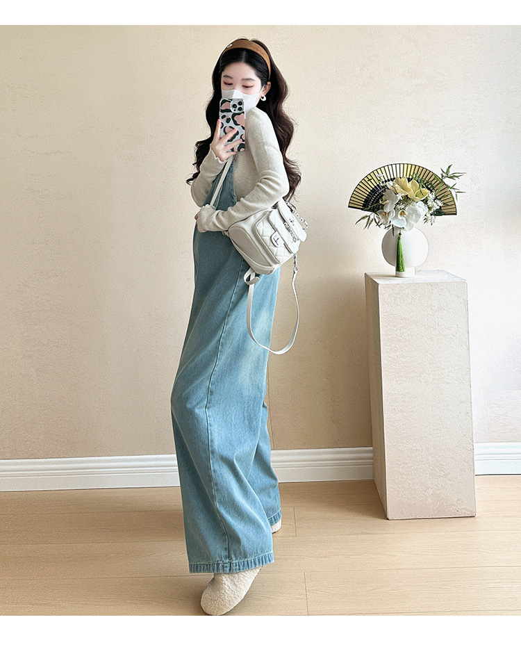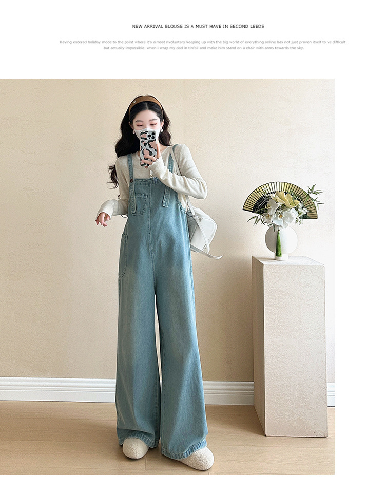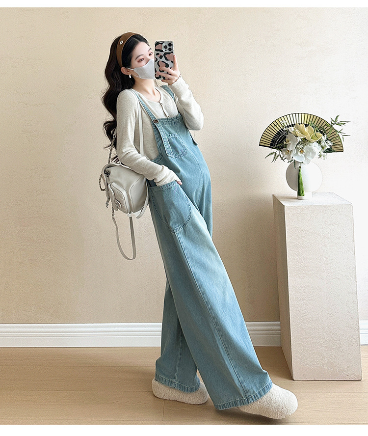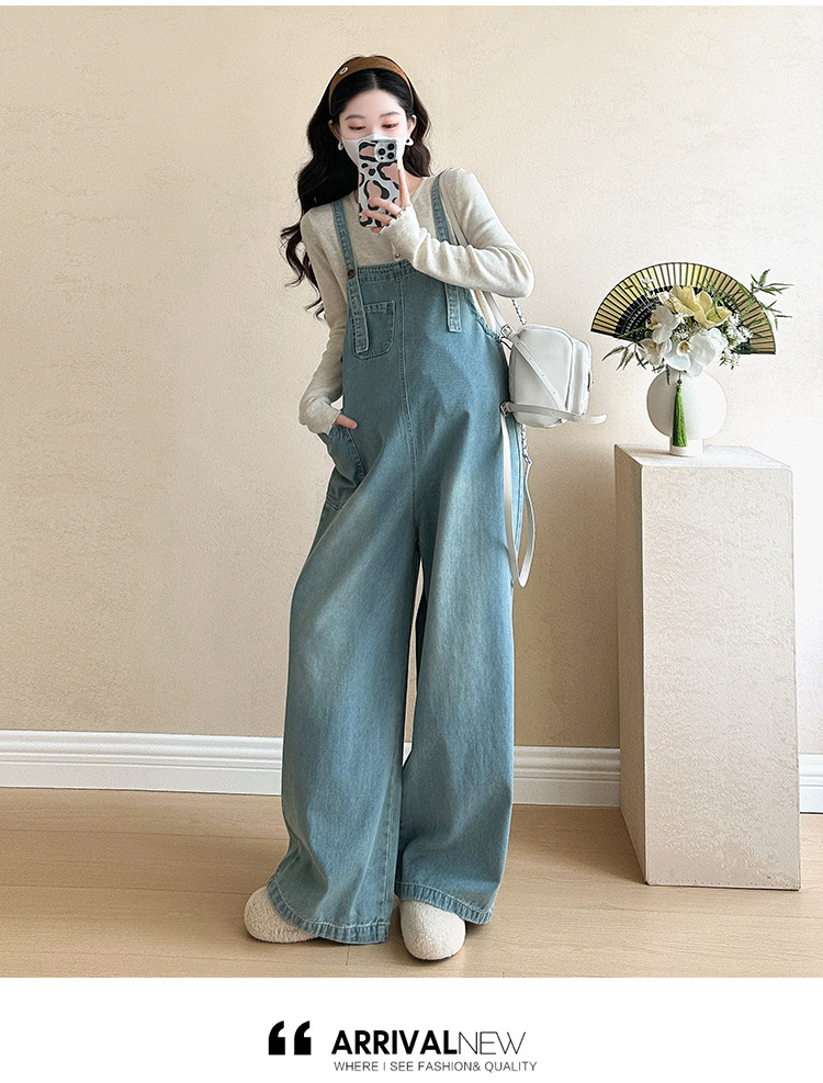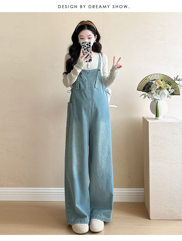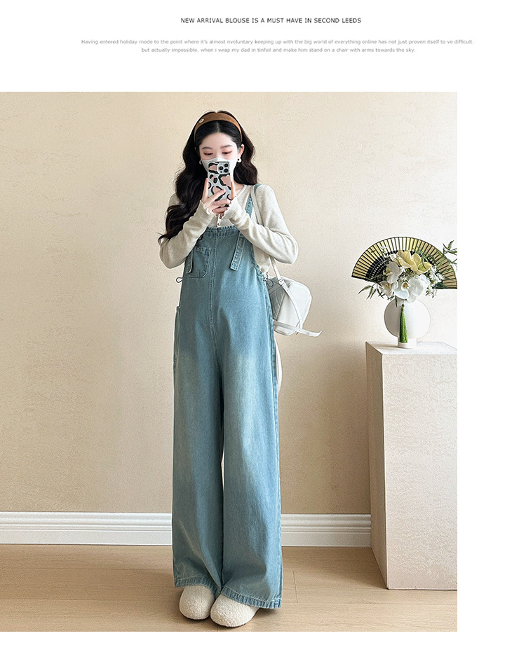 Весеннее платье для беременных 2025 простой набор из двух частей новый корейский топ с длинными рукавами для мытья воды джинсовые брюки для беременных