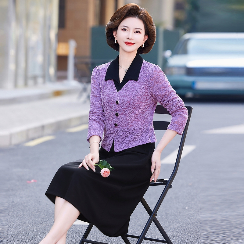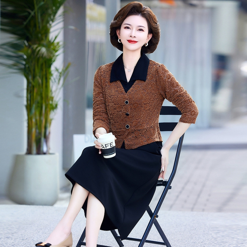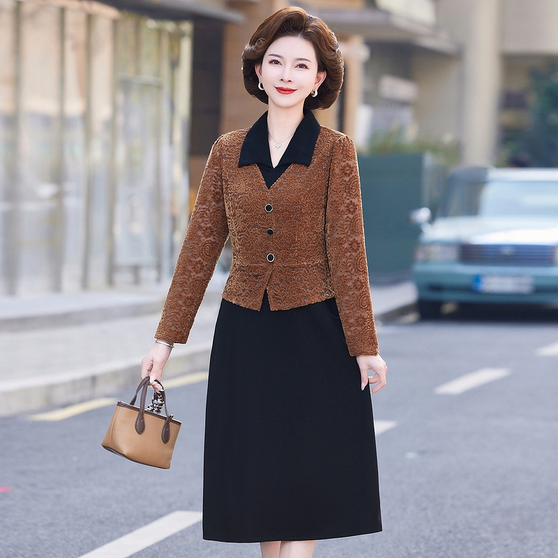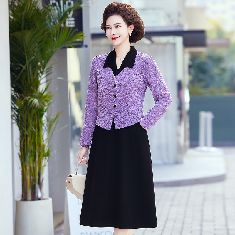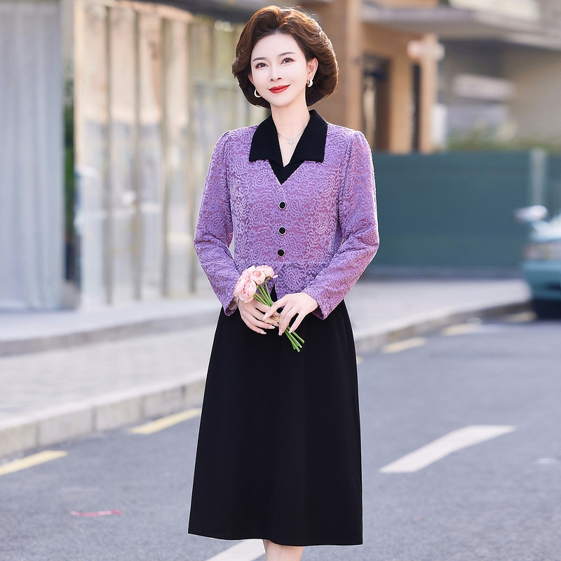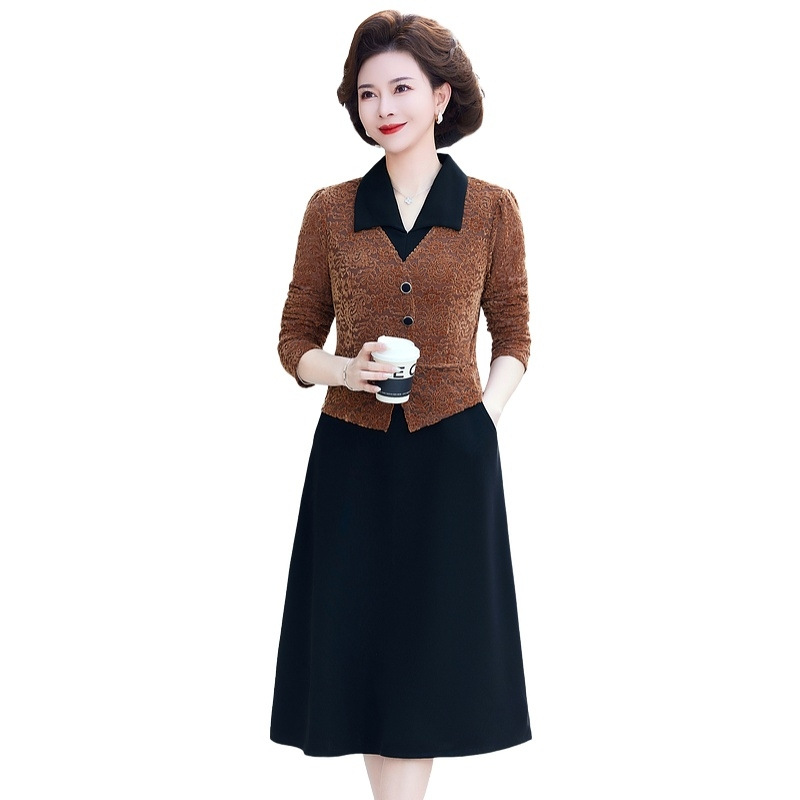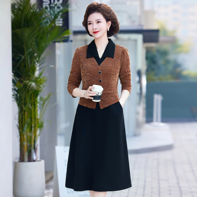 Весеннее толстое платье мамы модное иностранное старое платье плюс размер 40-60 поддельные две короткие дети