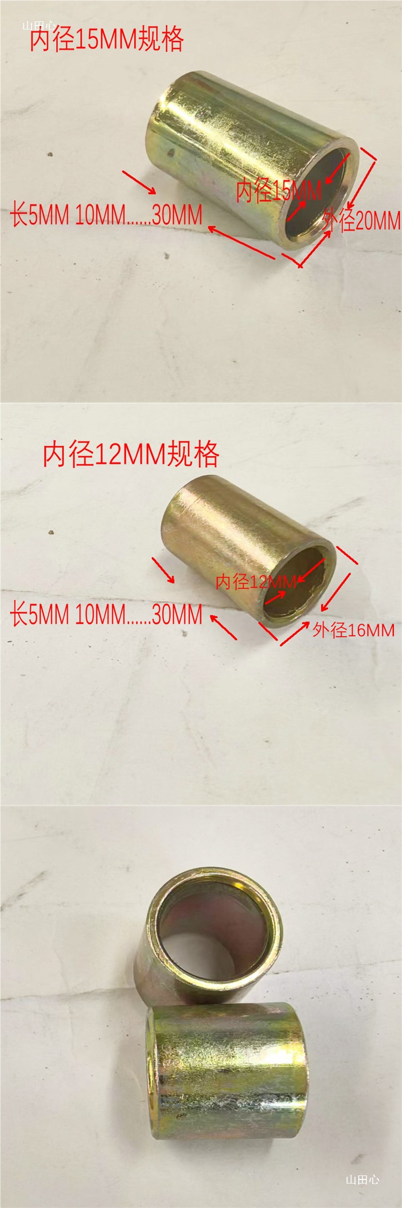 Одна втулка с внутренним диаметром 12 мм * длина 5 мм.; Одна втулка с внутренним диаметром 12 мм * длина 10 мм.; Одна втулка с внутренним диаметром 12 мм * длина 15 мм.; Одна втулка с внутренним диаметром 12 мм * длина 20 мм.; Одна втулка с внутренним диаметром 12 мм * длина 25 мм.; Одна втулка с внутренним диаметром 12 мм * 30 мм.; Одна втулка с внутренним диаметром 15 мм* длина 5 мм.; Одна втулка с внутренним диаметром 15 мм* длина 10 мм.; Одна втулка с внутренним диаметром 15 мм* длина 15 мм.; Одна втулка с внутренним диаметром 15 мм* длина 20 мм.; Одна втулка с внутренним диаметром 15 мм* длина 25 мм.; Одна втулка с внутренним диаметром 15 мм * 30 мм.