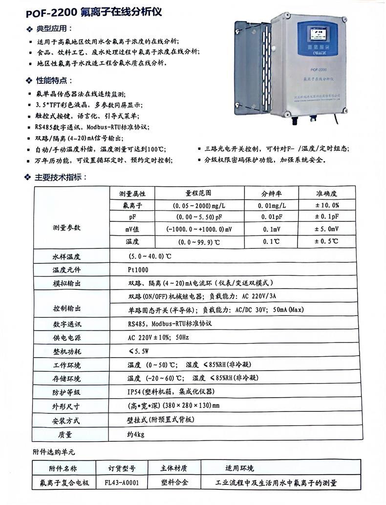 Онлайн-анализатор фтор ионов POF-2200; Композитный электрод фтор ионов FL43-A0001; Раствор для калибровки ионов фтора на 1 PPM; Раствор для калибровки ионов фтора на 10 частей на миллион; Раствор для калибровки ионов фтора на 100 PPM; Для получения информации о других характеристиках, пожалуйста, обратитесь в службу поддержки клиентов