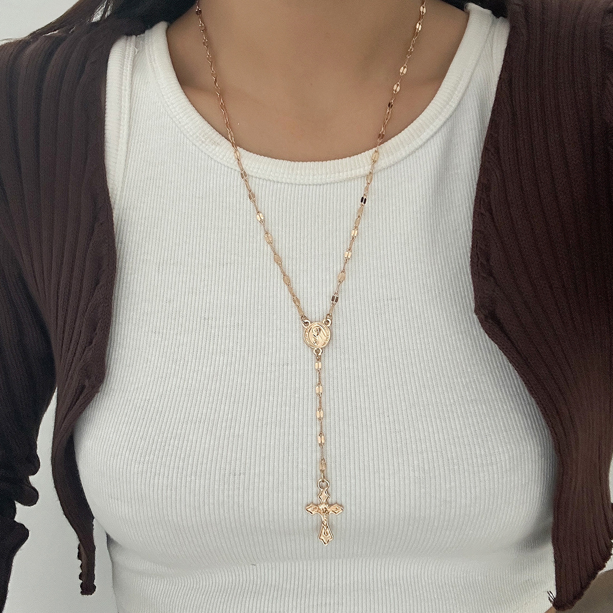 Европейские и американские трансграничные украшения дикие ретро-крест Богоматери кулон ожерелье индивидуальная цепочка губ длинное колье с кисточкой
