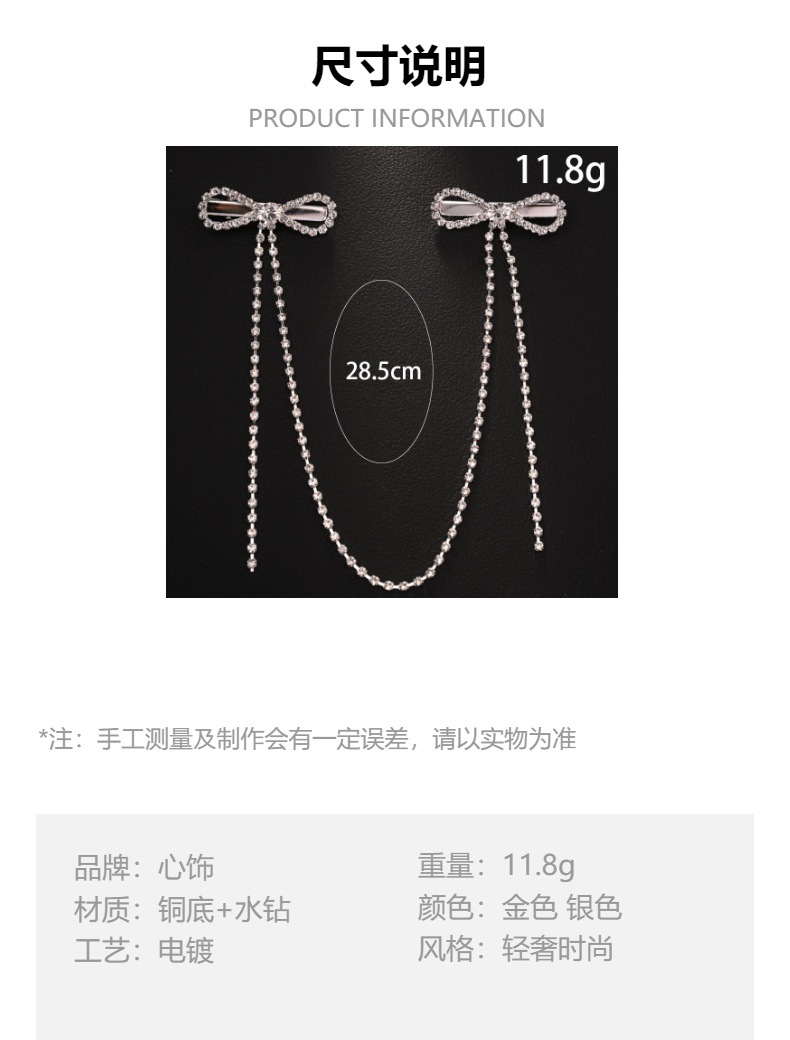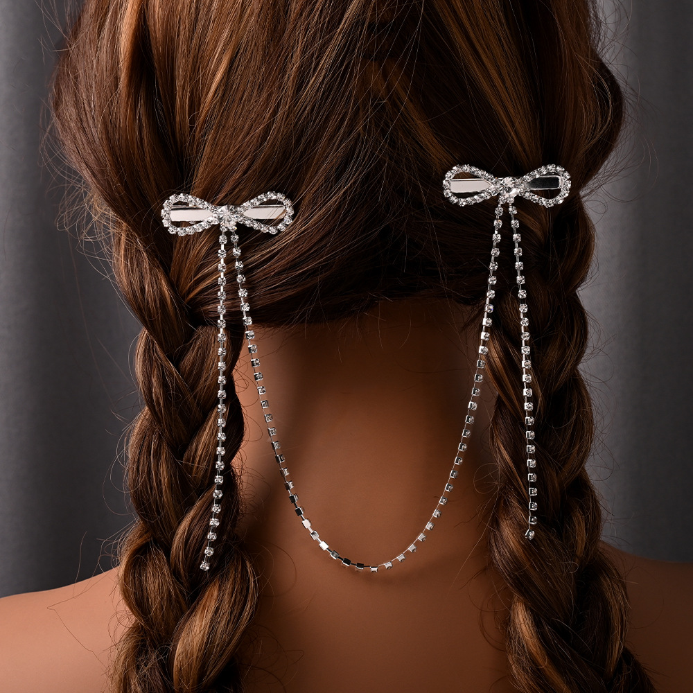 Новый премиальный смысл бант подвеска для волос цепи нишевые минималистские стразы кисточки заколки для волос женский головной убор Headdress