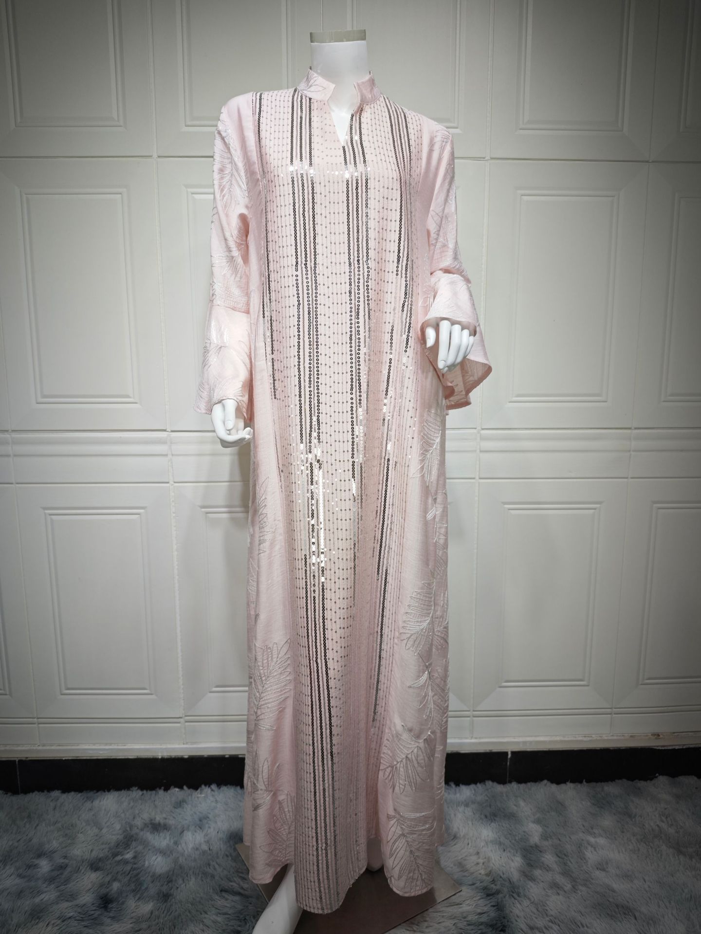 AB419 新款跨境穆斯林女装长袍中东迪拜优雅珠片绣花长裙沙特迪拜