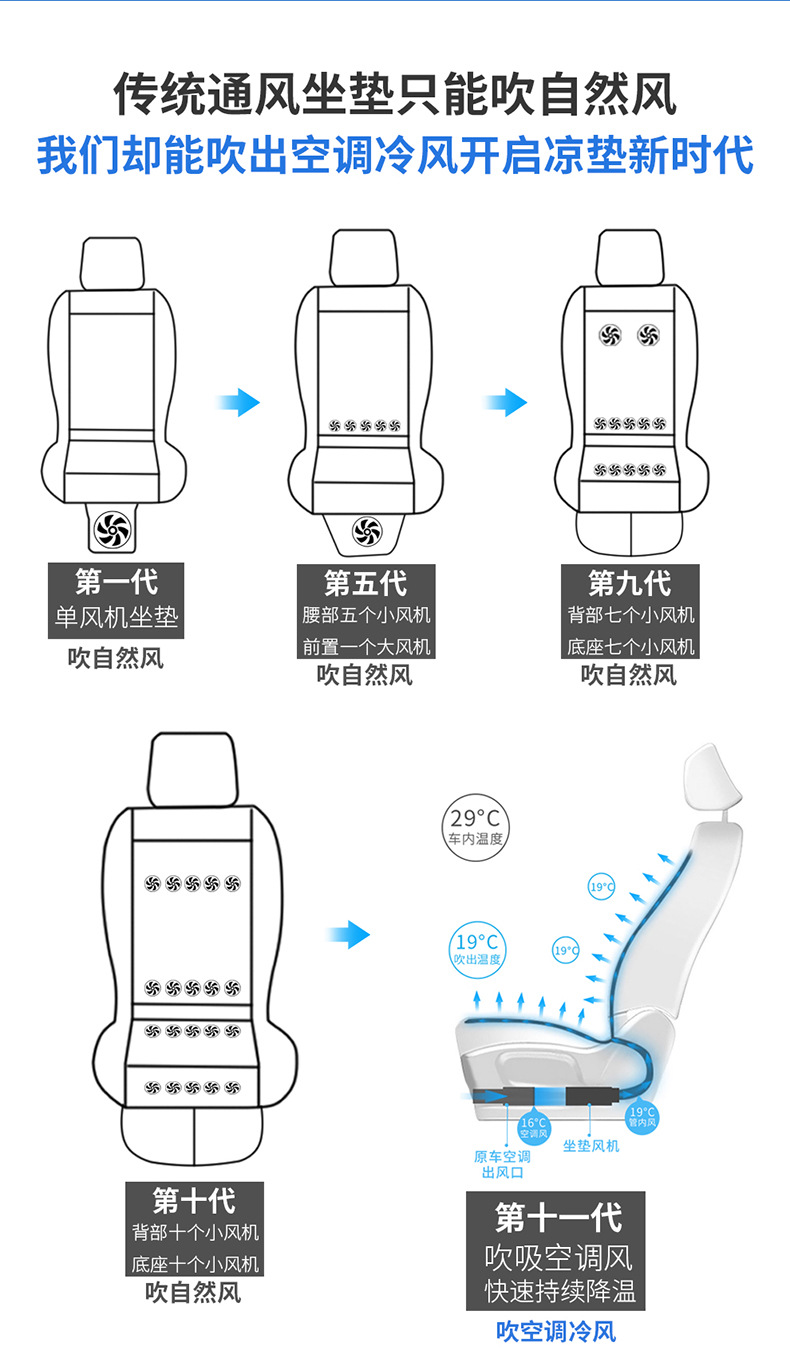 12 В летнее охлаждение автомобиля Водитель вентиляции Массаж Вентилятор Подушка Автомобильный Кондиционер Охлаждение Четыре сезона Универсальная Подушка